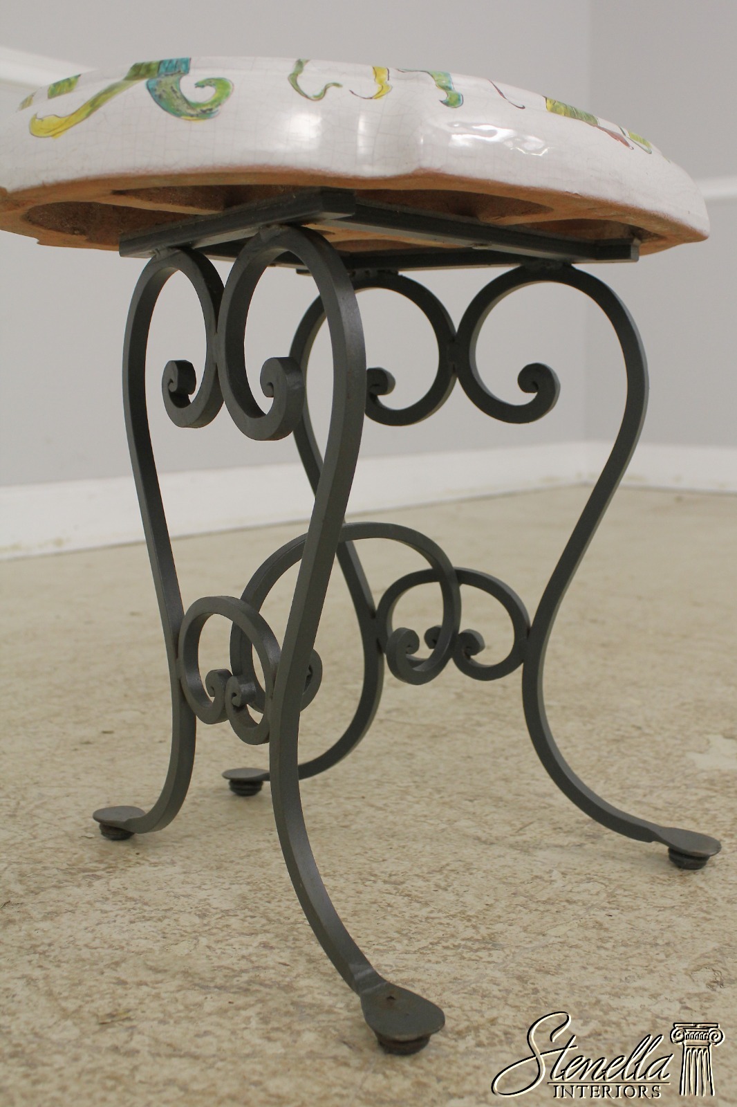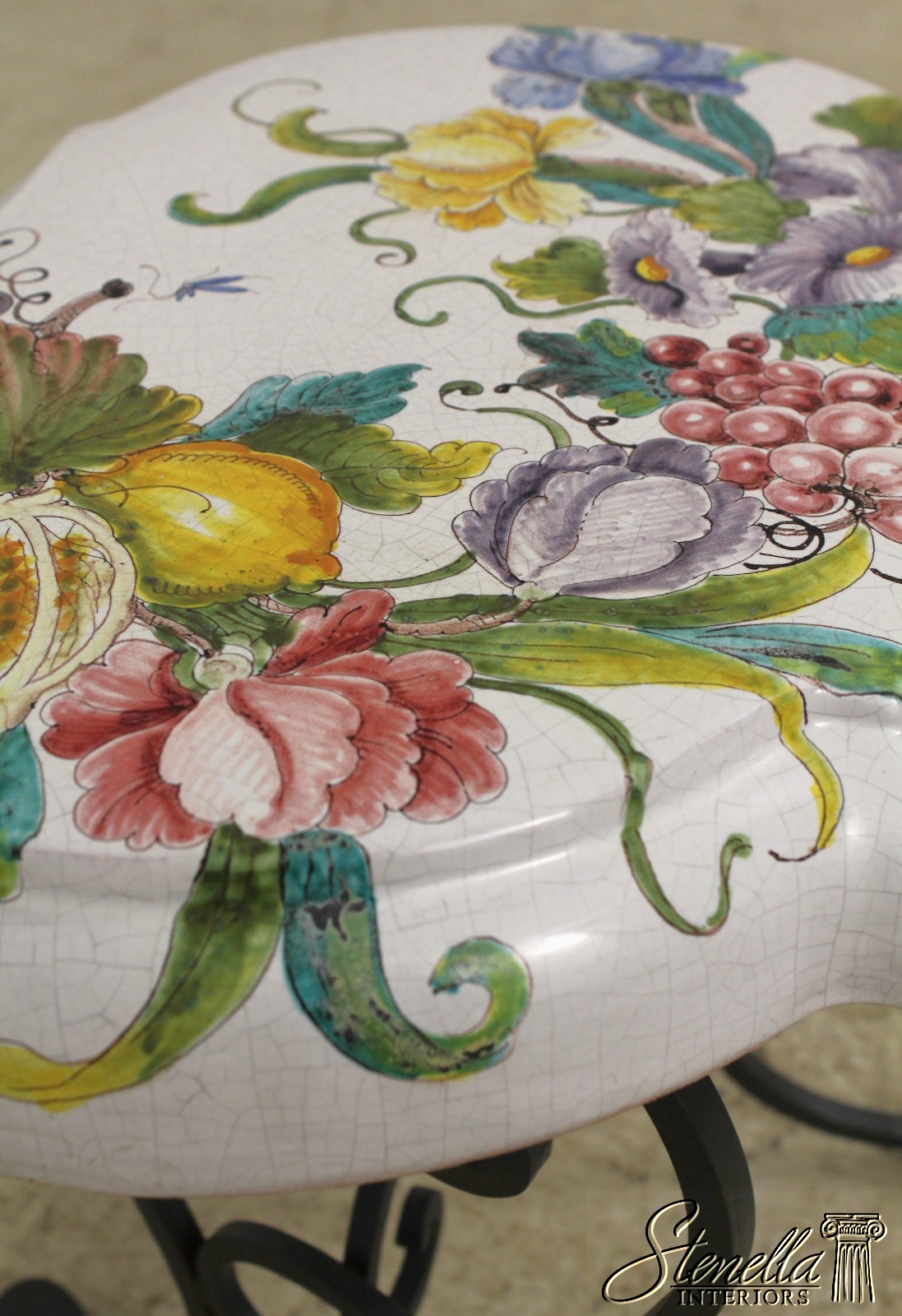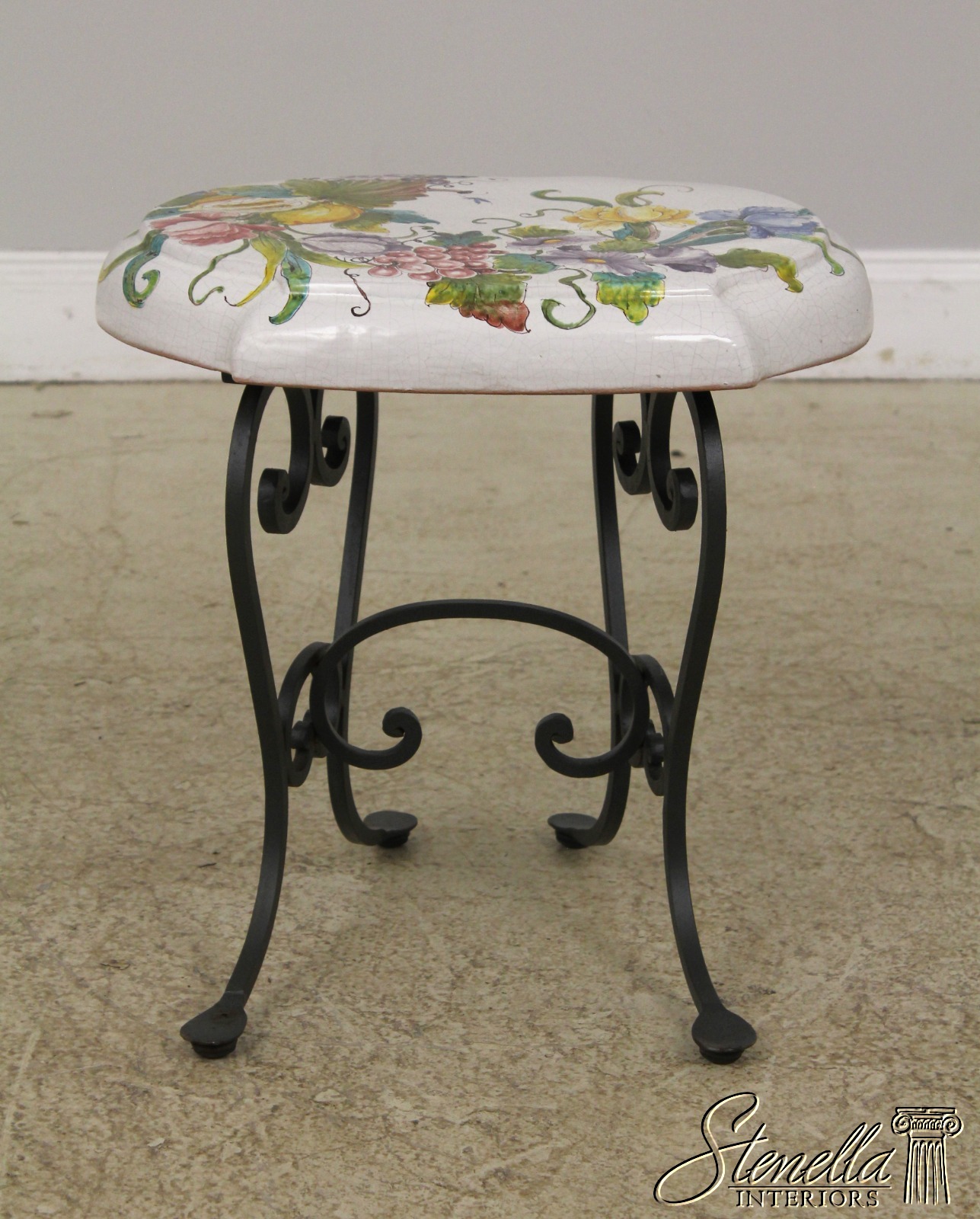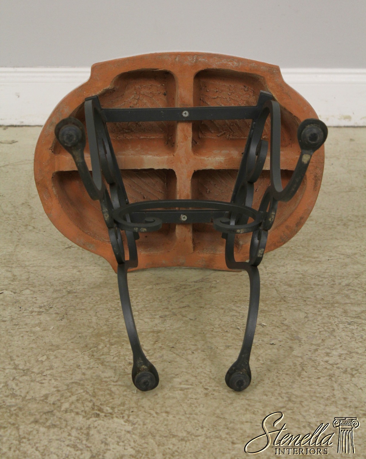 F56905EC: Pair Italian Hand Painted Terracotta & Iron Garden Seats