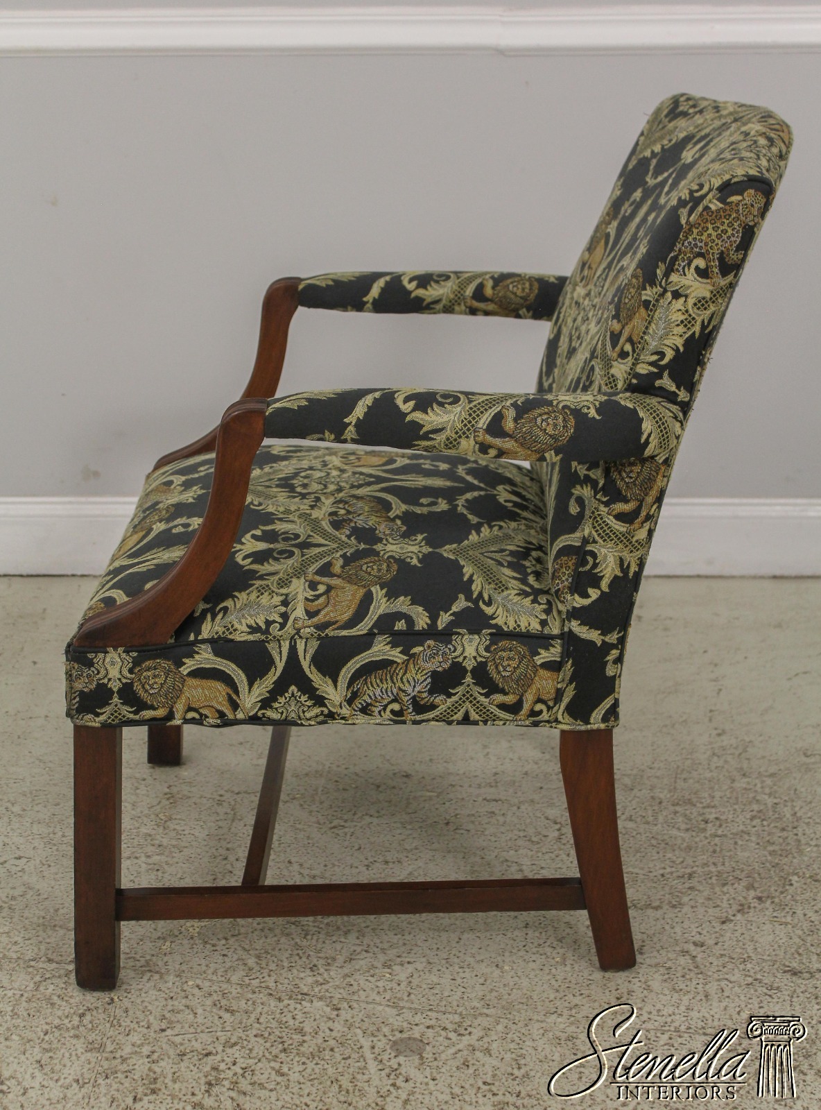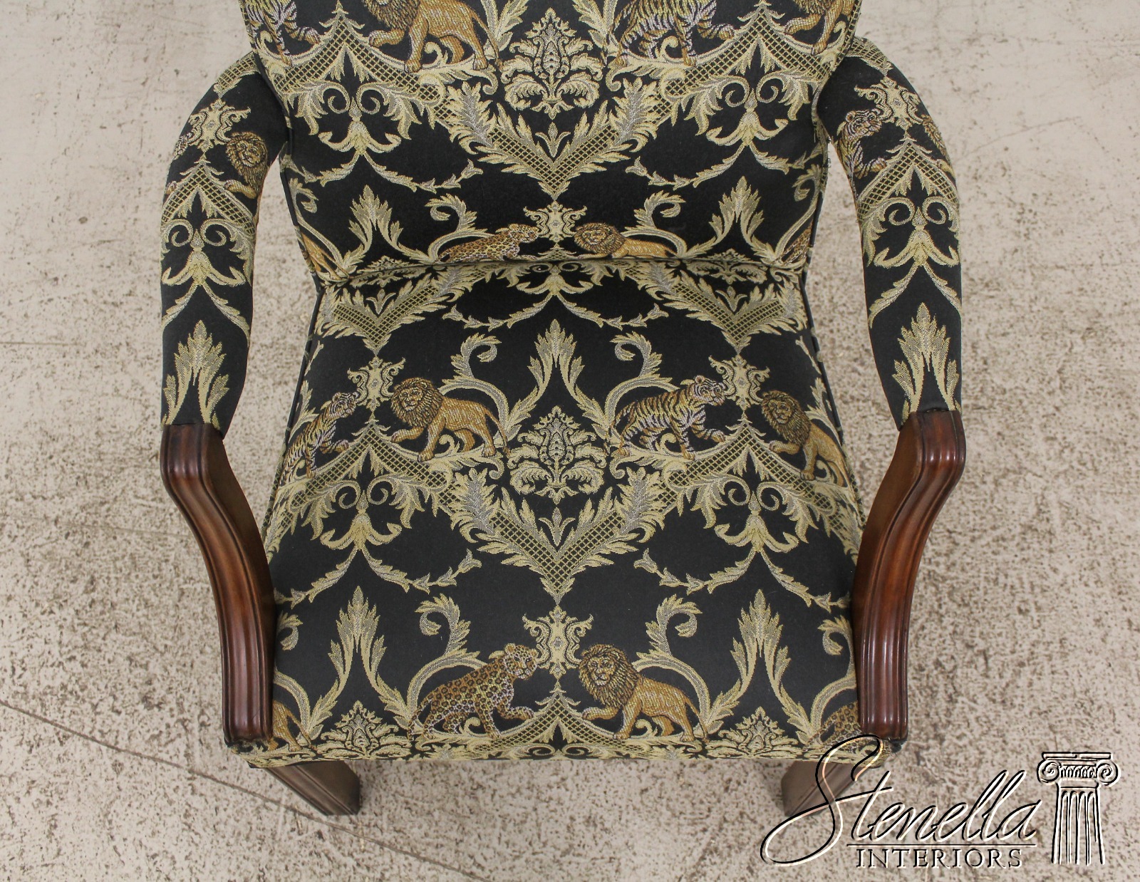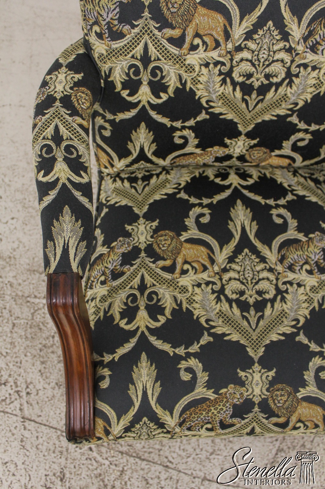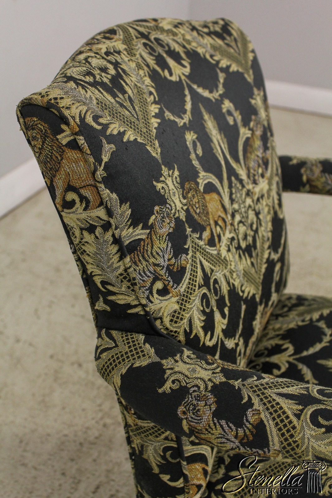 F59371EC: Vintage Chippendale Style Upholstered Open Armchair