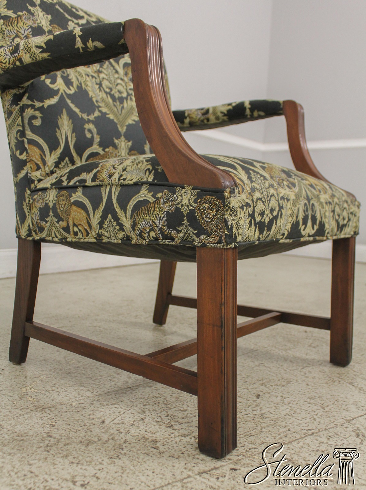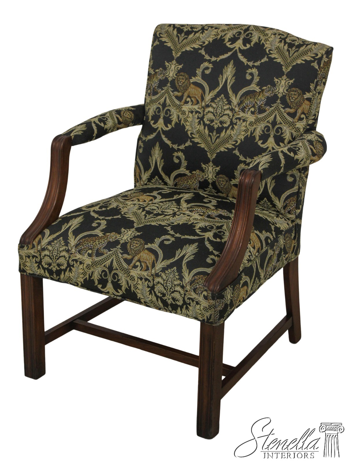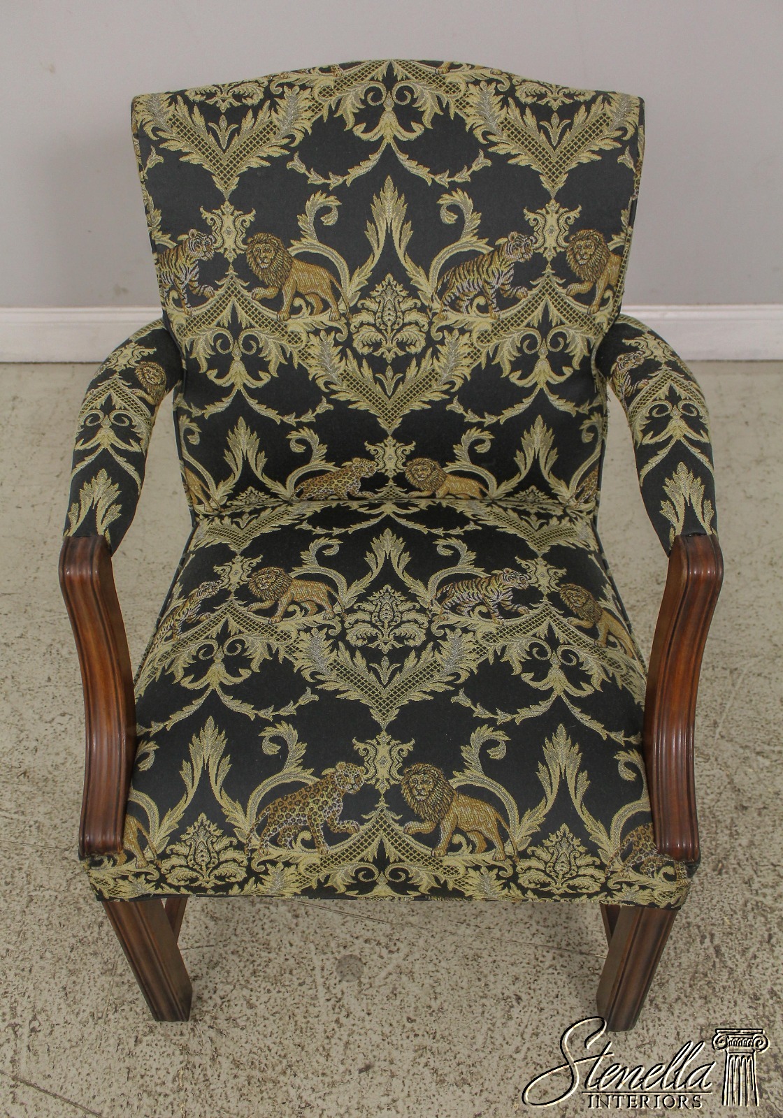 F59371EC: Vintage Chippendale Style Upholstered Open Armchair