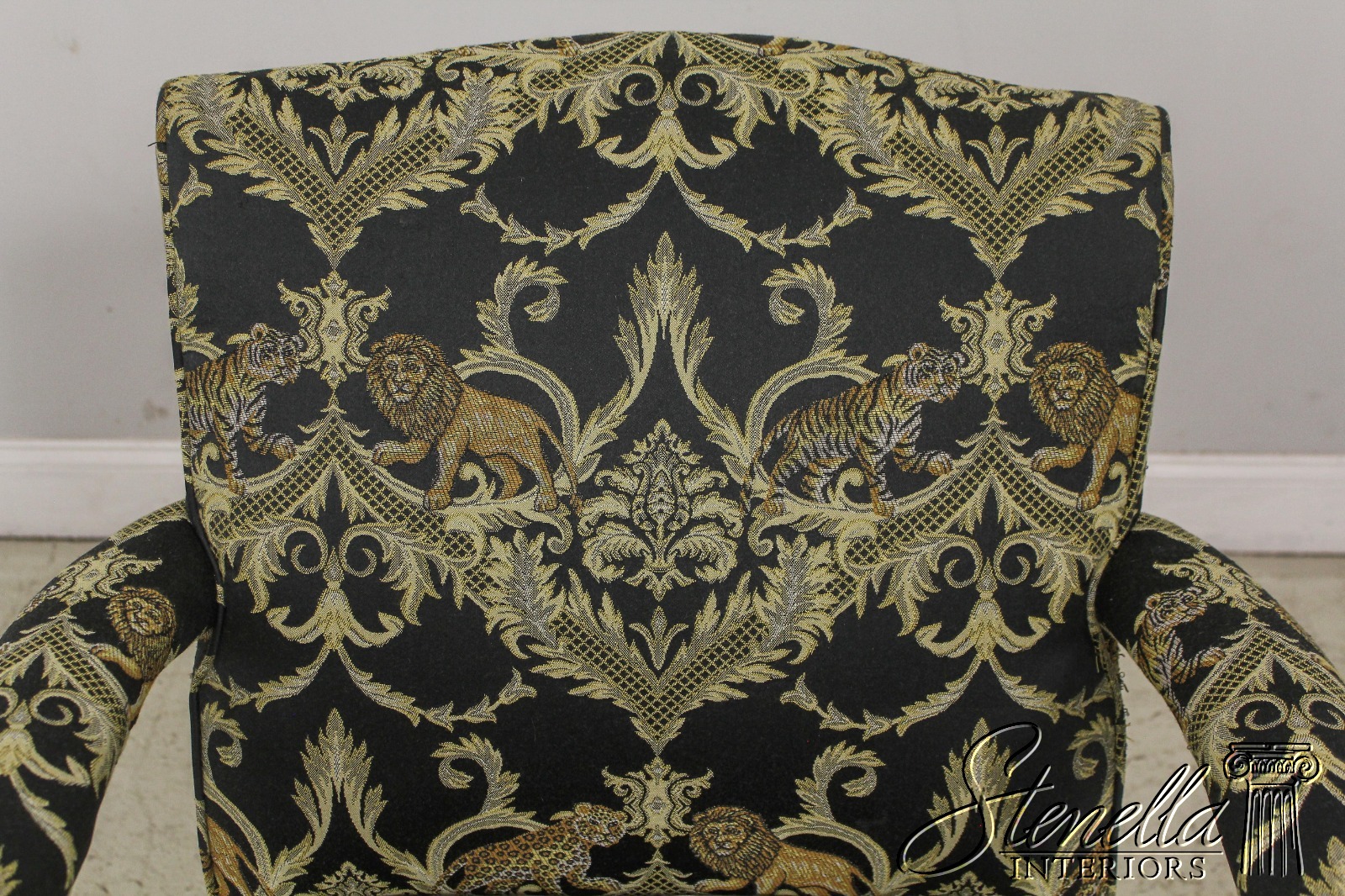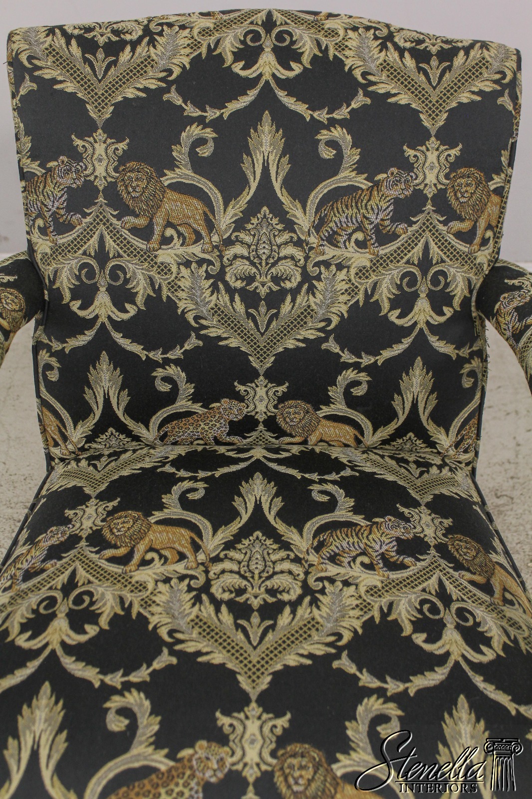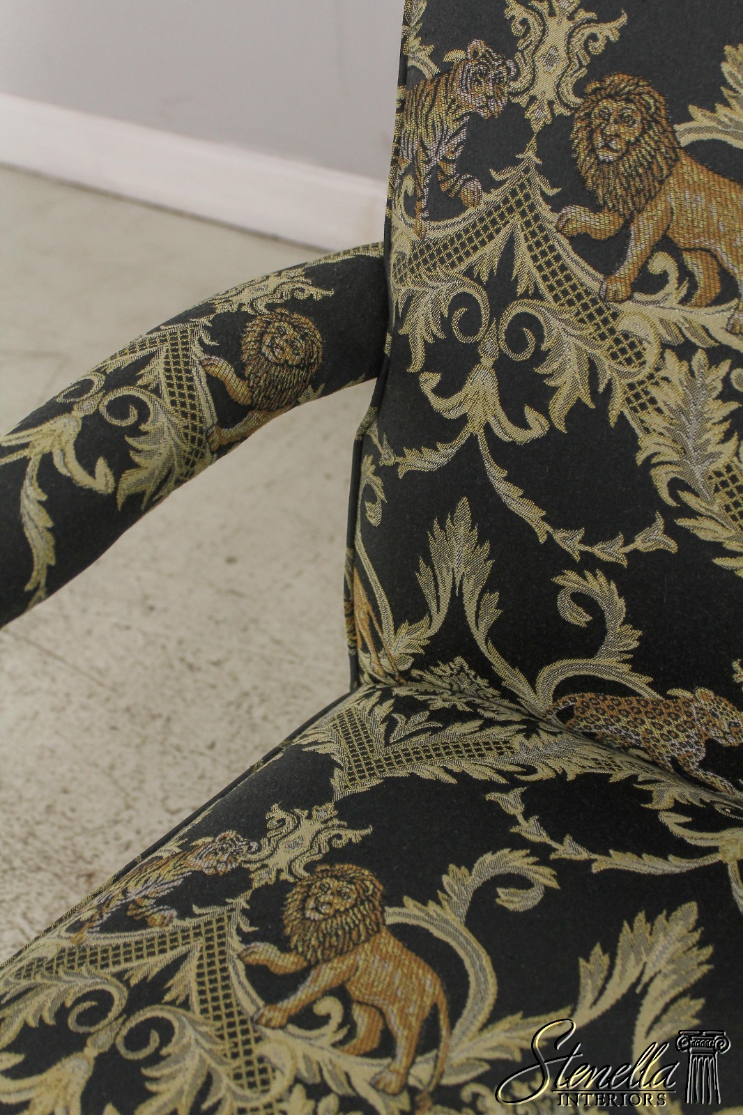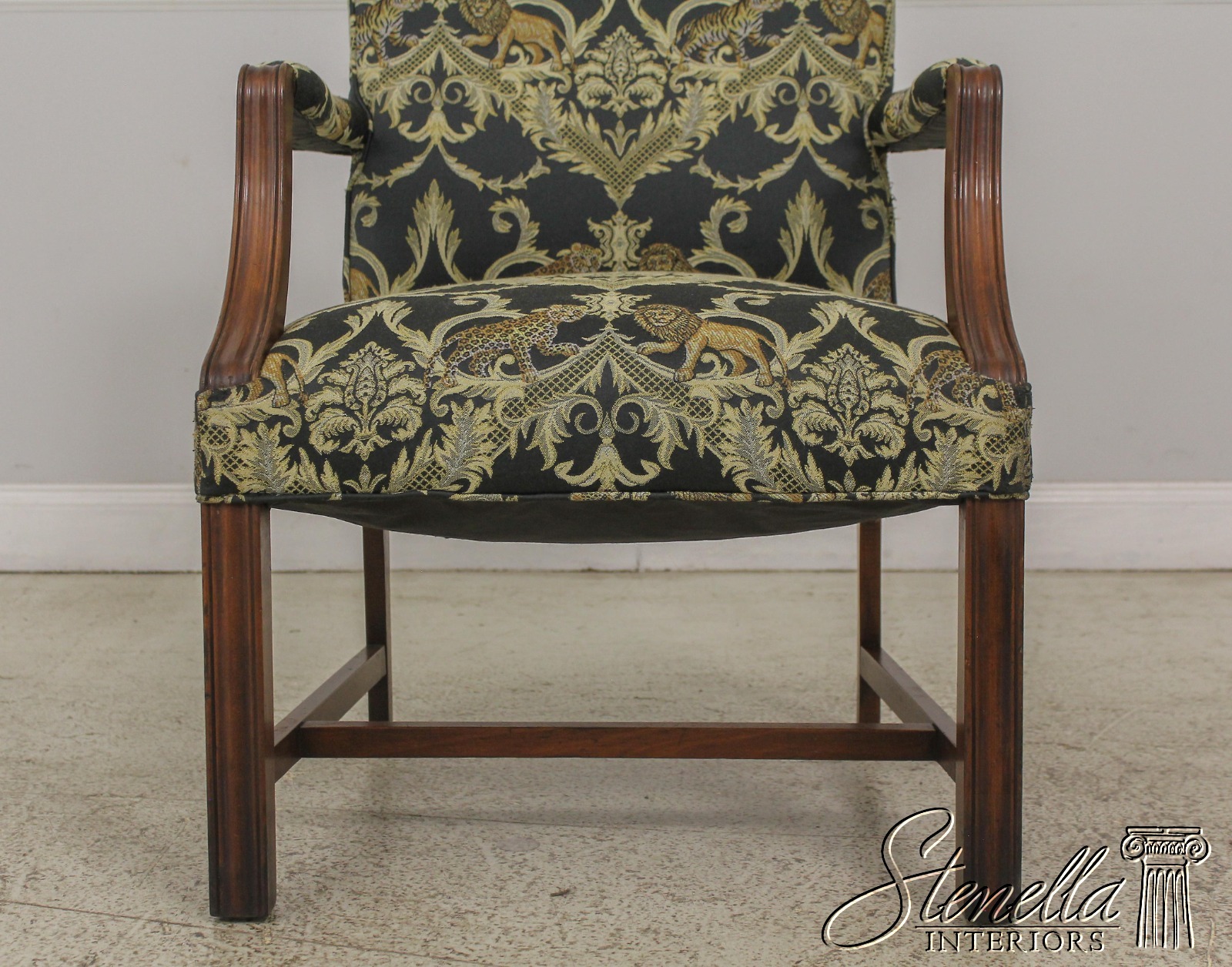 F59371EC: Vintage Chippendale Style Upholstered Open Armchair