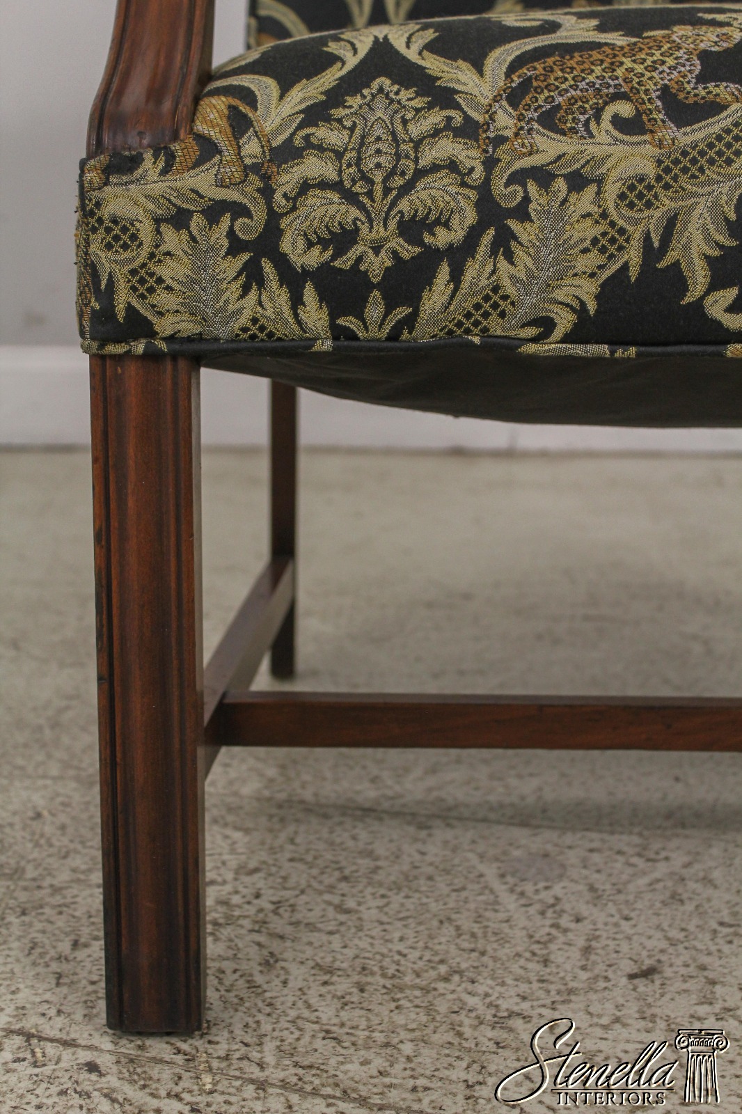 Details: High Quality Construction Clean Well Cared For Upholstery 18 C. Design Chippendale Style Traditional Style Stretcher Base Frame Reupholstered Approx. 5 Years Ago Clean Well Cared For Upholstery