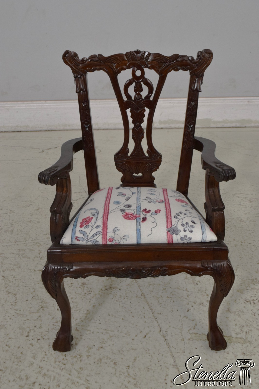 Details: Newly Upholstered Seat Fine Carved Details Quality Construction 18 C. Design Chippendale Style Traditional Style Floral Upholstered Seat