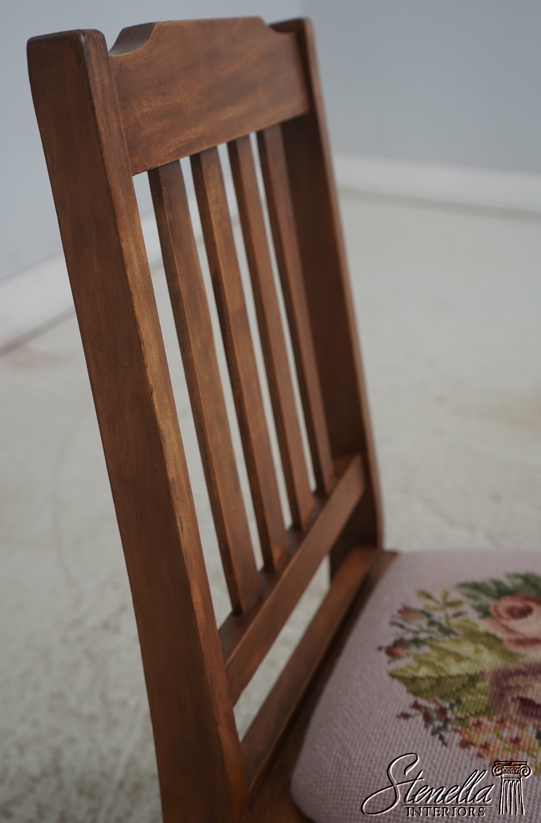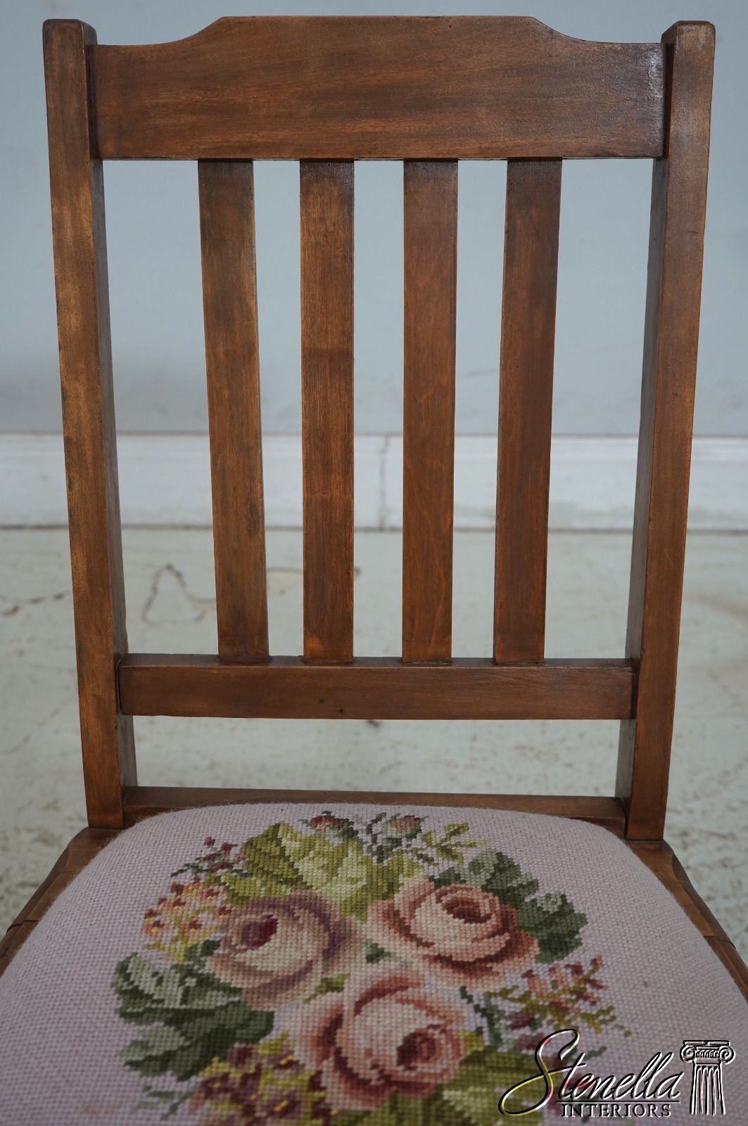 Details: Walnut Fine Carved Details High Quality Construction Small Scale Side Chair Slat Backsplat Hand Done Needlepoint Un-Marked As To Manufacture Offered @ Fraction Original Retail Cost