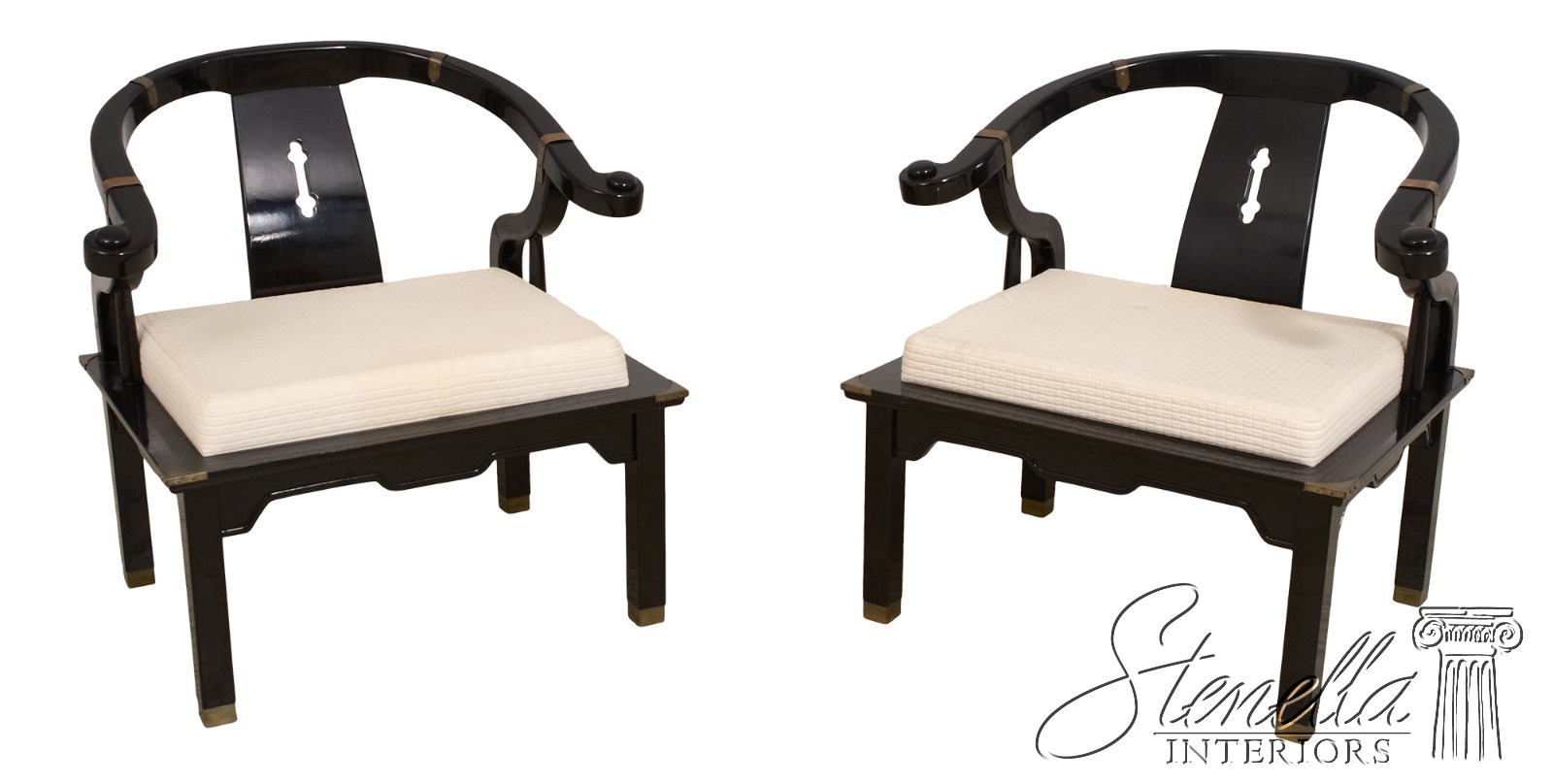 F68159: Pair PALLAVISINI Asian Inspired Mid Century Modern Black Chairs