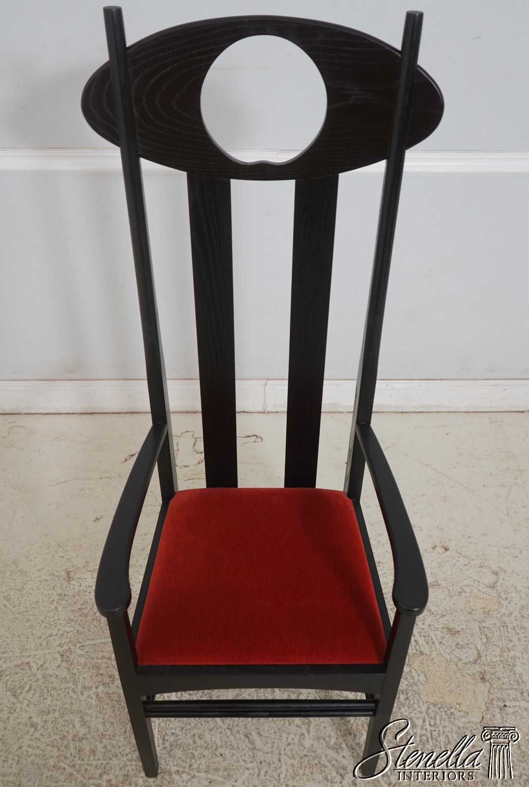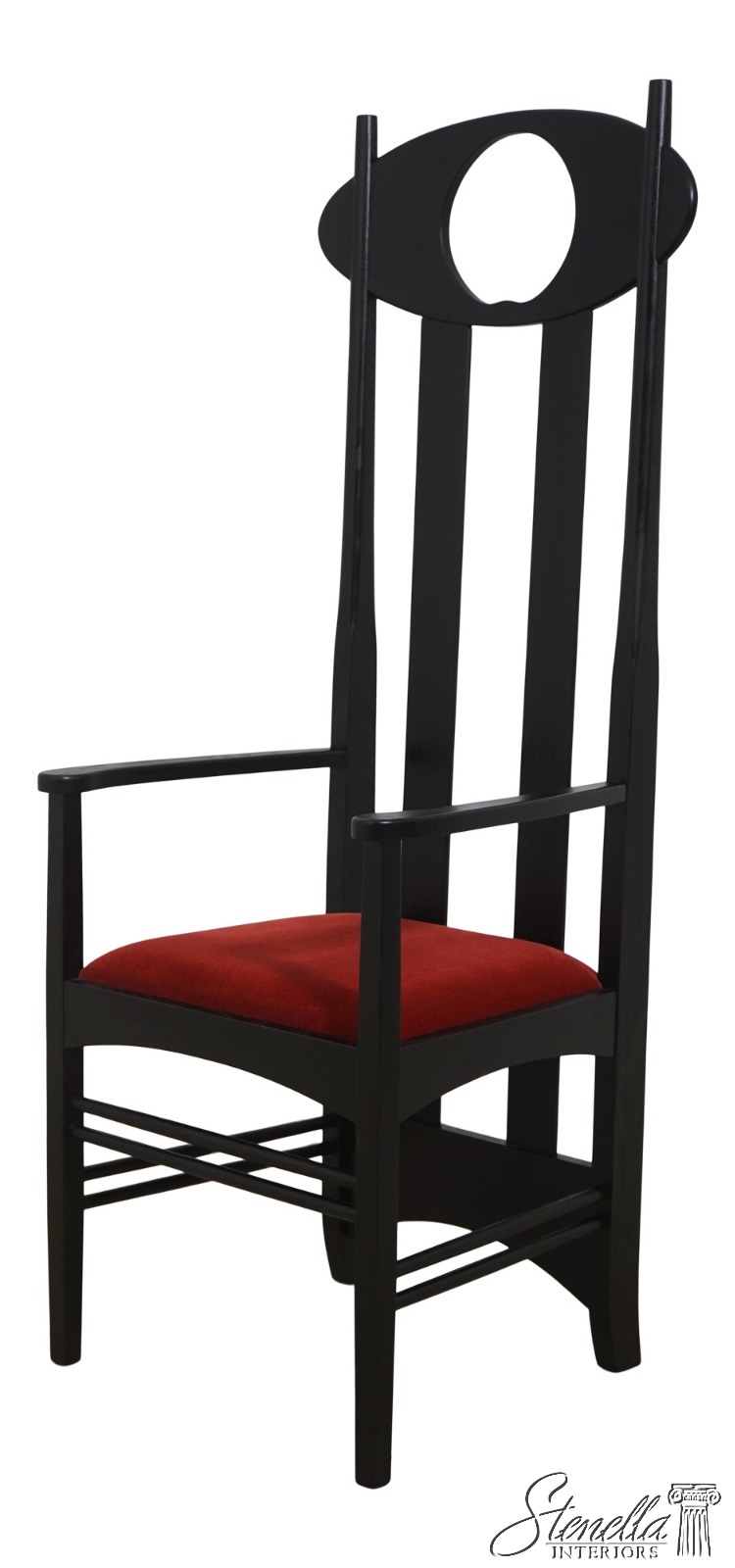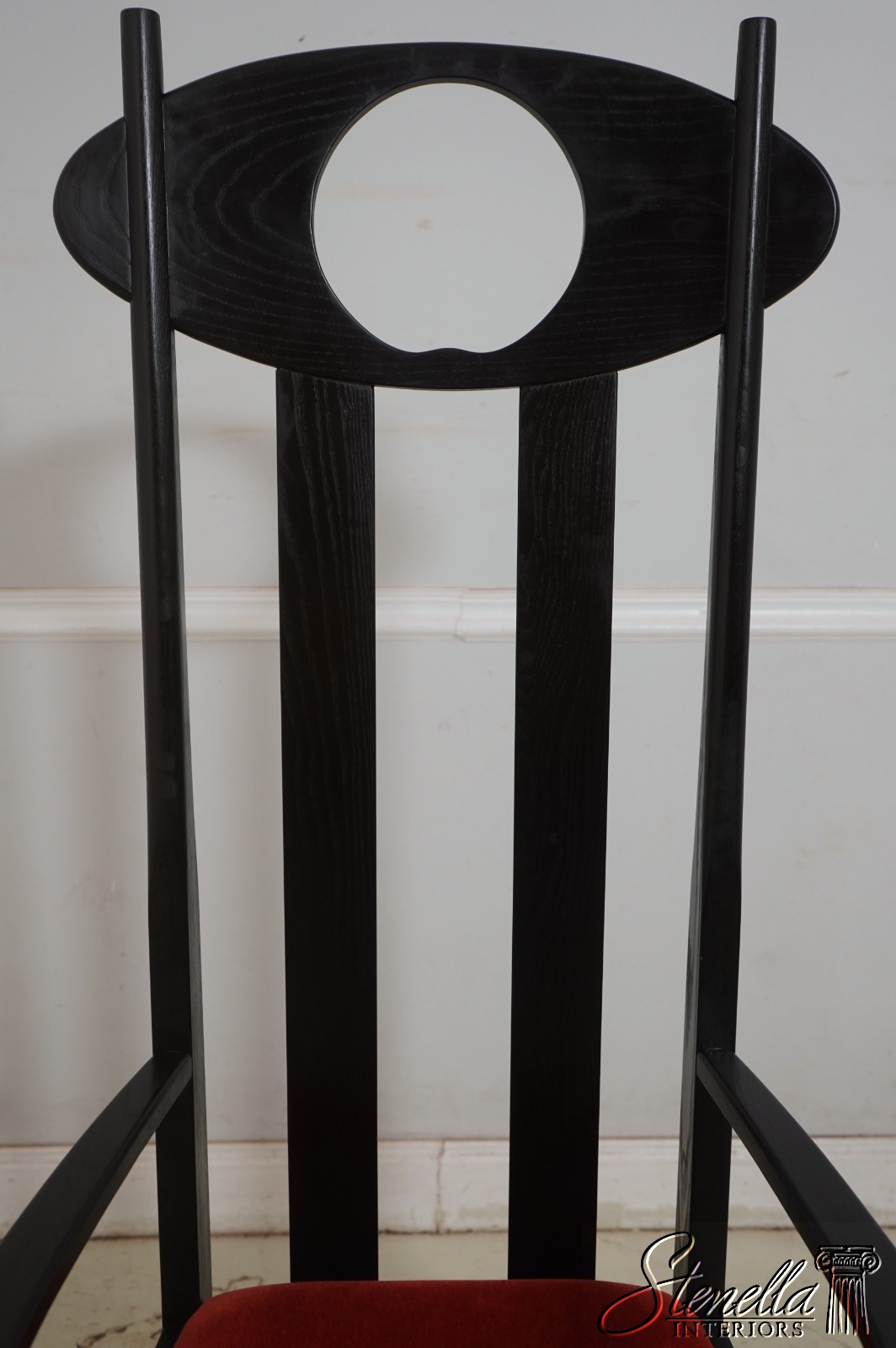 Details: Un-Marked As To Manufacture - Possibly By Charles Rennie Mackintosh Quality Construction Traditional Style Stretcher Base Frame Rods Slat Back Form Moon Shape Cut Out Mid Century Modern Style Offered @ Fraction Original Retail Cost