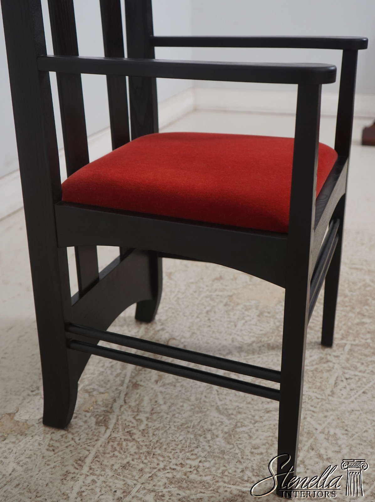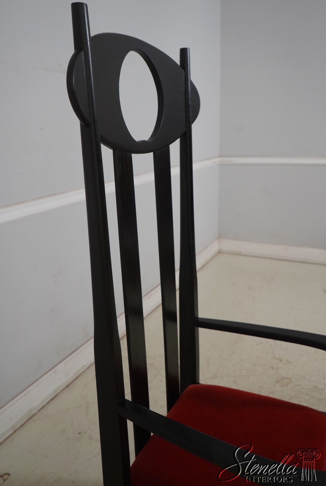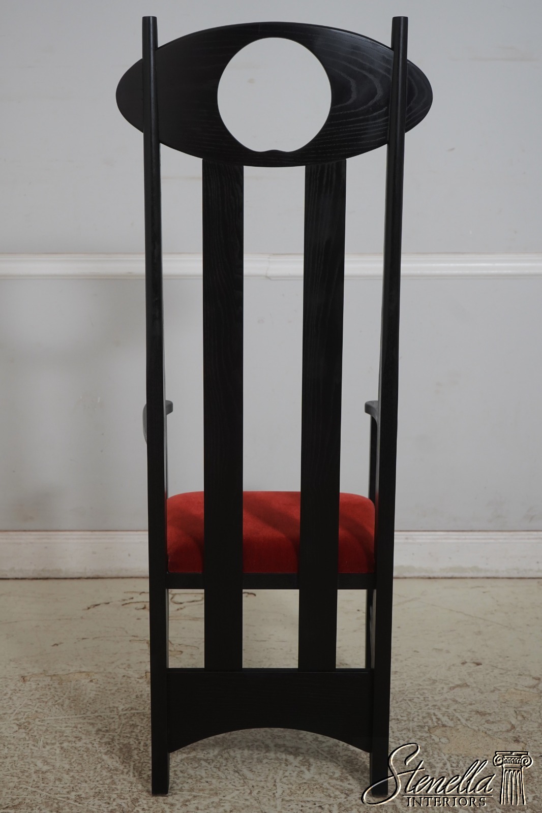 Details: Un-Marked As To Manufacture - Possibly By Charles Rennie Mackintosh Quality Construction Traditional Style Stretcher Base Frame Rods Slat Back Form Moon Shape Cut Out Mid Century Modern Style Offered @ Fraction Original Retail Cost
