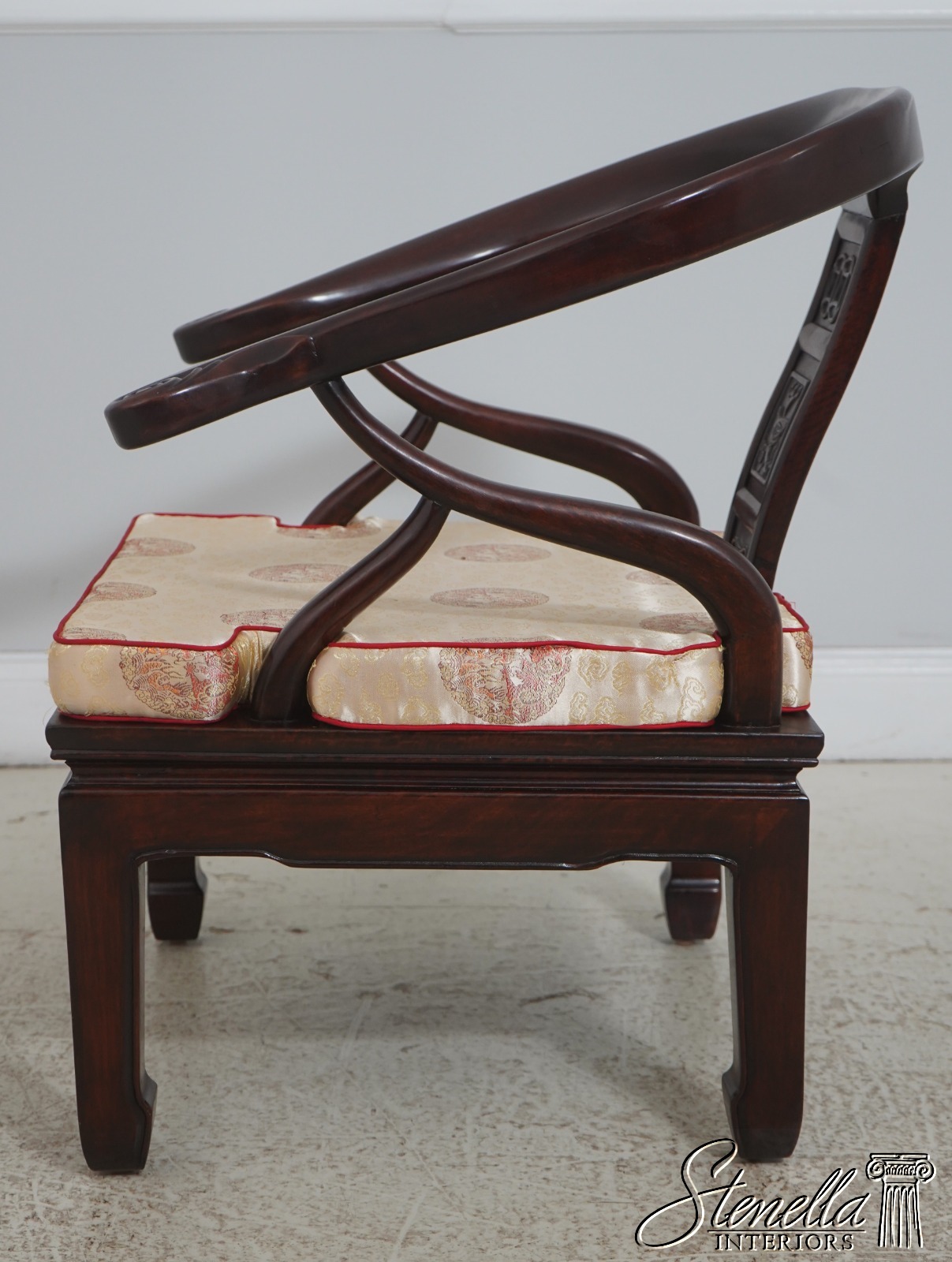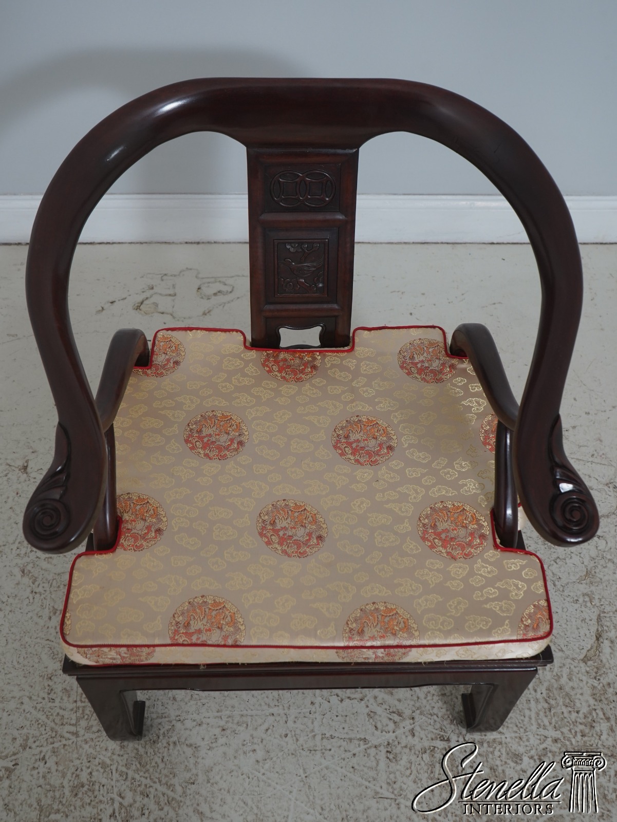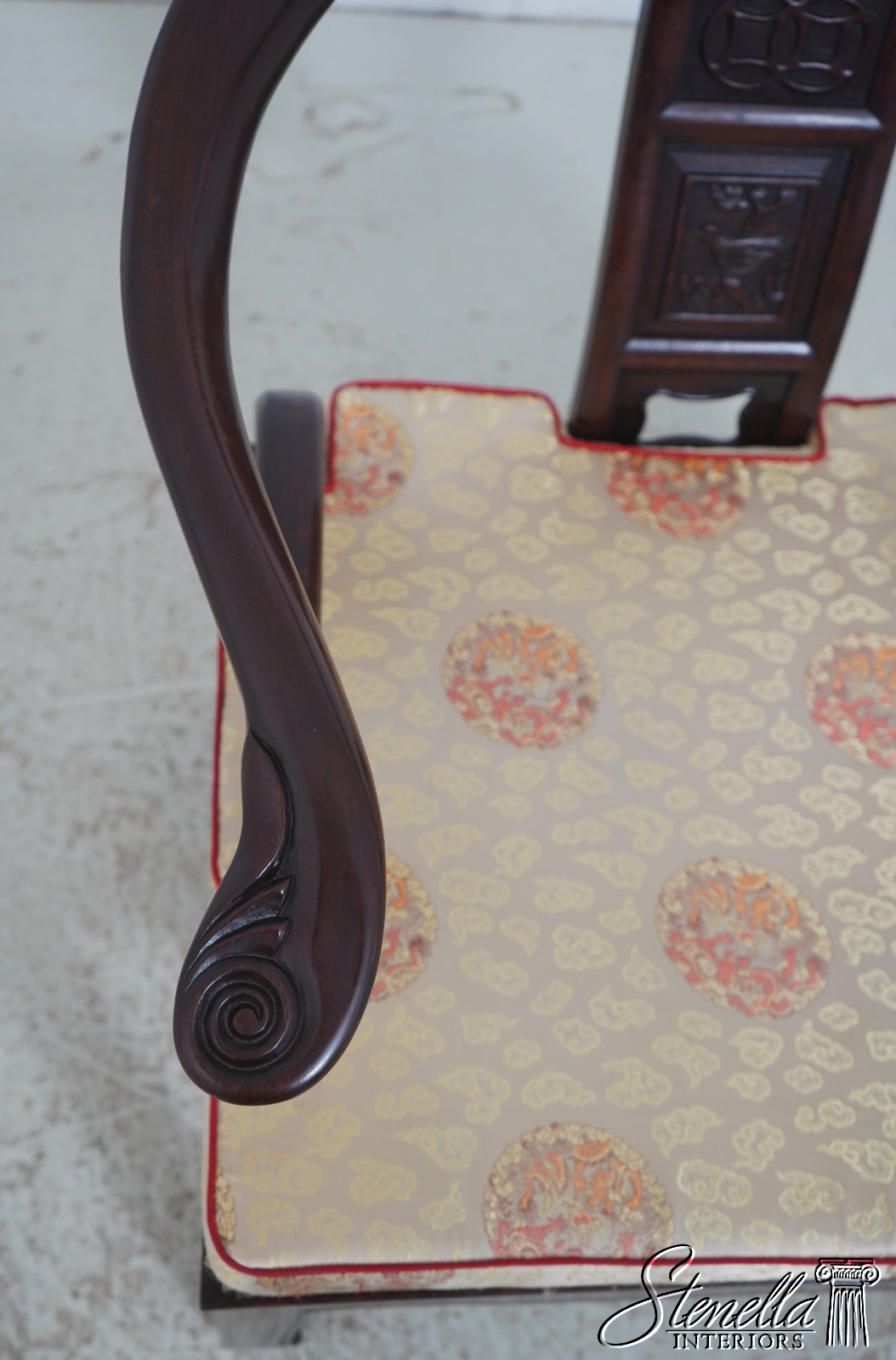 F72036: Pair Of Vintage Chinese Rosewood Carved Armchairs
