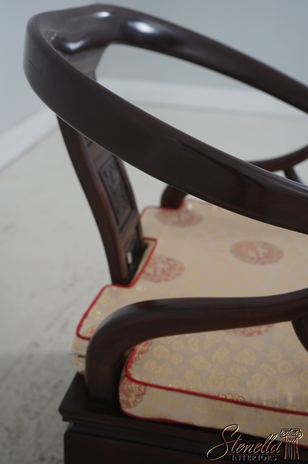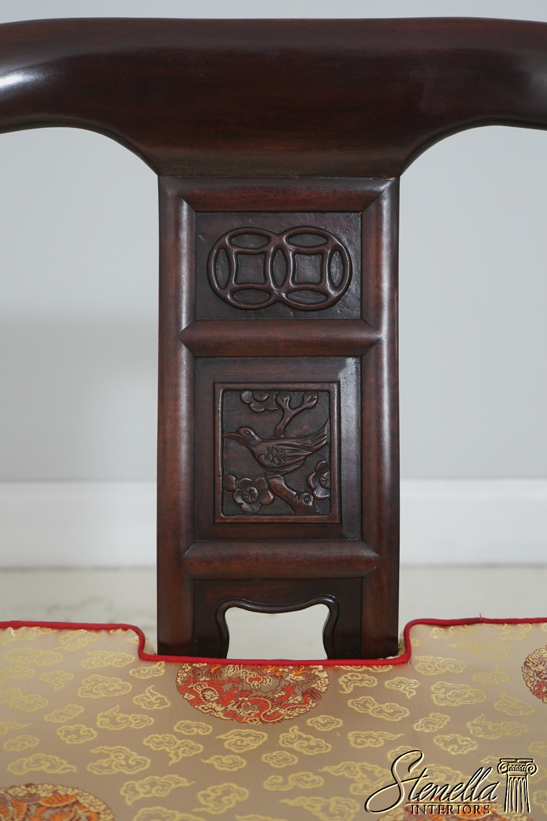 Details: Custom Upholstered Seat Cushions Fine Carved Details High Quality Construction Pair Stunning Vintage Chairs