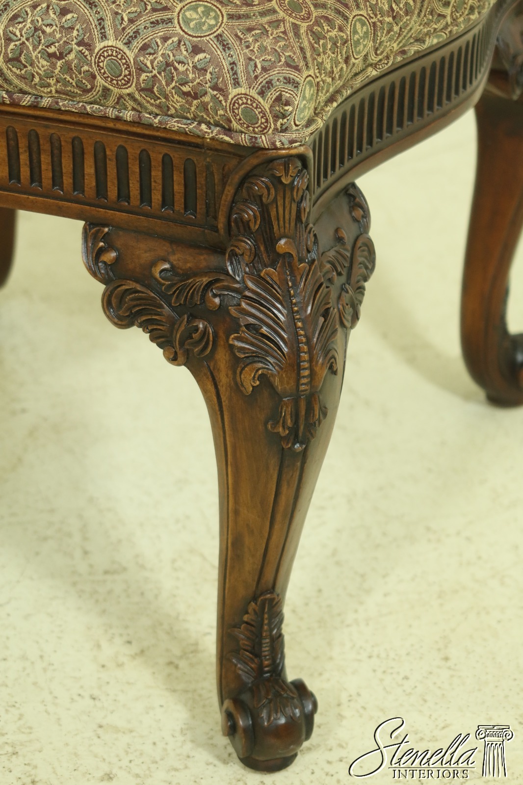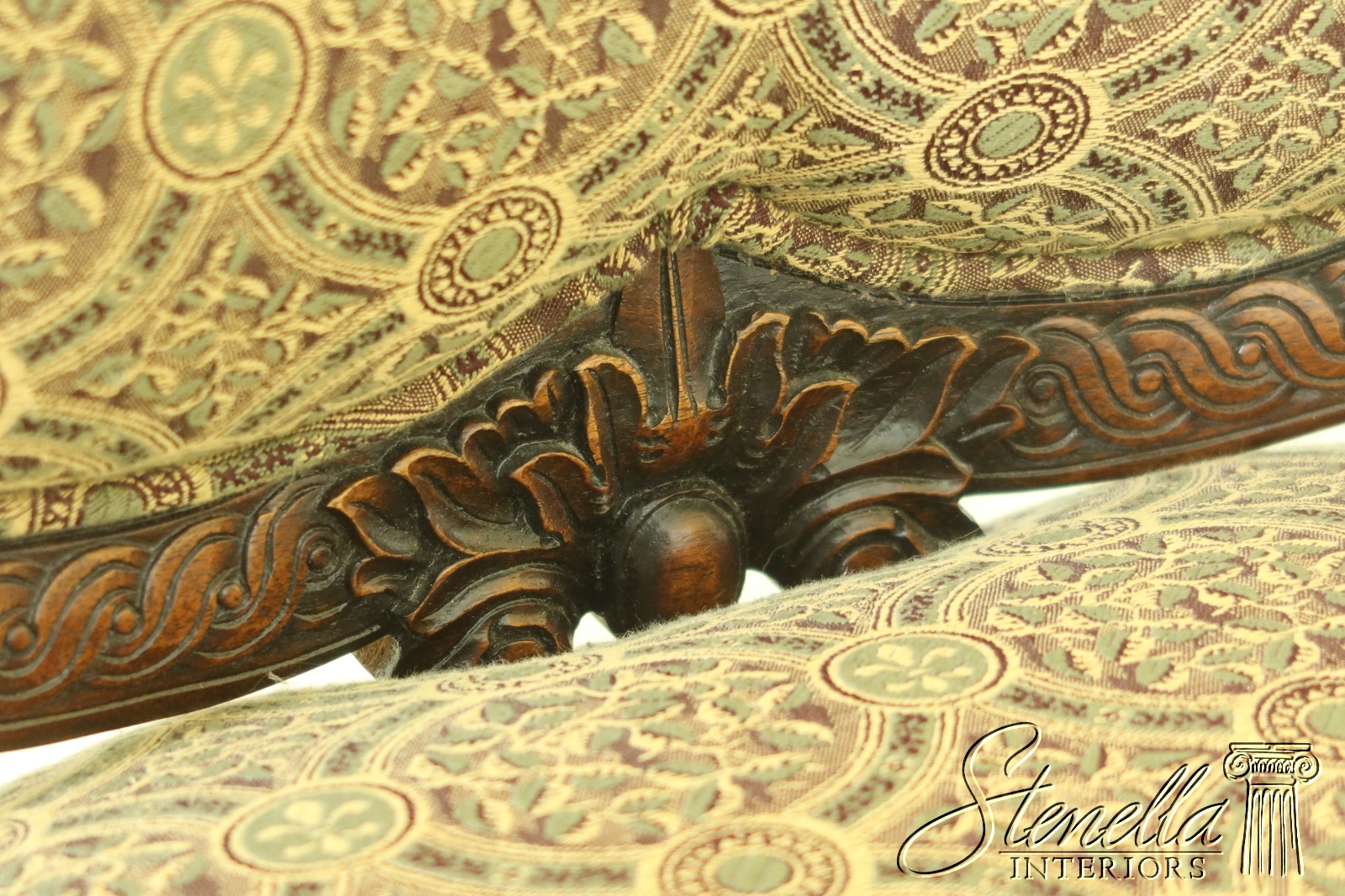 Details: Nice Carved Details Quality Construction Professionally Reupholstered Approx. 3 Years Ago Un-Marked As To Manufacture Offered @ Fraction Original Retail Cost