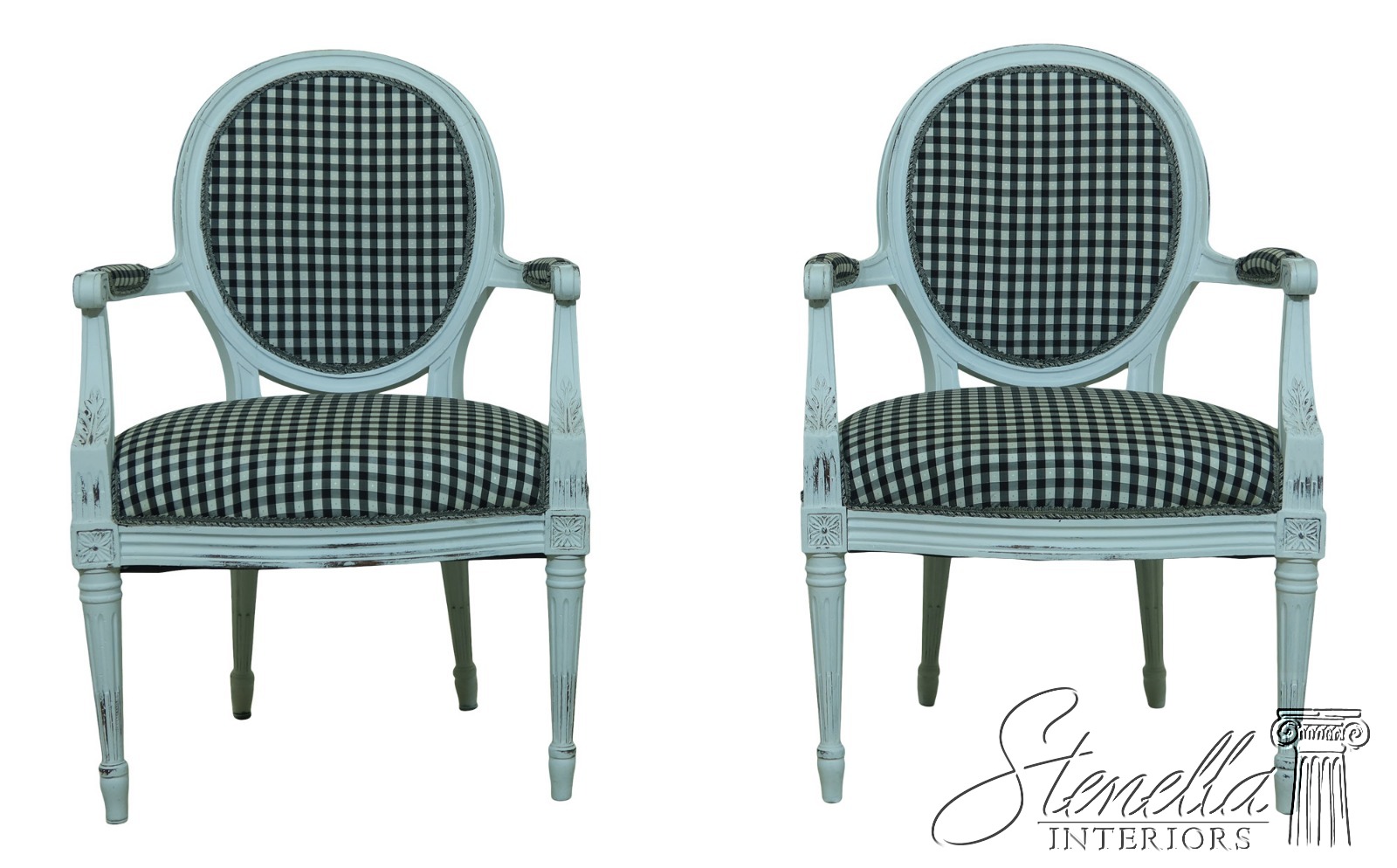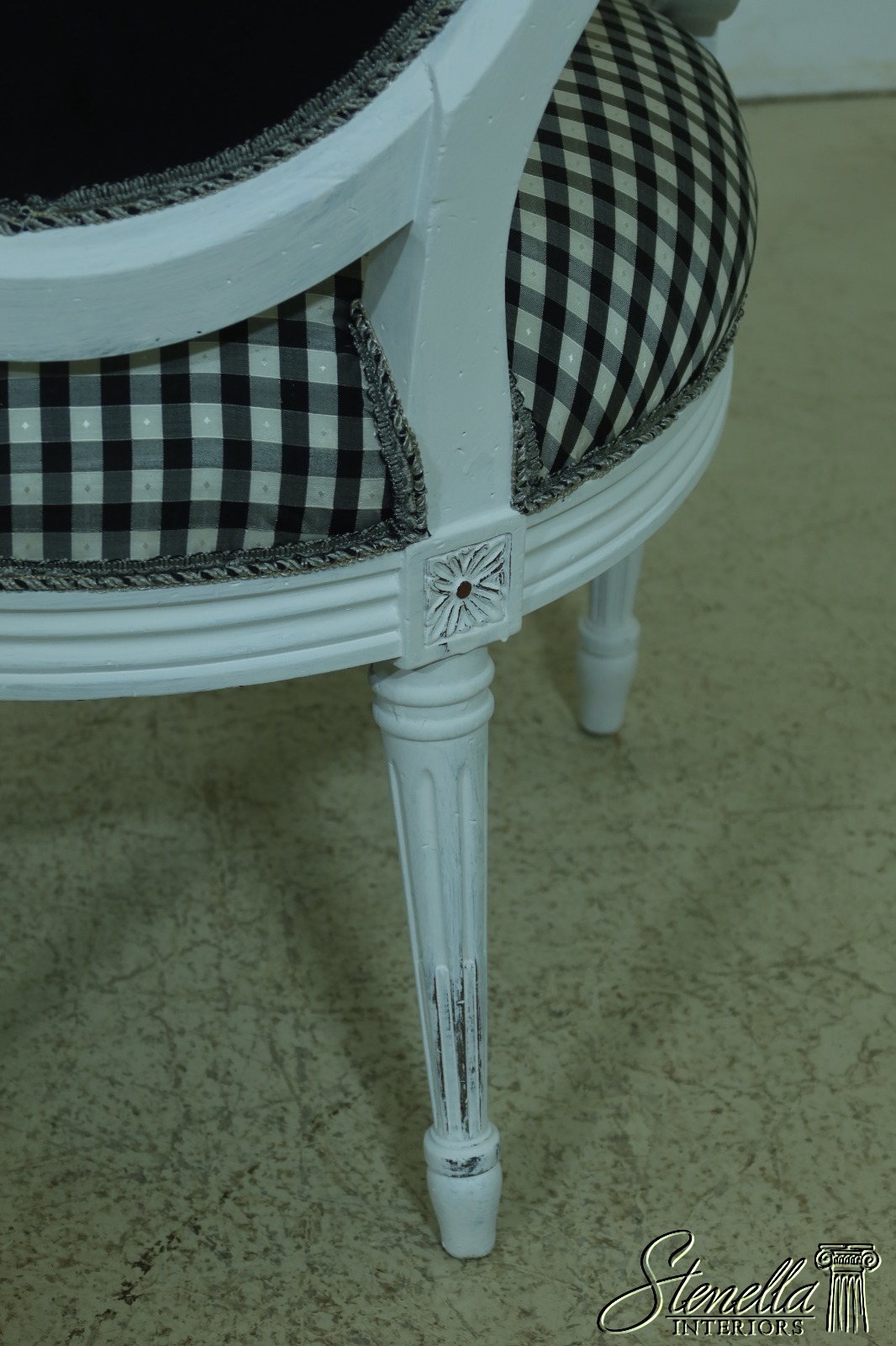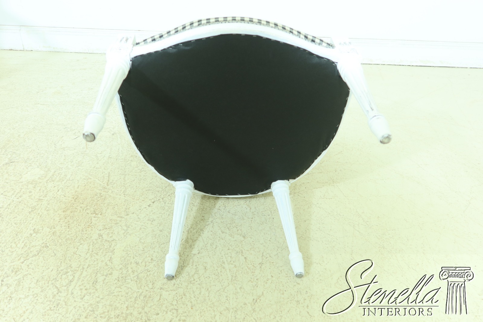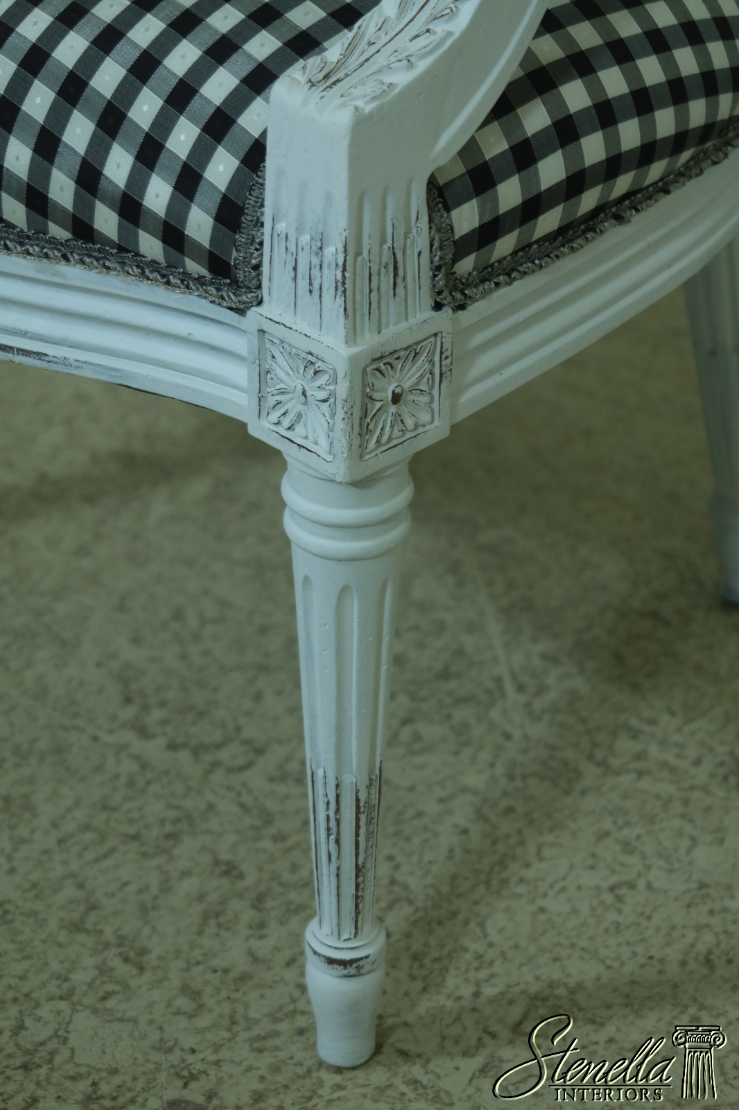 L53734: Pair French Louis XVI Style White Upholstered Open Armchairs
