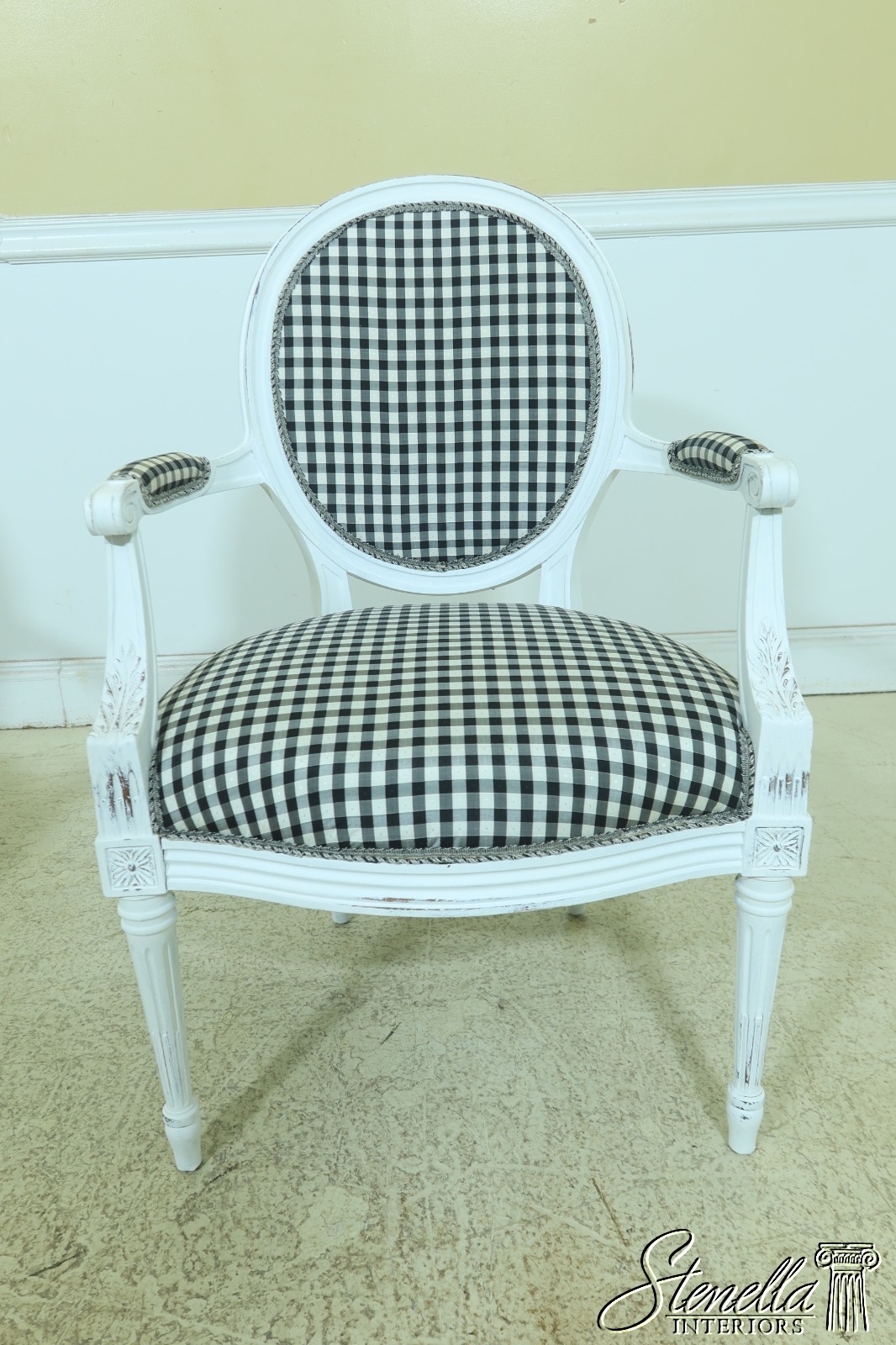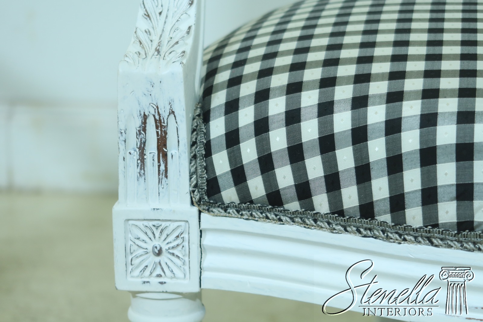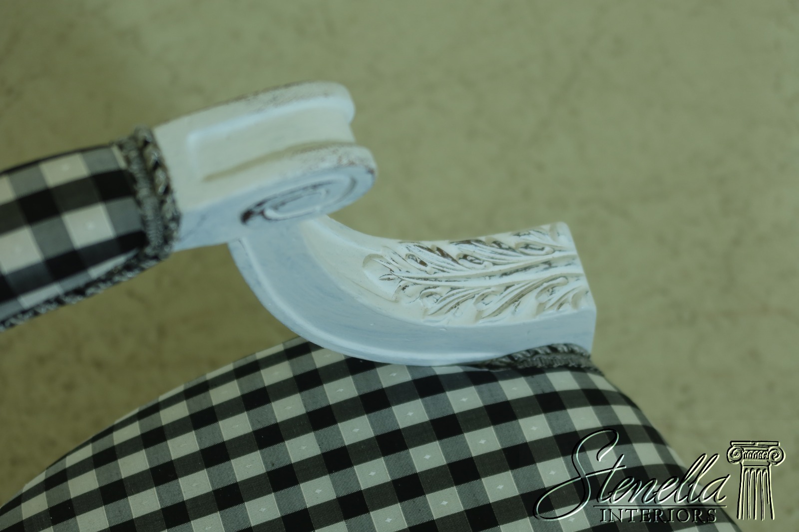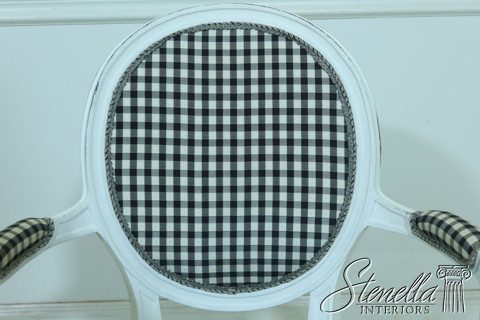 Details: Medallion Backs Nice Carved Details High Quality Construction French Style Brand New Upholstery French Style Whited Rubbed (Antiqued) Painted Finish Brand New Quality Black & White Checker Upholstery