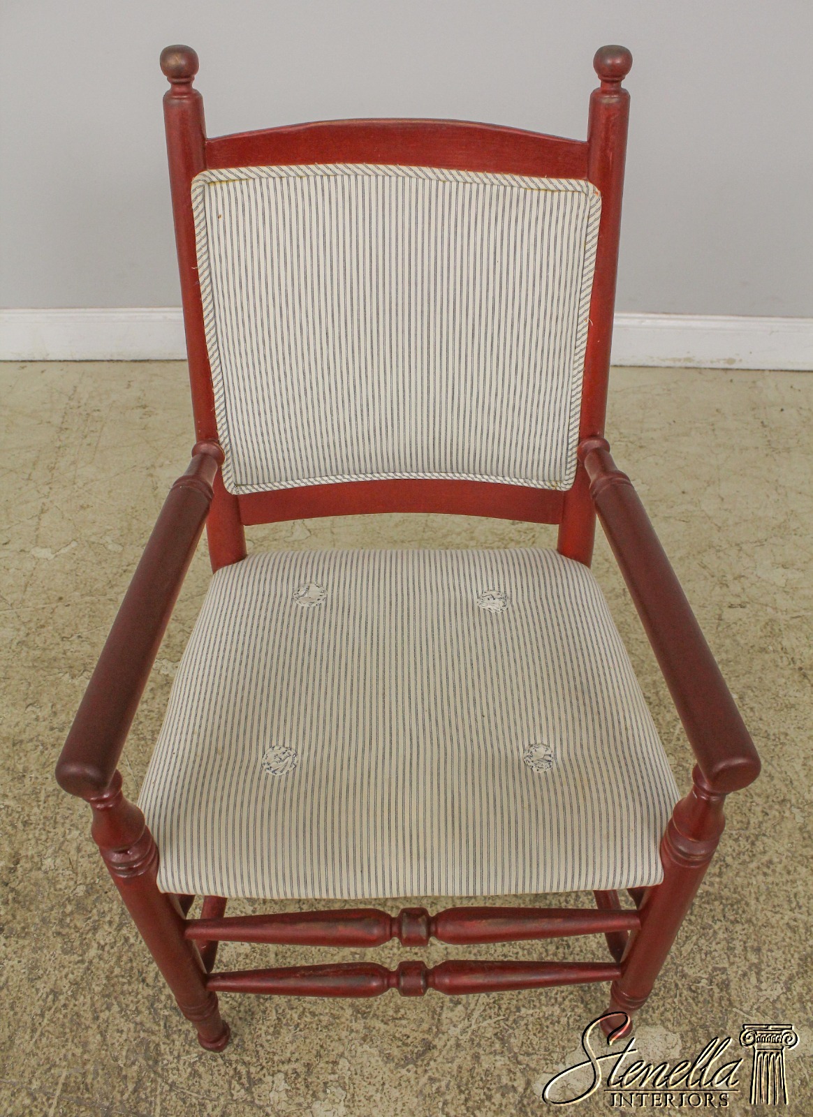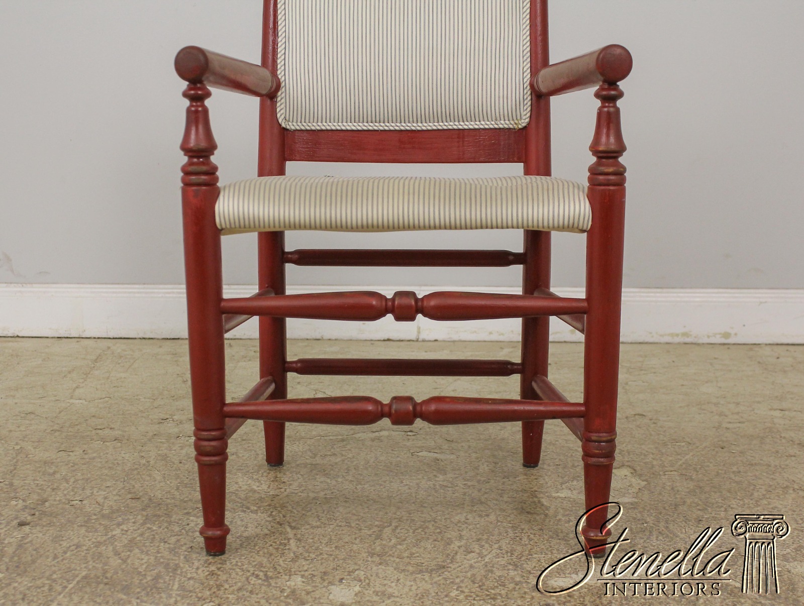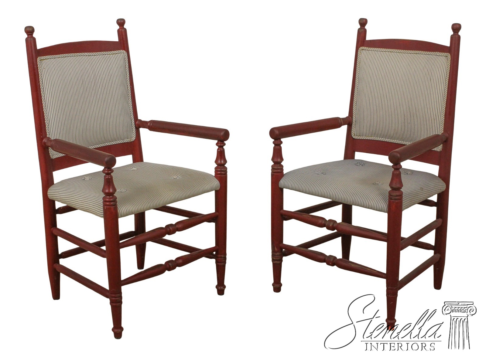 L57620: Pair Country Red Painted Open Arm Farmhouse Chairs