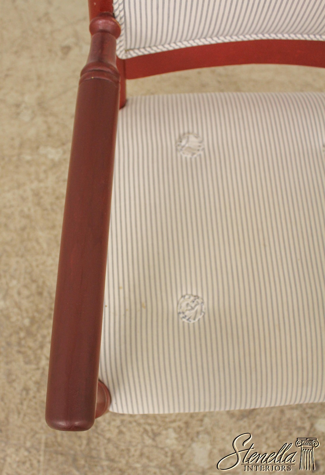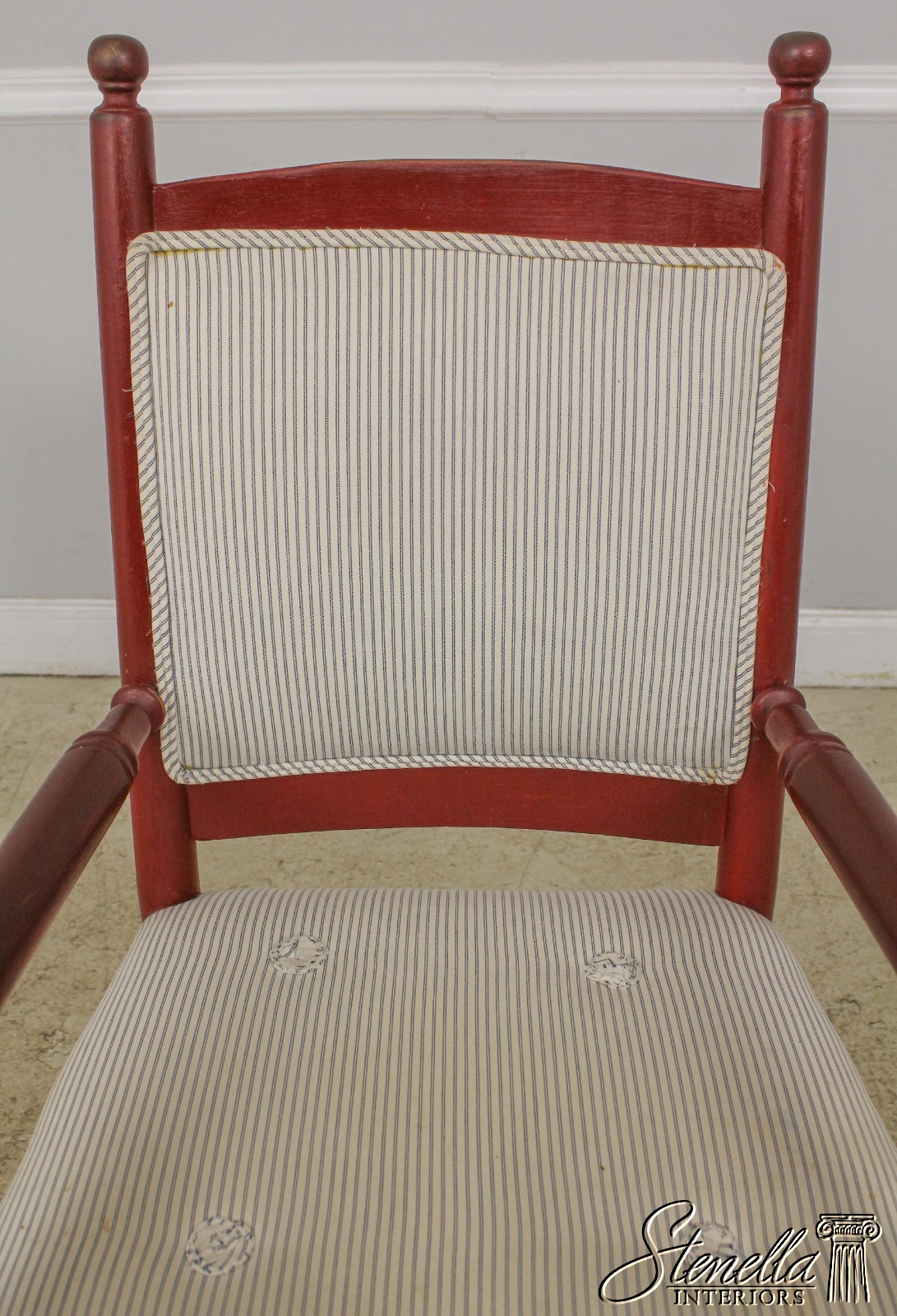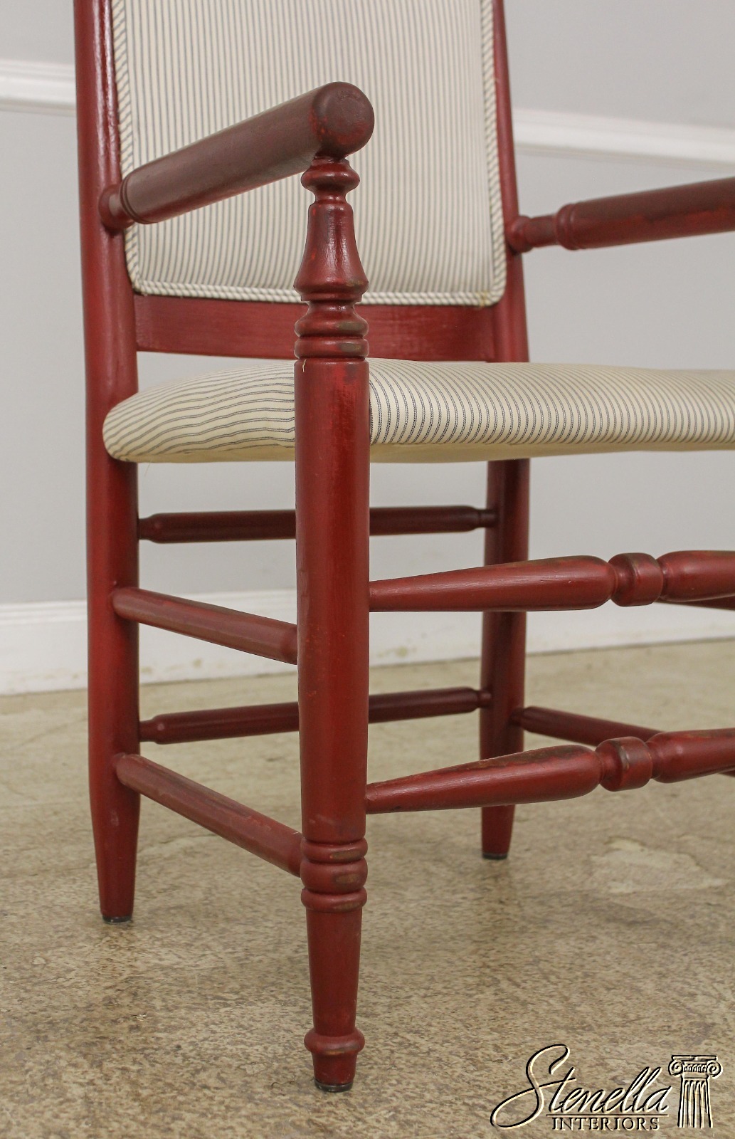 L57620: Pair Country Red Painted Open Arm Farmhouse Chairs