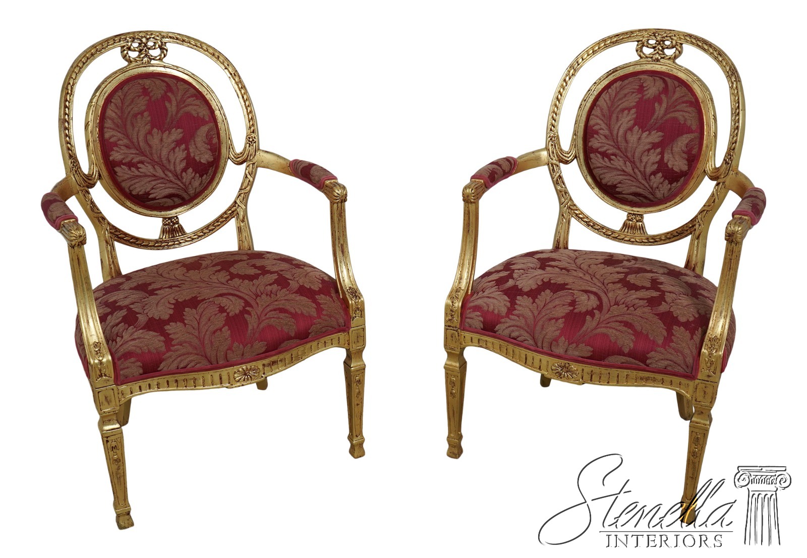 L62006EC: Pair Gold Gilt French Louis XVI Style Open Armchairs