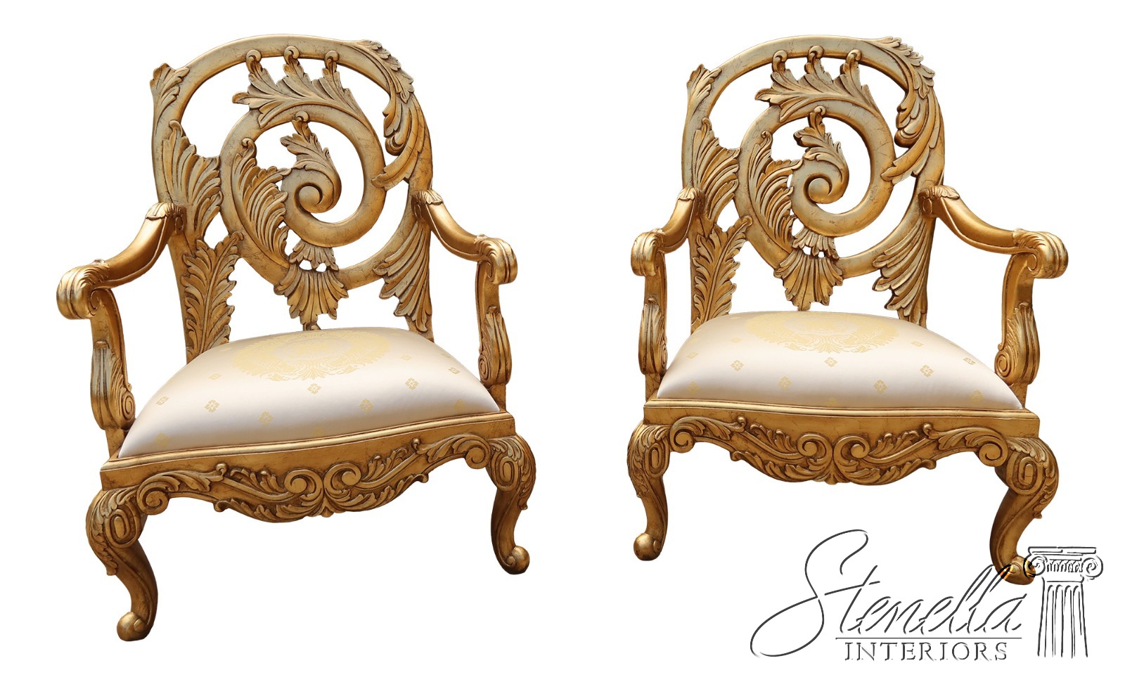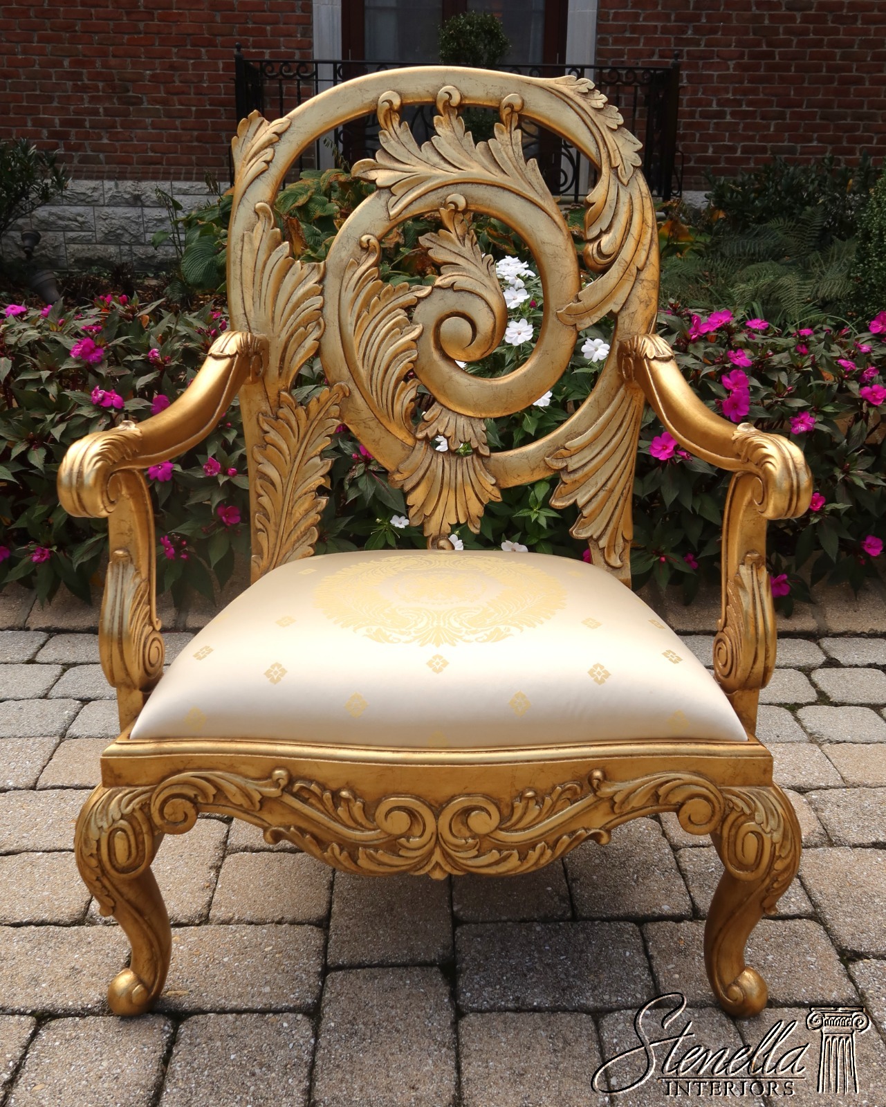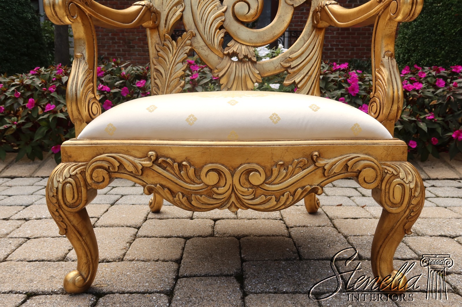 L62053EC: Pair PHYLLIS MORRIS Gold Leaf French Carved Throne Chairs