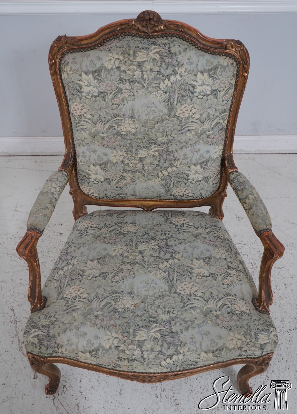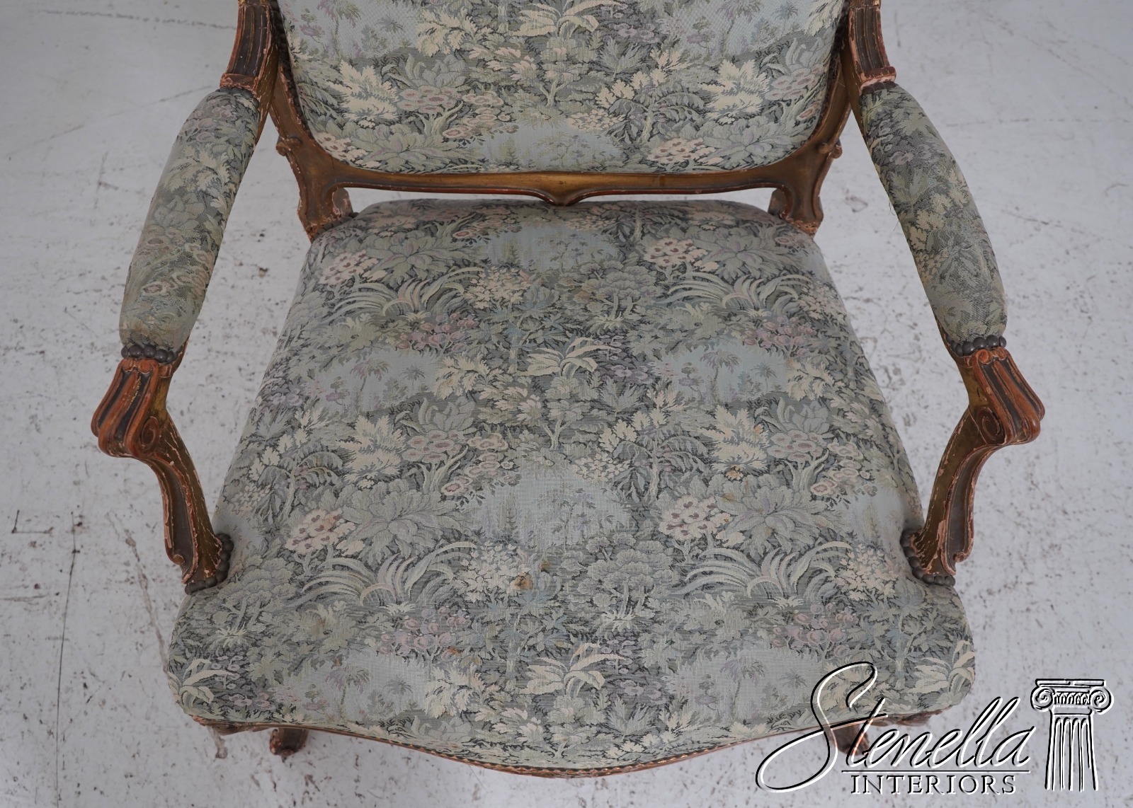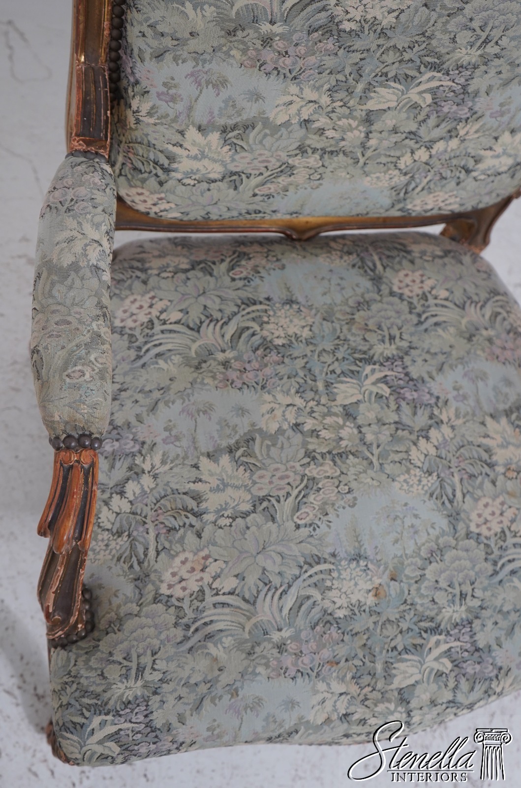 Details: Fine Carved Details High Quality Construction Large Impressive Chairs Tack Head Trim Well Cared For Upholstery Worn Polychrome Painted Finish Professionally Reupholstered Approx. 20 Years Ago