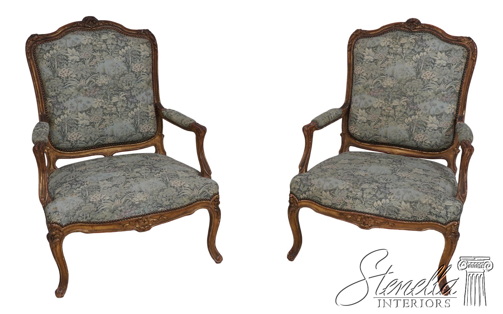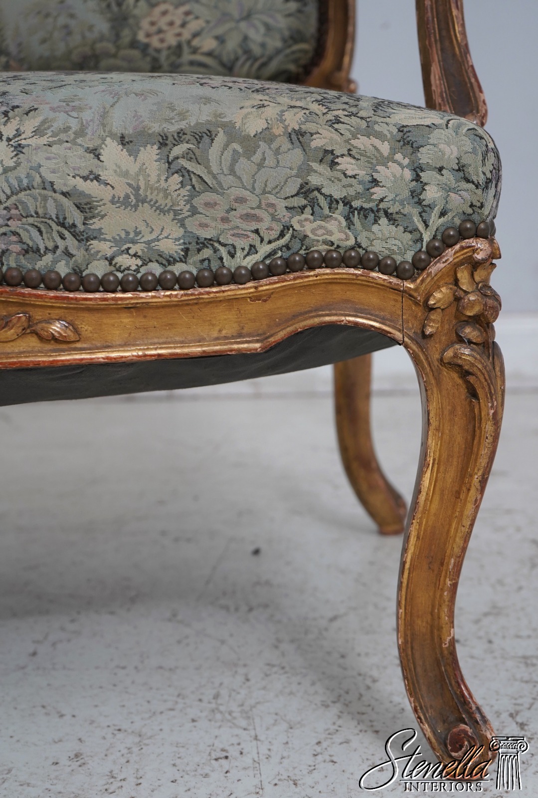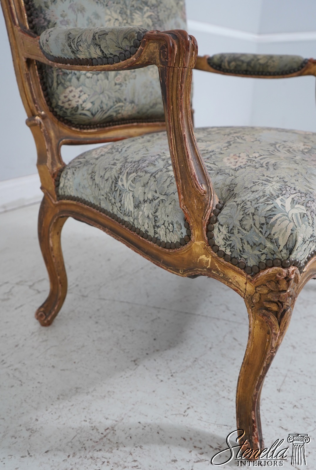 Details: Fine Carved Details High Quality Construction Large Impressive Chairs Tack Head Trim Well Cared For Upholstery Worn Polychrome Painted Finish Professionally Reupholstered Approx. 20 Years Ago