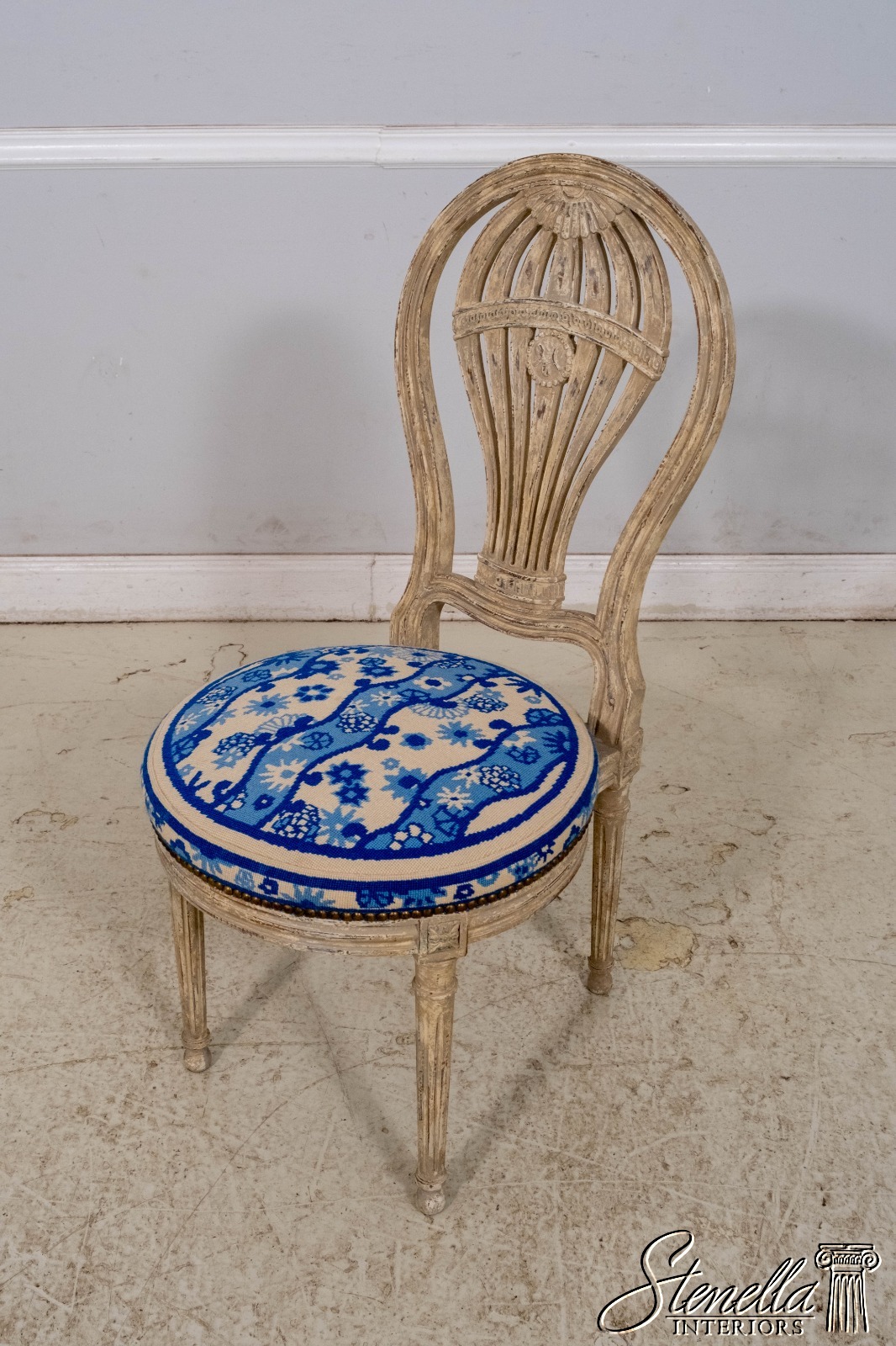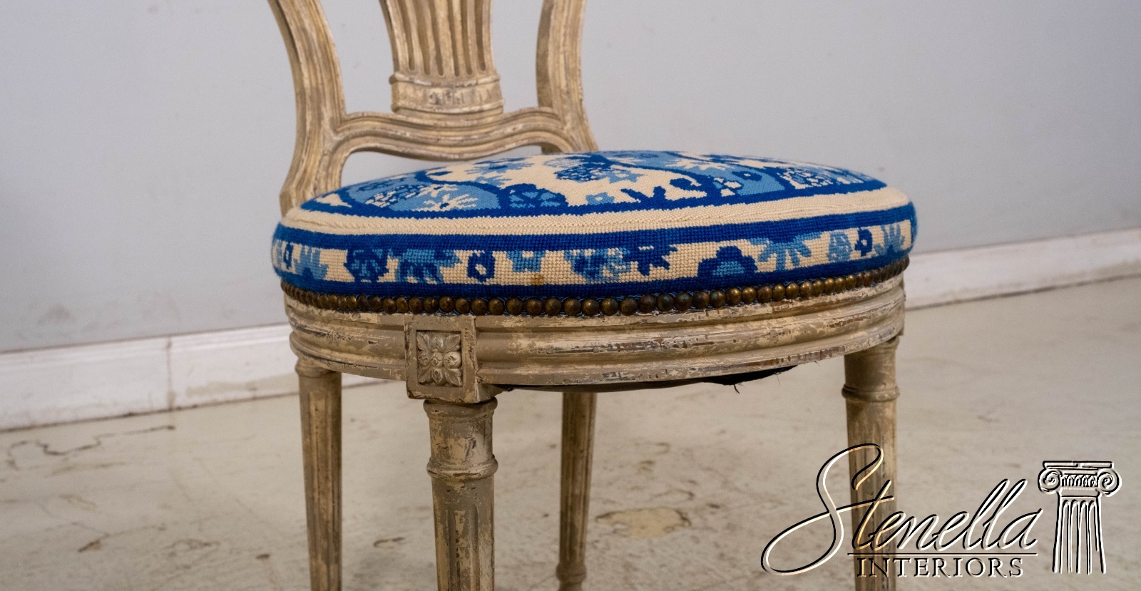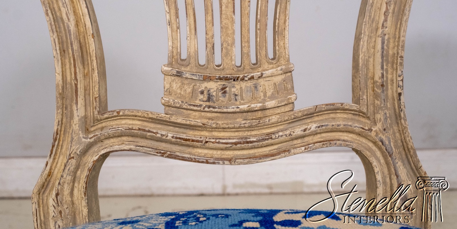 Details: Stunning Distressed Finish Vintage Chairs Fine Carved Details High Quality Construction High Quality Hand Done Needlepoint Seats Intentional Distressing Balloon Back Design Un-Marked As To Manufacture Offered @ Fraction Original Retail Cost
