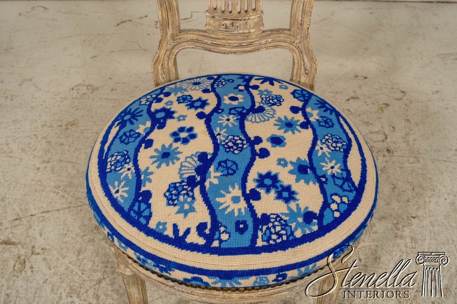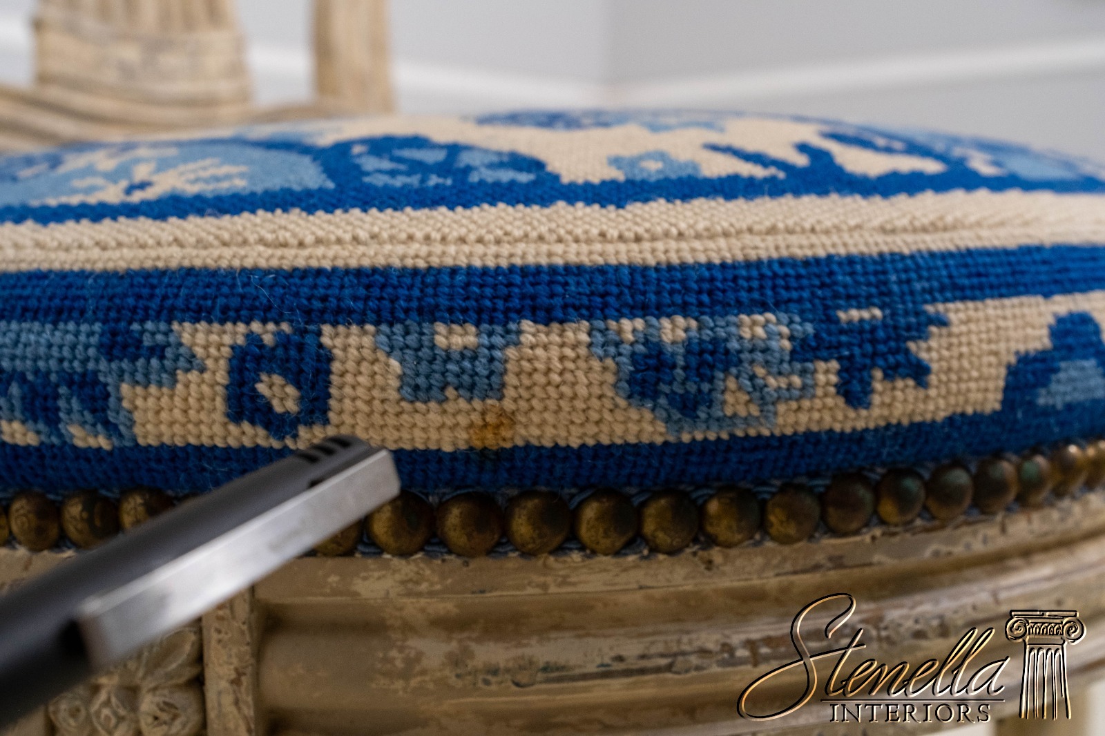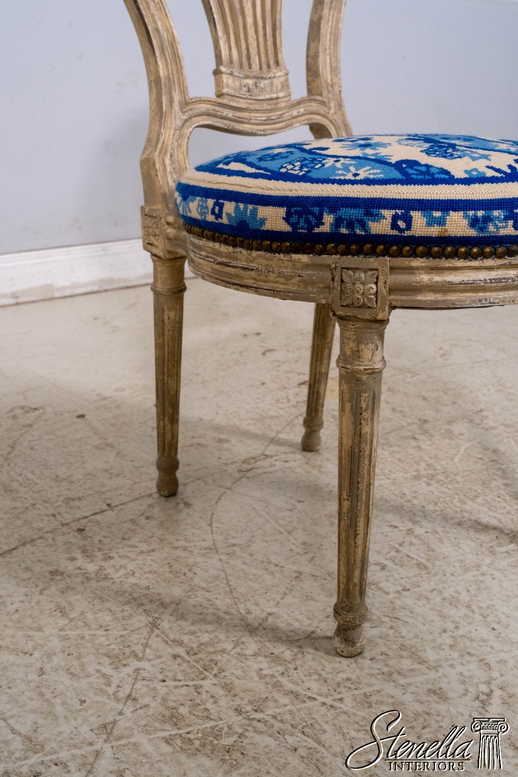 Details: Stunning Distressed Finish Vintage Chairs Fine Carved Details High Quality Construction High Quality Hand Done Needlepoint Seats Intentional Distressing Balloon Back Design Un-Marked As To Manufacture Offered @ Fraction Original Retail Cost