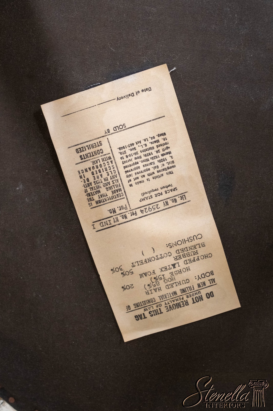 Sometimes upholstered items may show some wear or minor use. Or you may want to have recovered in different upholstery to match your decor’. Please feel free to contact us for information on having this or any of our items professionally re-upholstered in the fabric of your choice. We are able to make recommendations.
