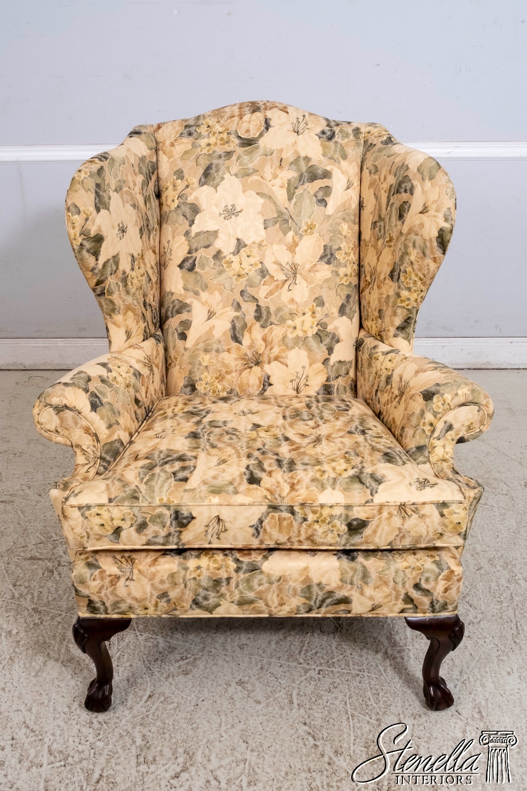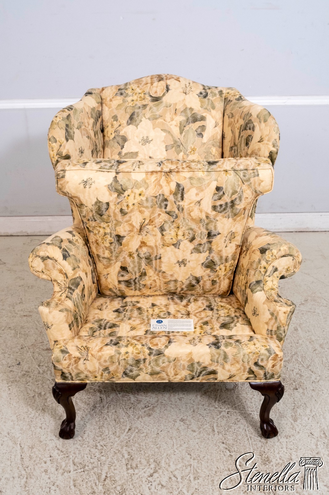 L69988: Pair Of ETHAN ALLEN Rolled Arm Wingback Chairs