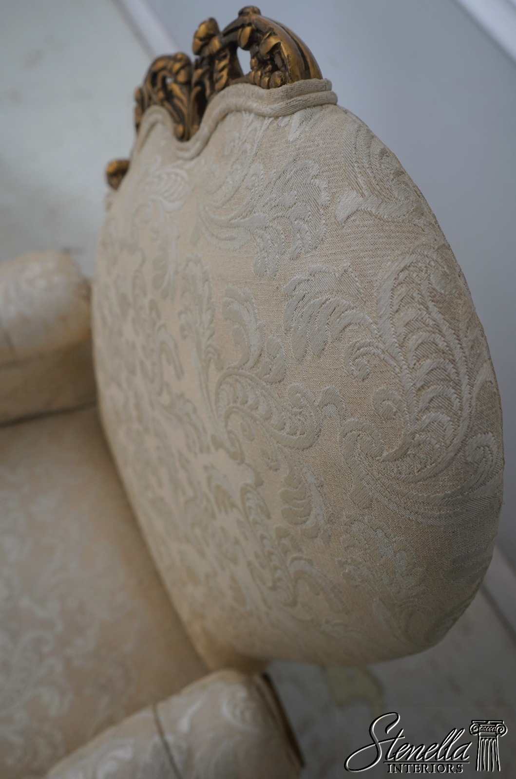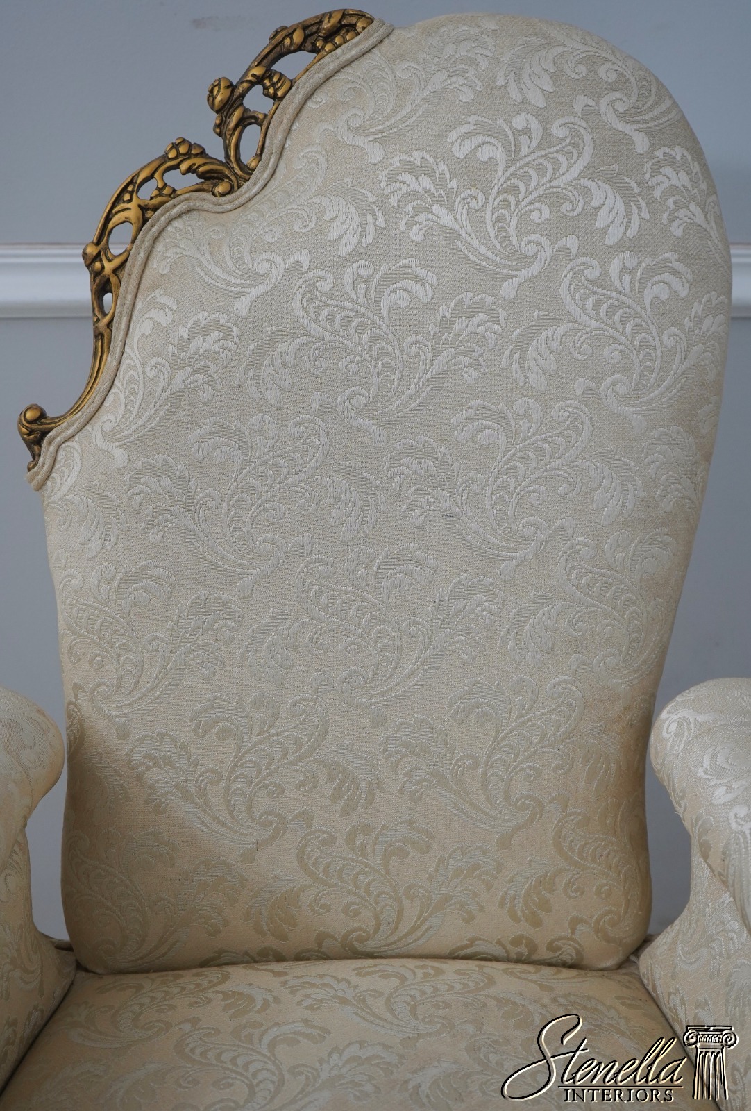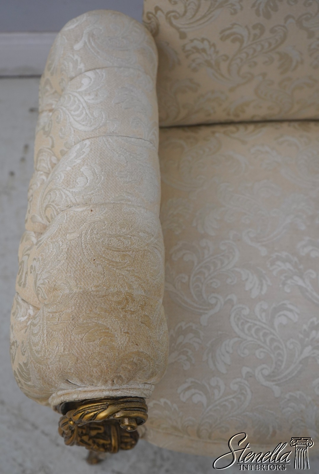 Details: Fine Carved Details High Quality Construction Tufted Sides - Rolled Arms Queen Anne Legs & Pad Feet Pierced Carved Back Quality Damask Upholstery Un-Marked As To Manufacture Offered @ Fraction Original Retail Cost