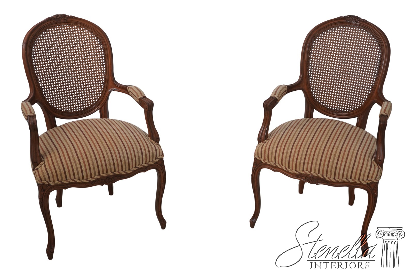L70572: HENREDON Pair Of French Louis XV Cane Back Armchairs