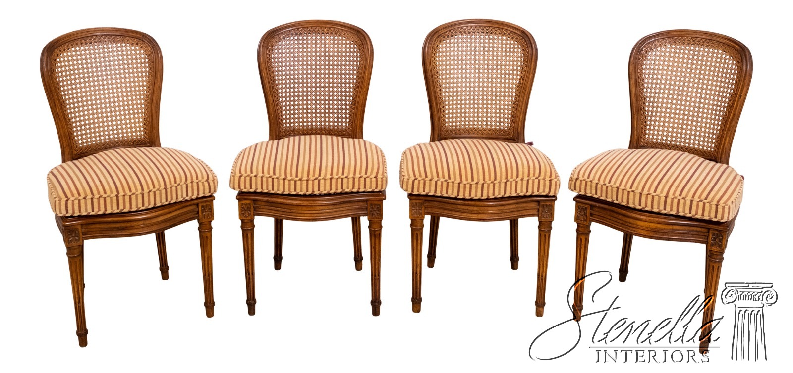 L70666: Set of 4 Louis XV Mahogany Cane Side Chairs w. Cushions