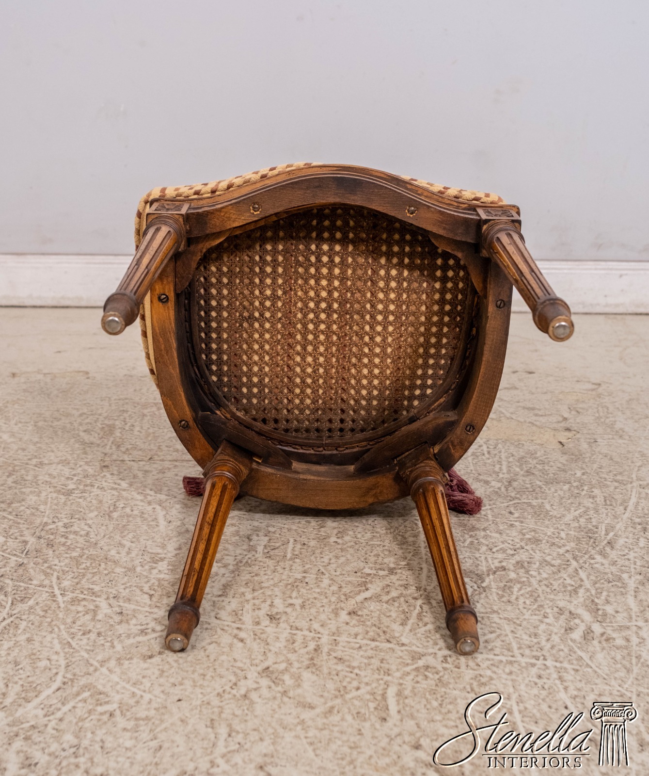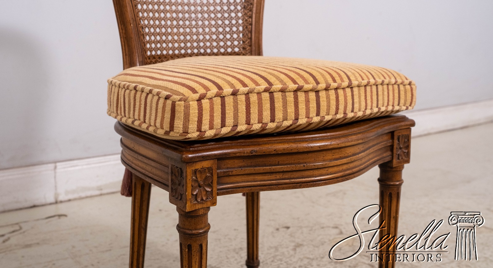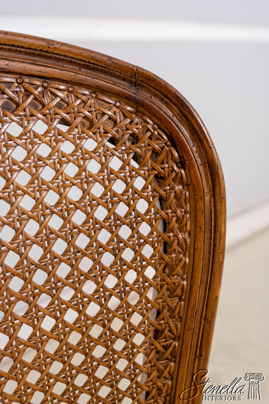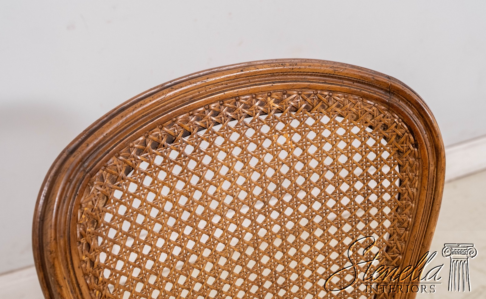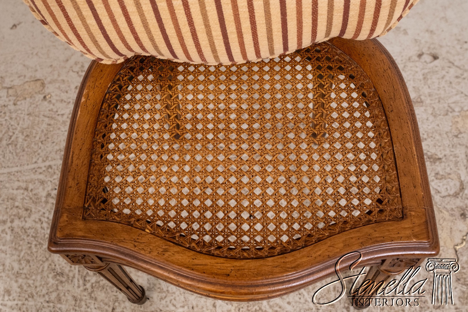 Details: Factory Distressed Mahogany Custom Upholstered Cushions Fine Carved Details High Quality Construction Cane Seats & Backs French Style Tapered Fluted Legs Carved Rosettes Cane Seats & Backs Un-Marked As To Manufacture - Possibly By John Widdicomb, Baker Or Similar Manufacture Offered @ Fraction Original Retail Cost
