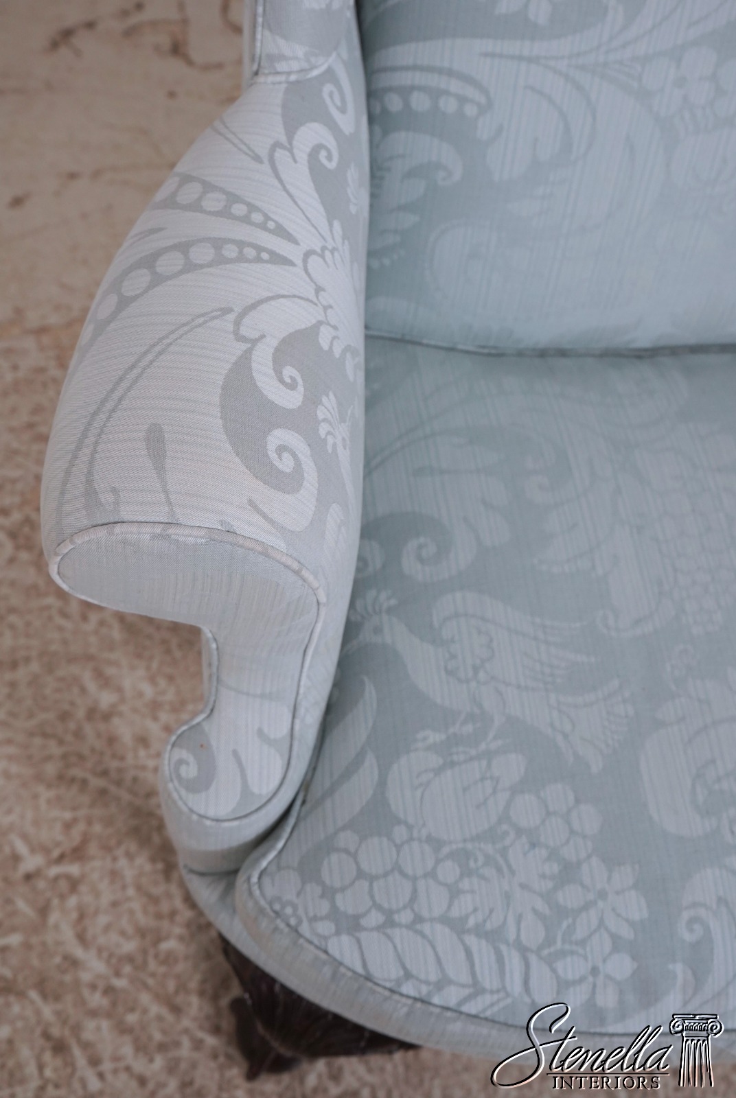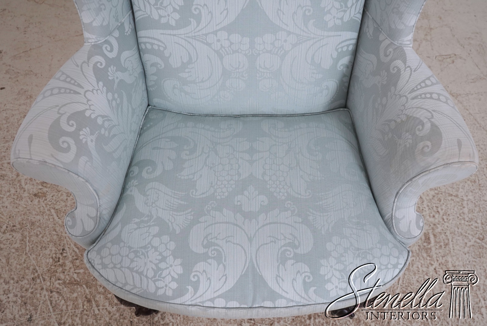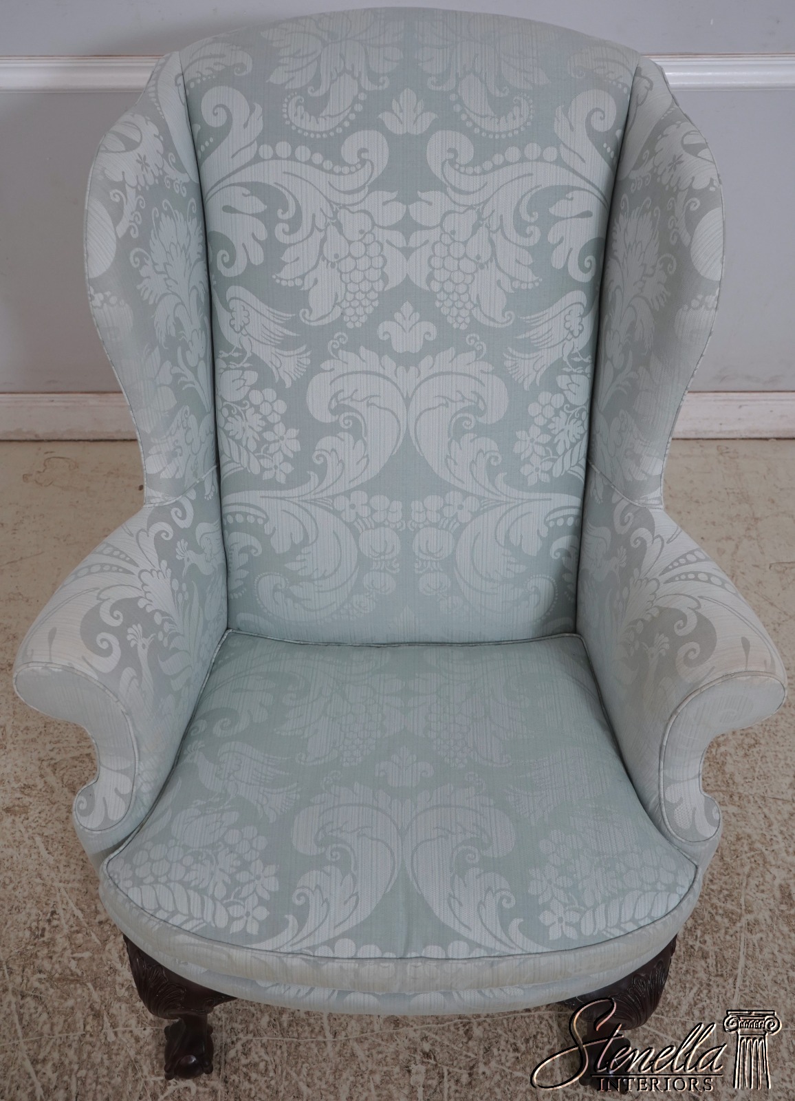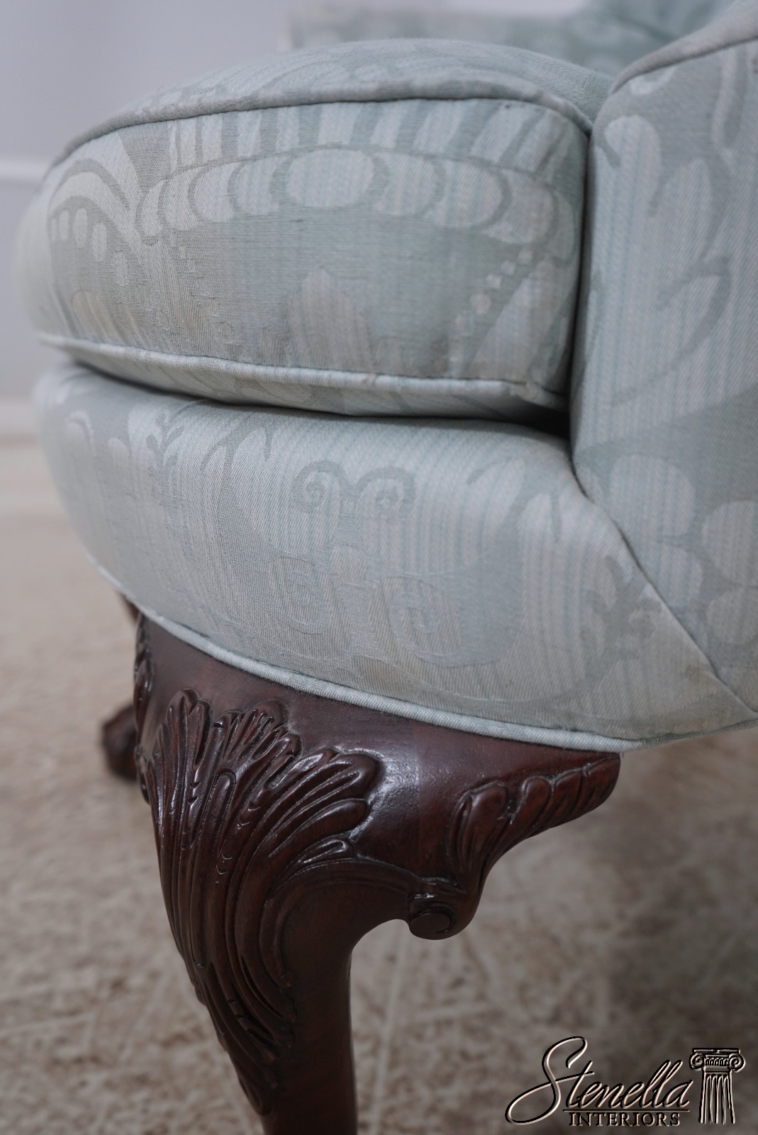 Details: Model WA-2013 Solid Mahogany Legs Ball & Claw Feet High Quality Construction See Other Offerings For Matching Ottoman 18 C. Design Chippendale Style Traditional Style Chairs Appears To Have Been Rarely Used If Ever Quality Original Light Blue Damask Upholstery Offered @ Fraction Original Retail Cost