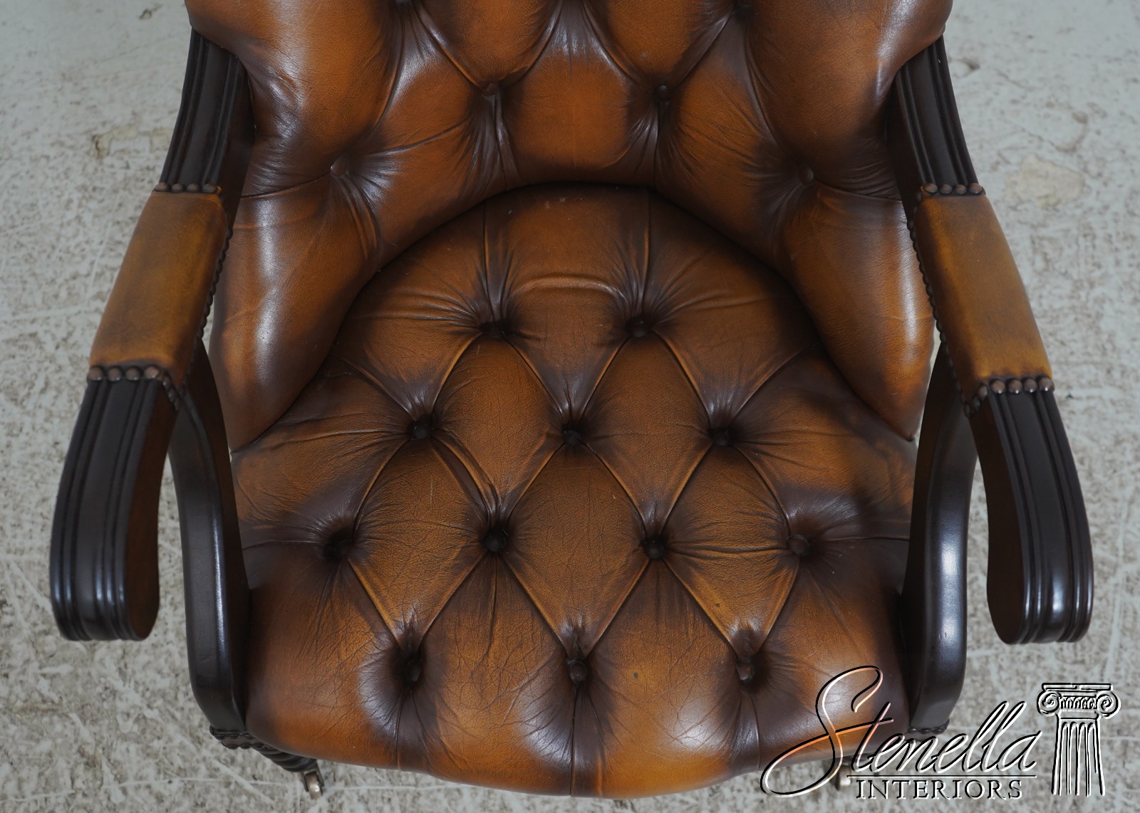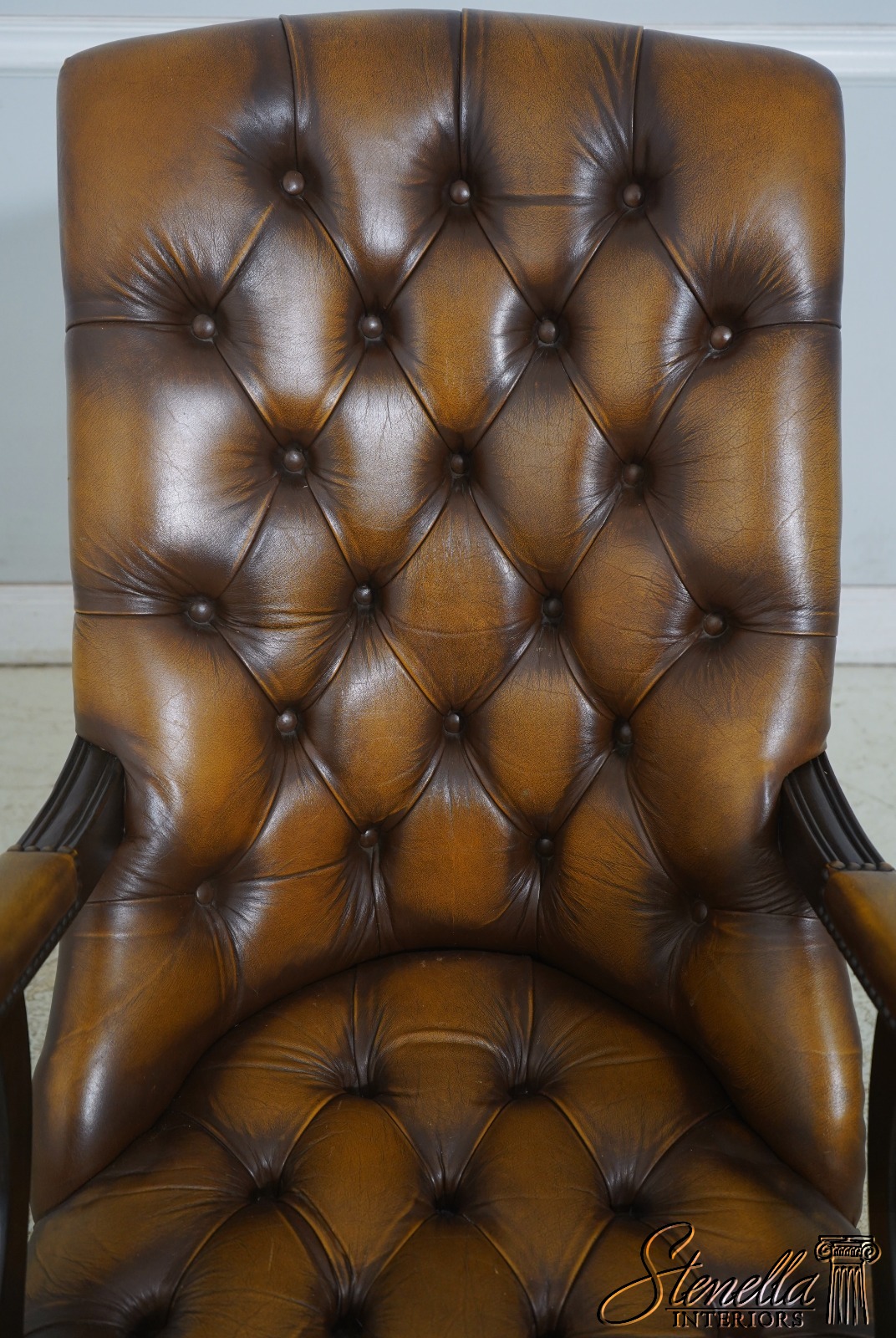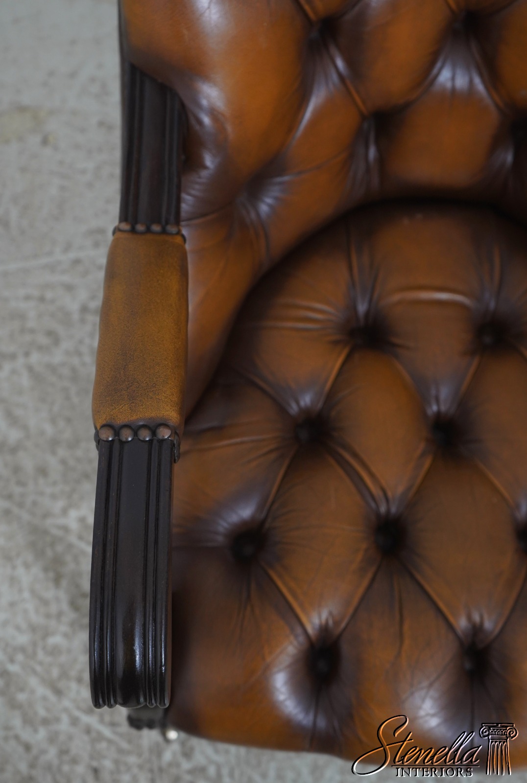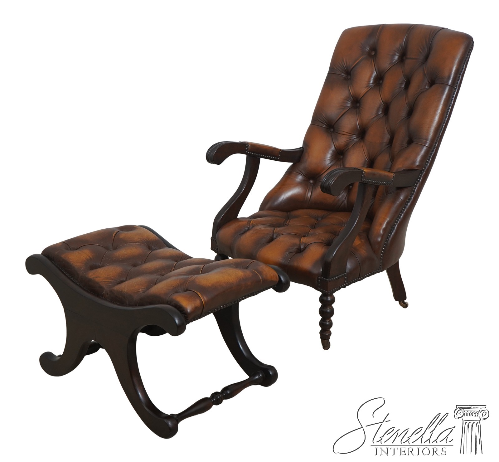 L70871: Vintage English Tufted Leather Chesterfield Style Chair & Ottoman