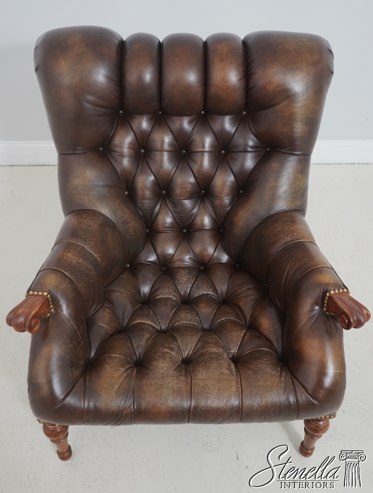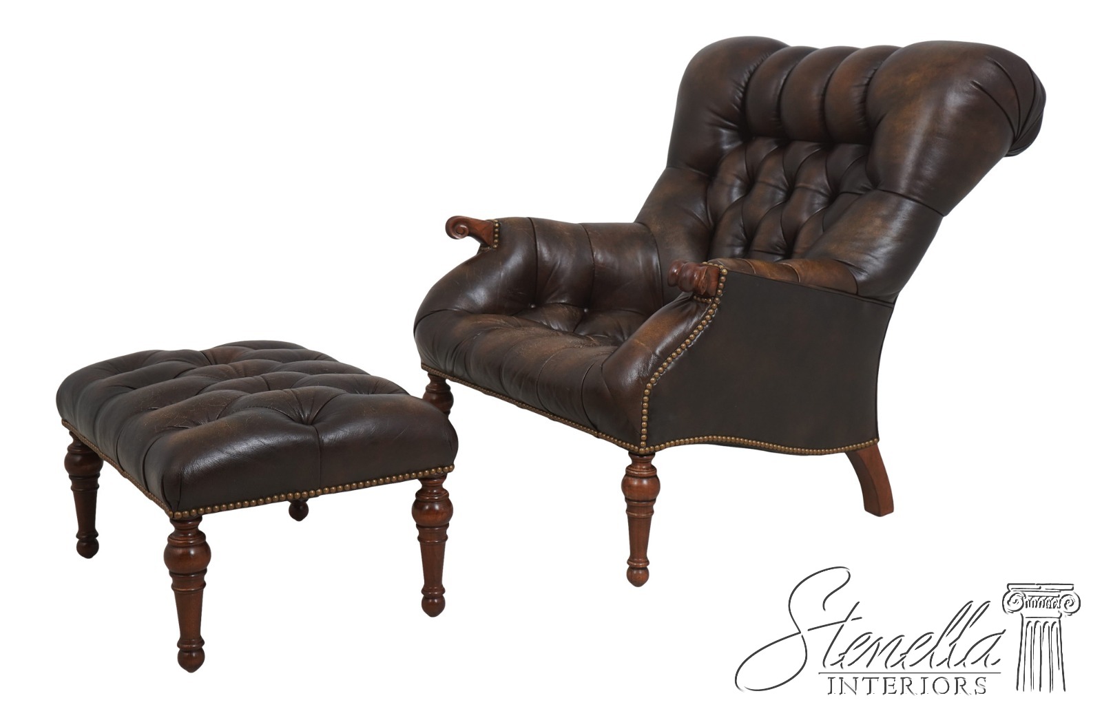 L71229: STICKLEY Tufted Leather Leopold Chair & Ottoman