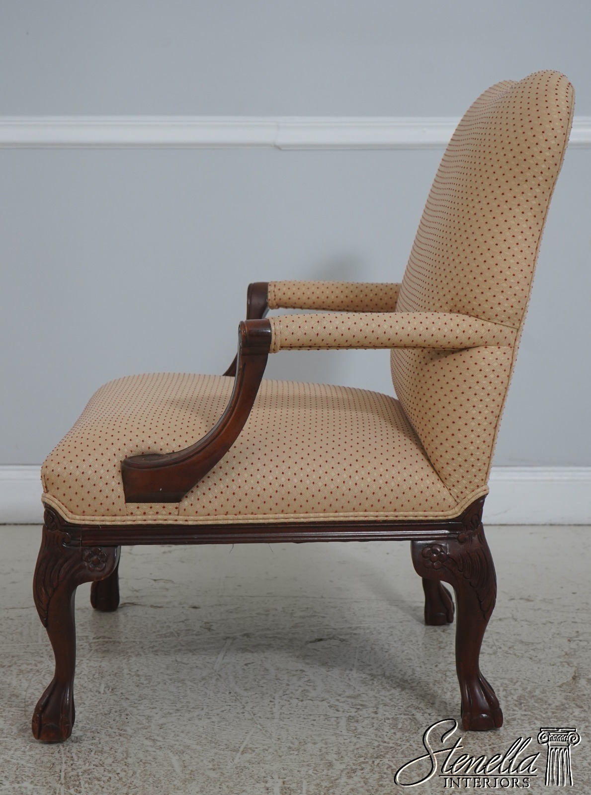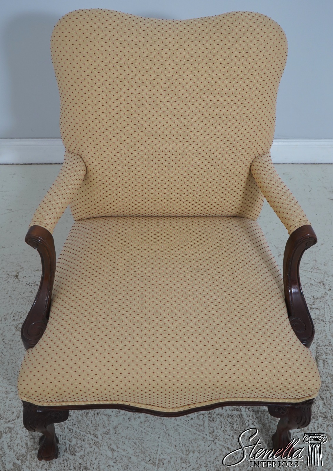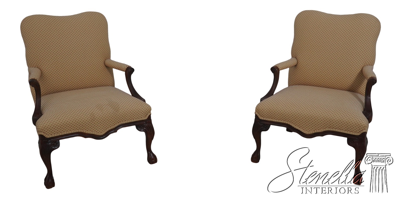 L72225: Pair Chippendale Ball And Claw Upholstered Library Chairs