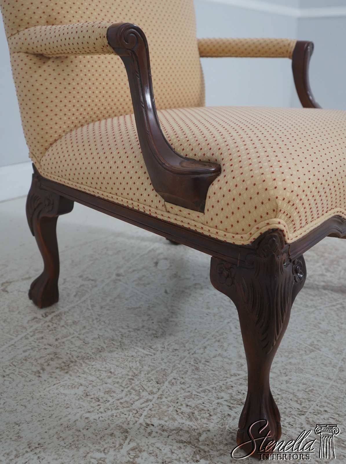 Details: Ball And Claw Feet Quality Construction 18th Century Design Chippendale Style Clean Well Cared For Upholstery Unmarked As To Manufacturer - Possibly By Sherrill, Century Or Similar Manufacturer