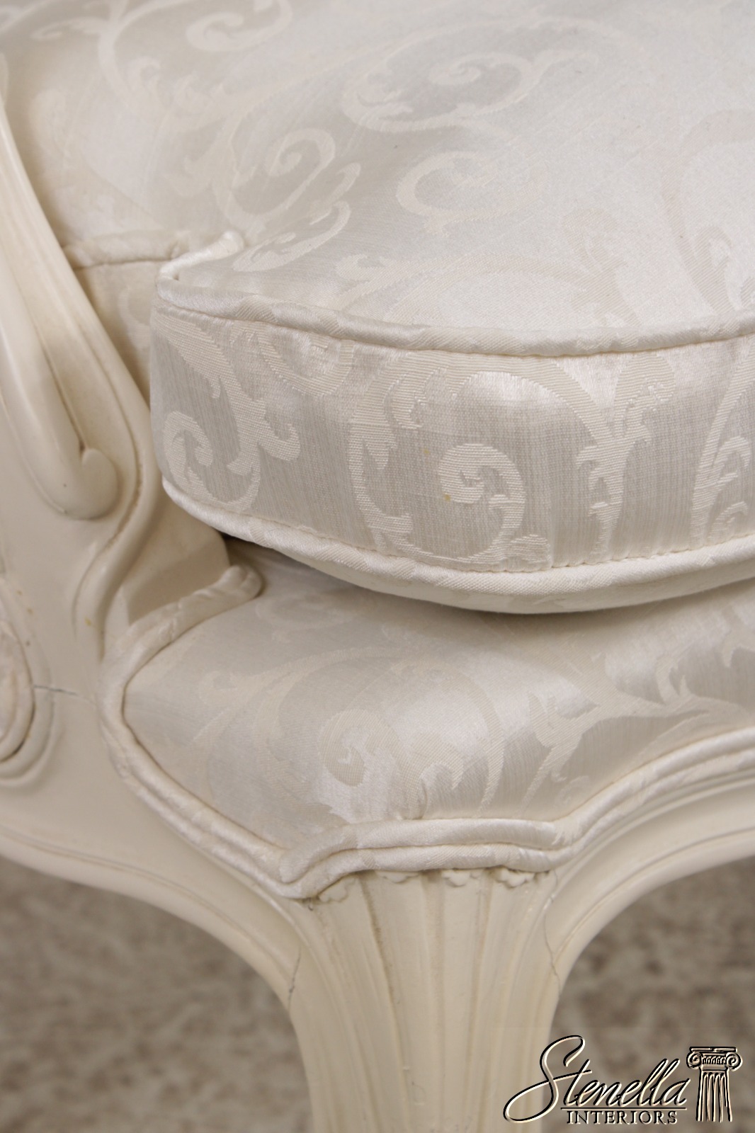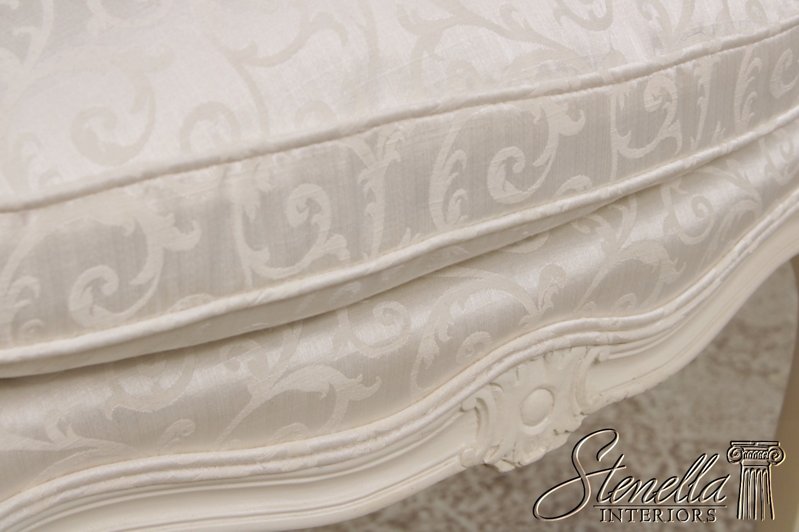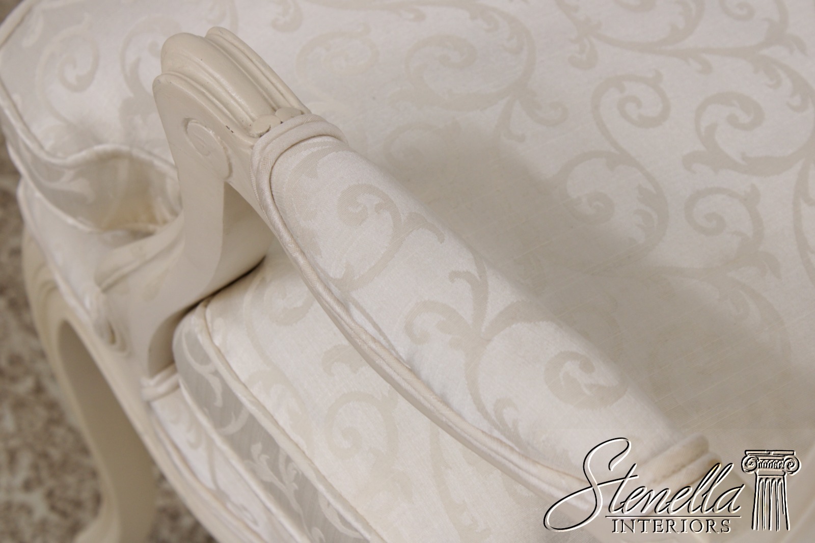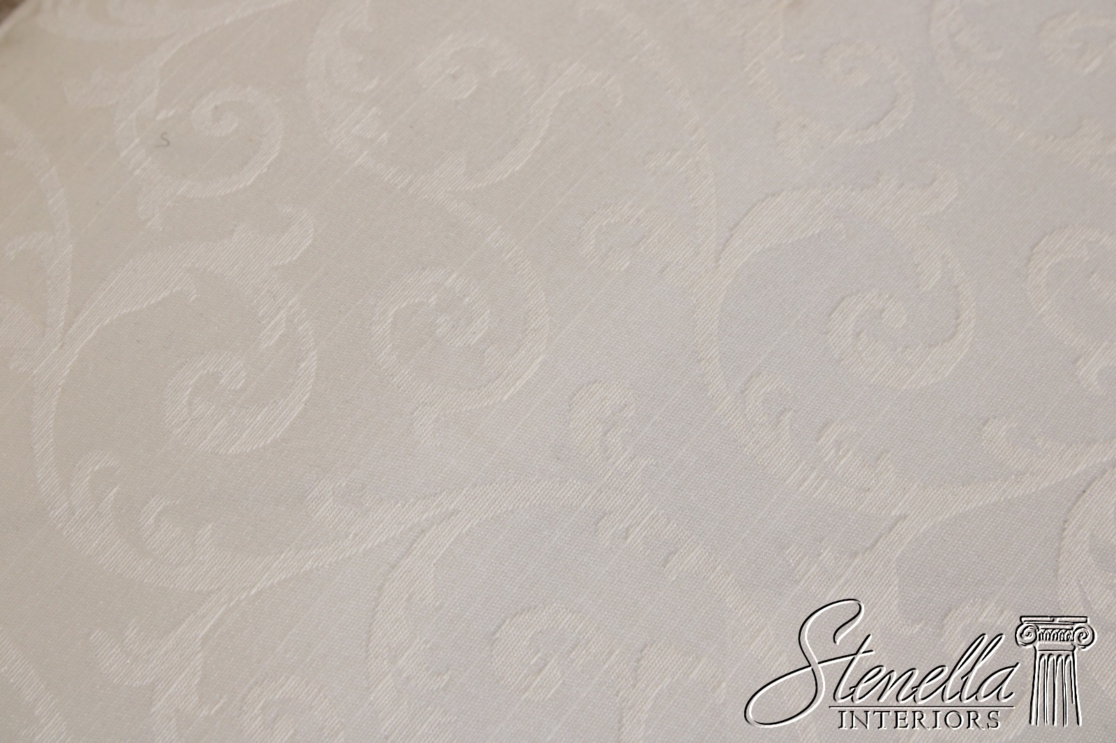 Details: Clean Bright White Damask Cushions Down Seat Cushions Fine Carved Details High Quality Construction Queen Anne Legs & Pad Feet French Style Un-Marked As To Manufacture See Other Offerings For Matching Loveseat Offered @ Fraction Original Retail Cost