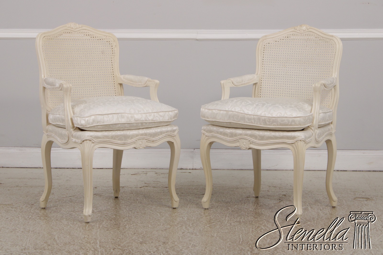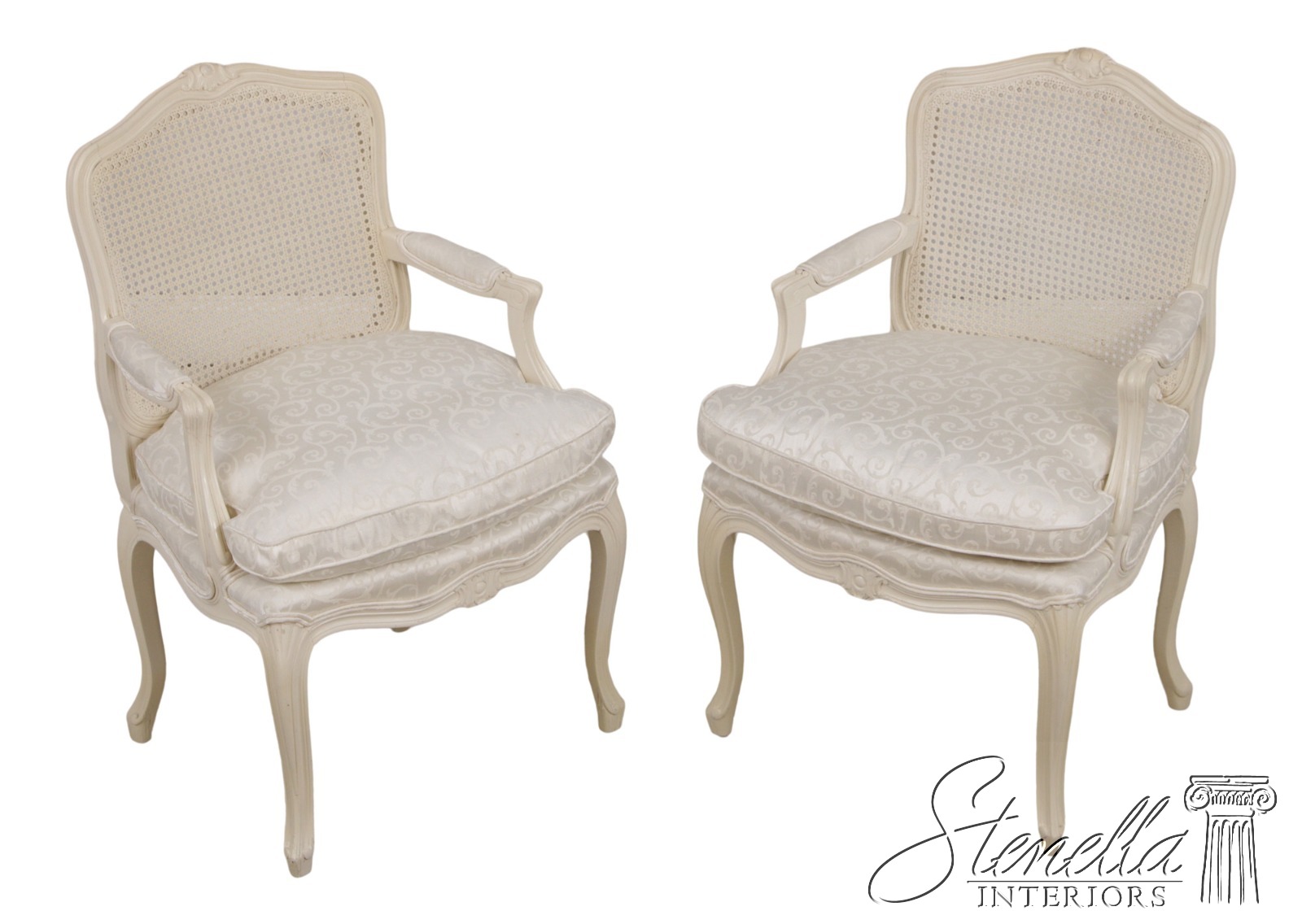 L72662: Pair Of Louis XVI Painted Cane Back Fautuils Armchairs