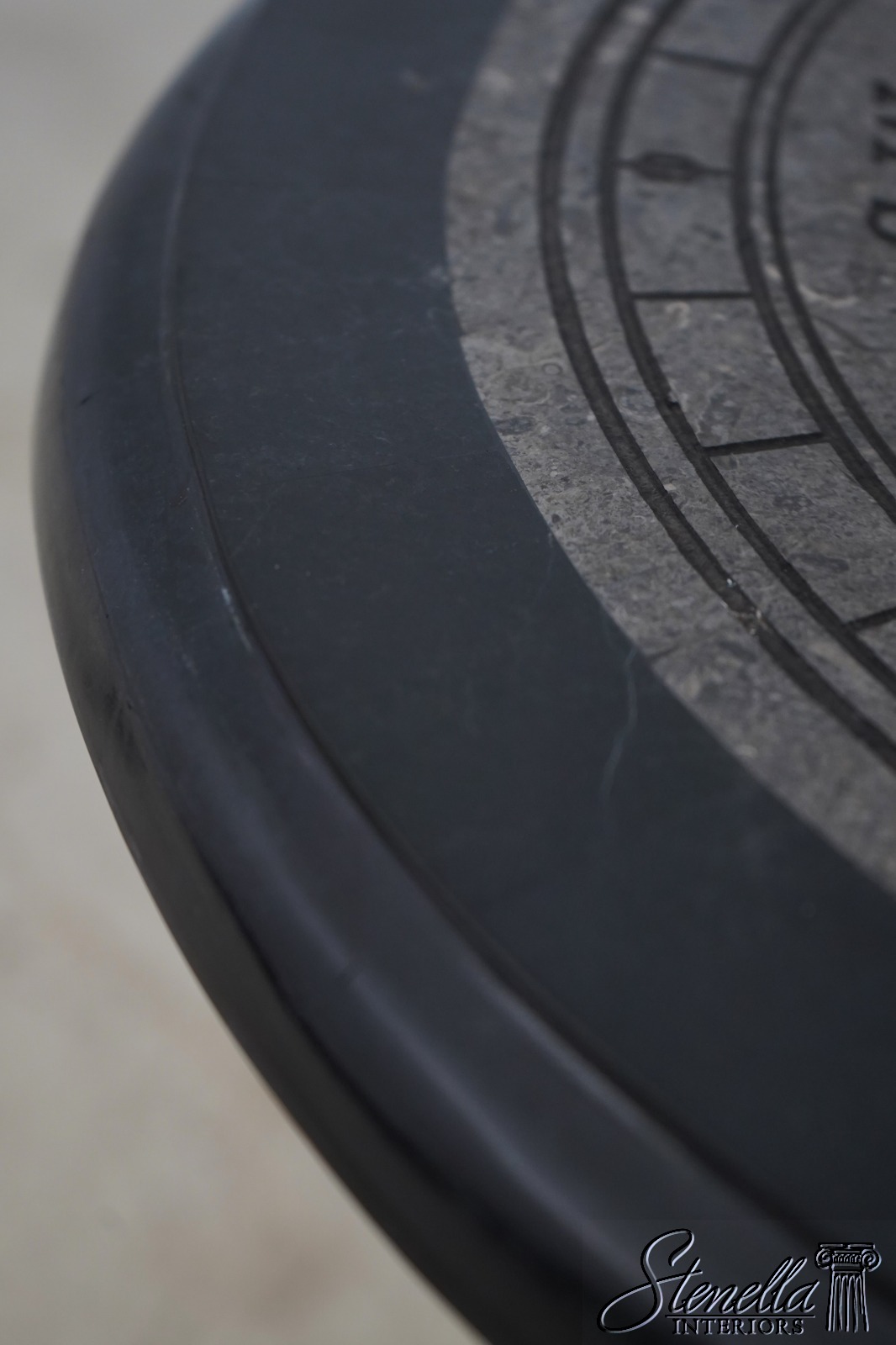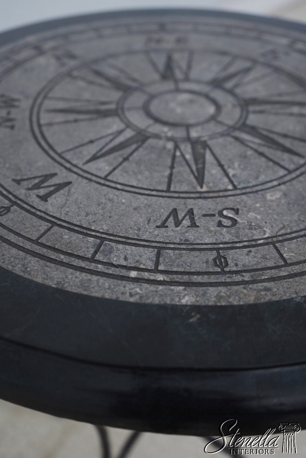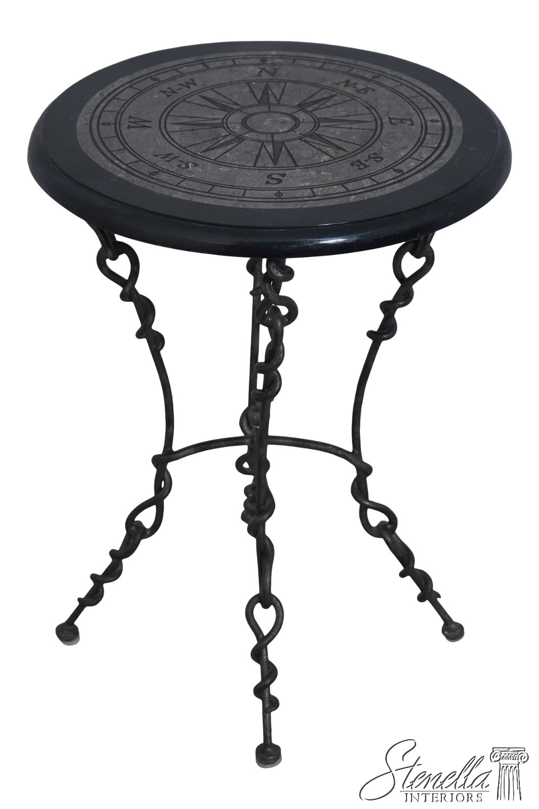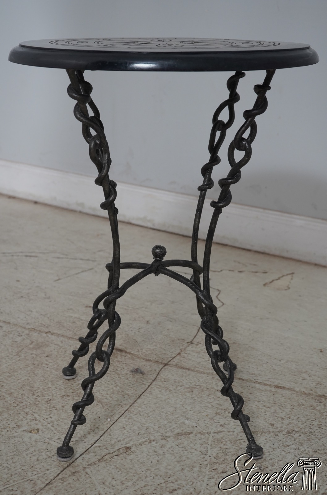 65934EC: Round Marble Overlay Top Iron Base Lamp Table