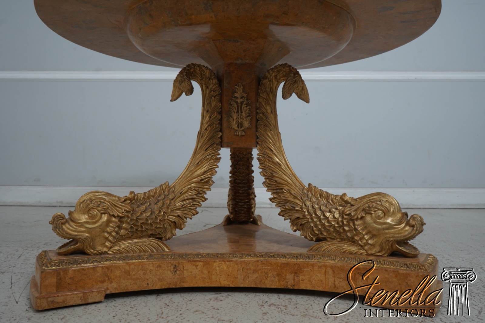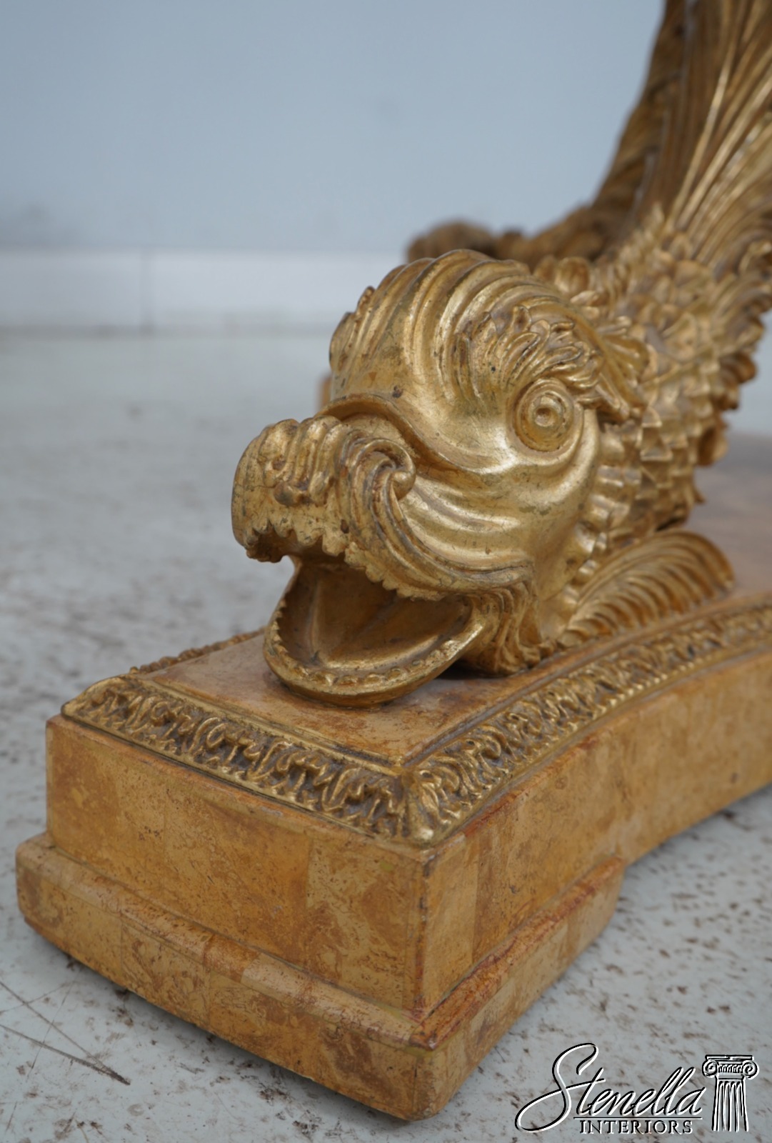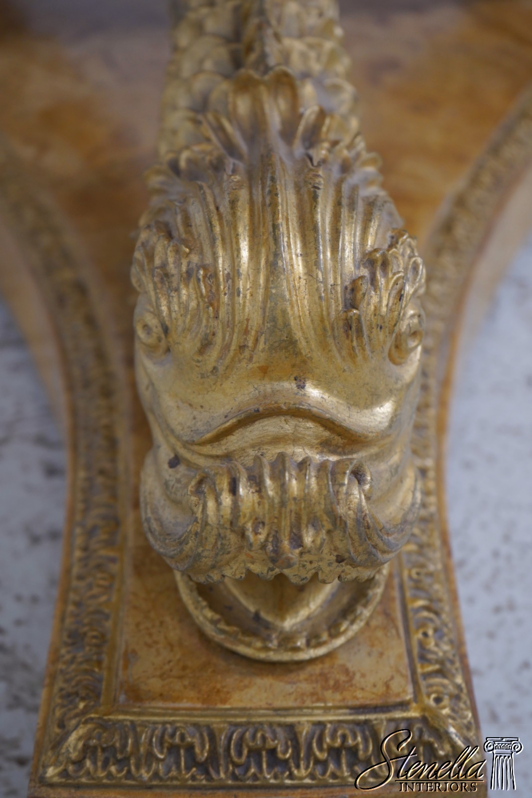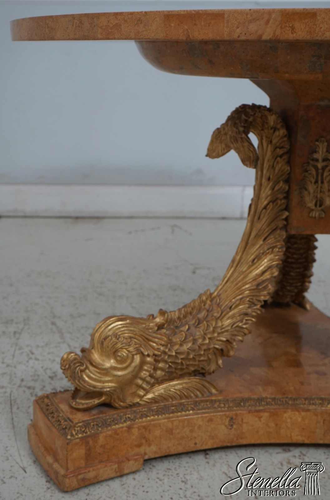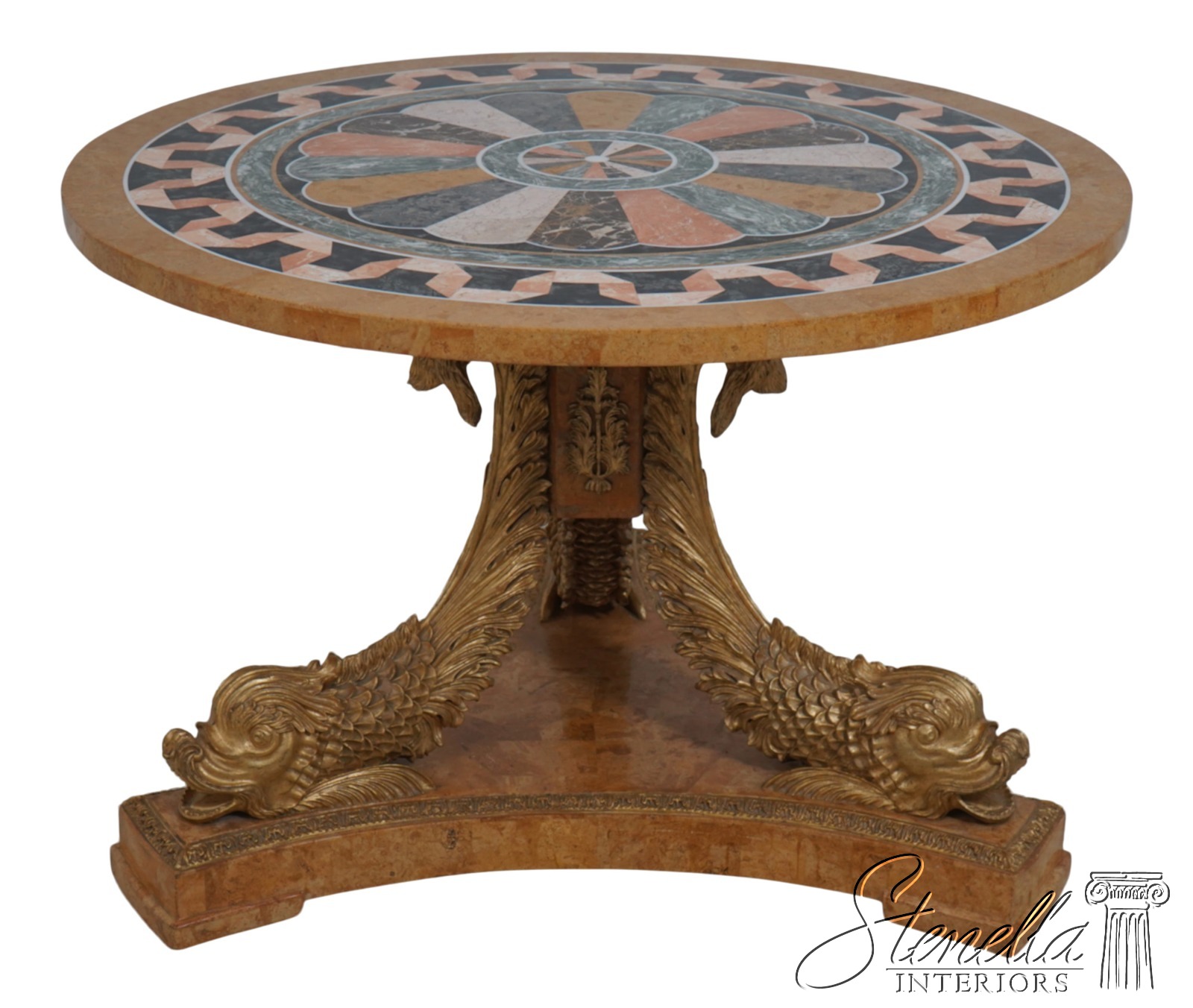 Details: Italian Design Fine Carved Details High Quality Construction Stunning Pietra Dura Inlaid Marble Top Carved Dolphin Legs On Tessalated Marble Platform Base