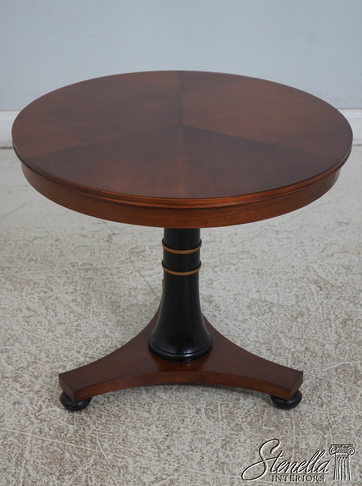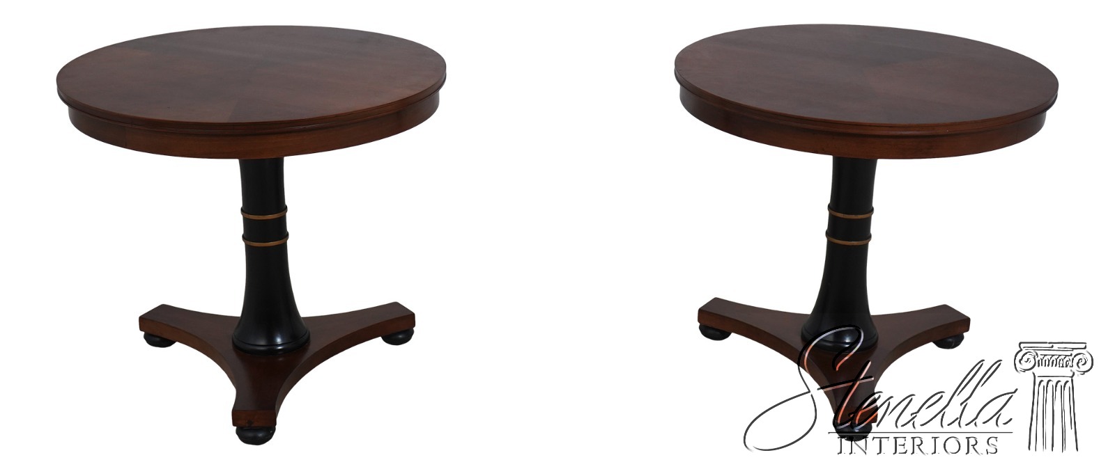 67549: Pair DREXEL Round Cherry Pedestal Accent Lamp Tables