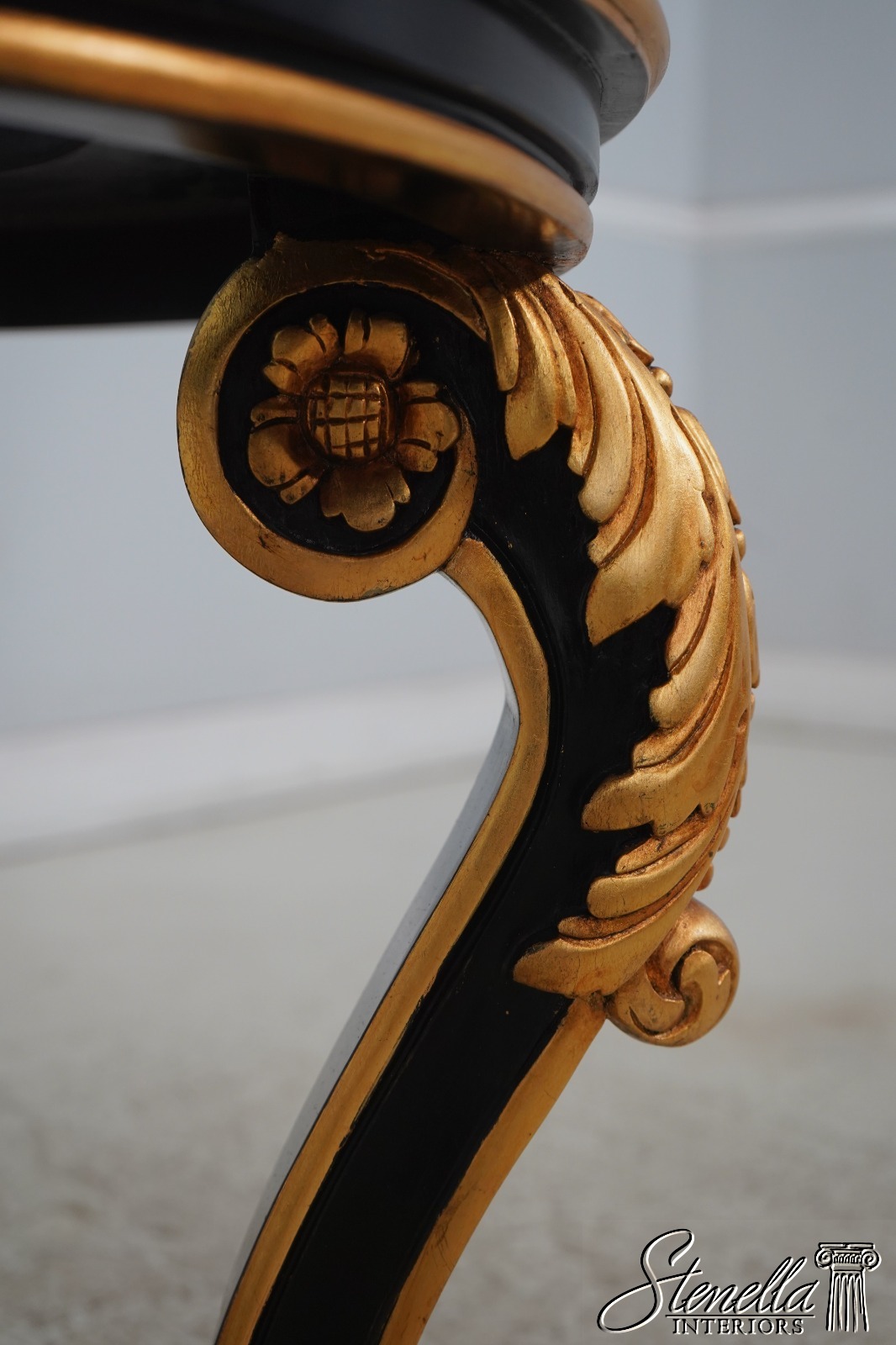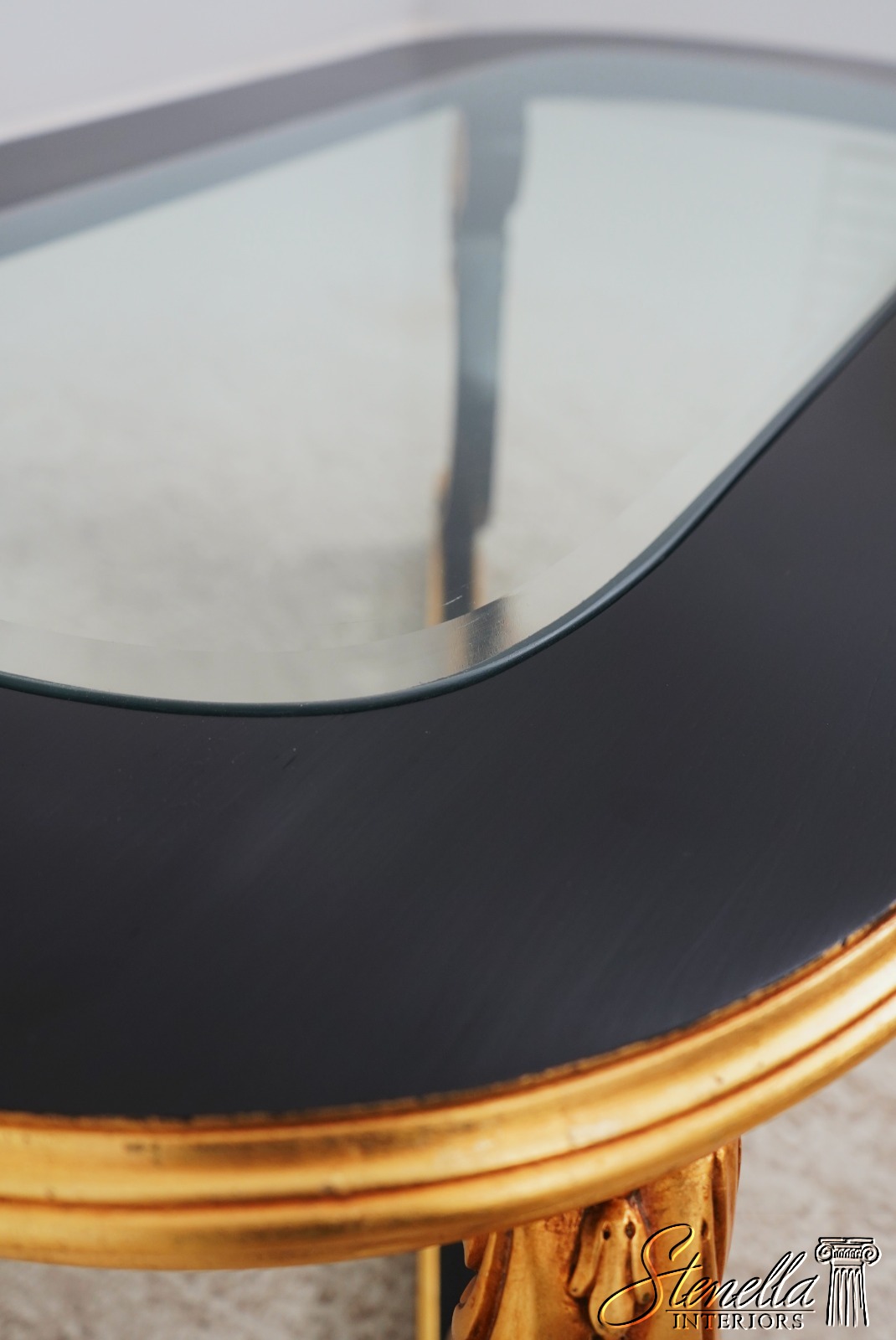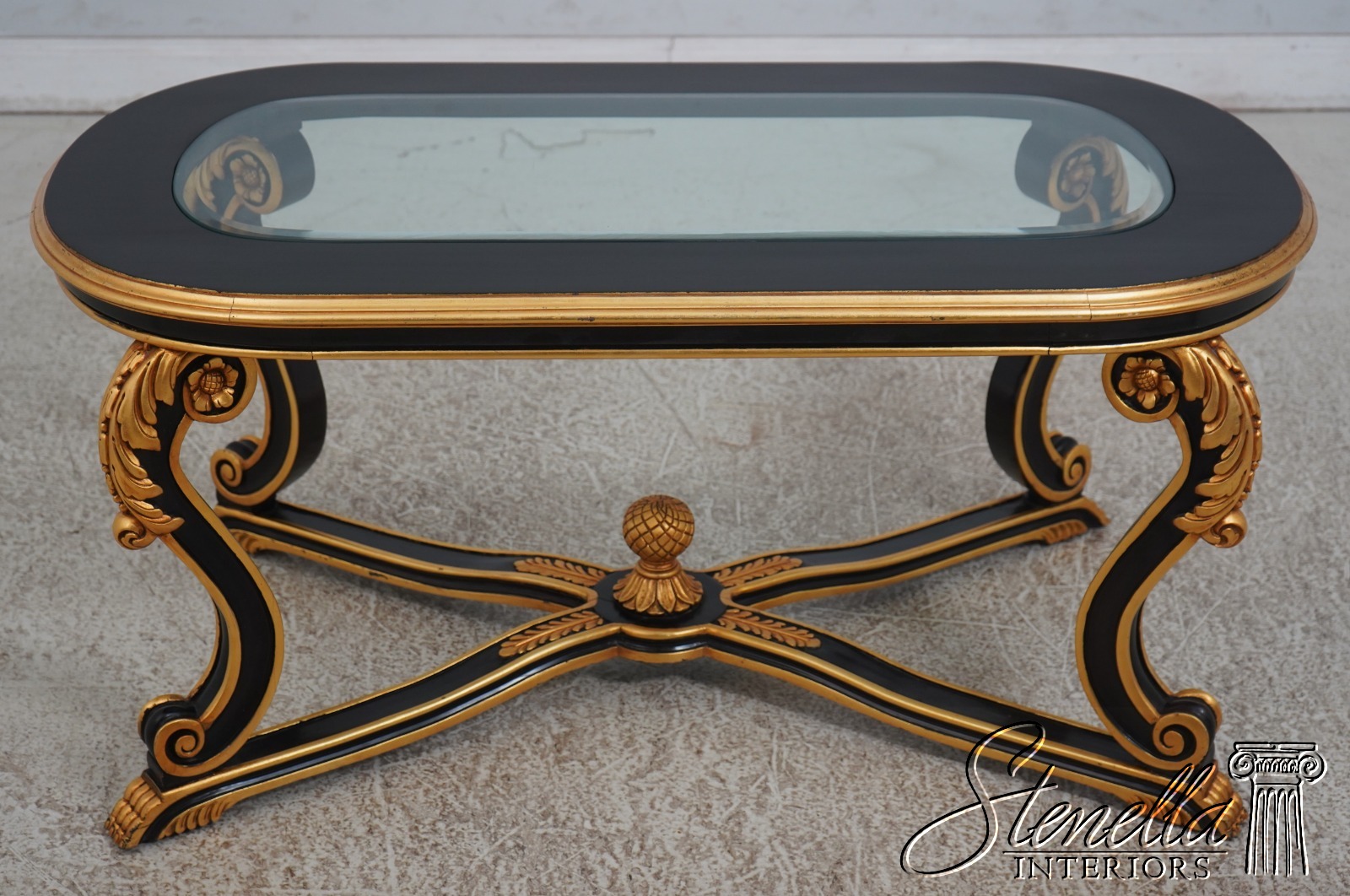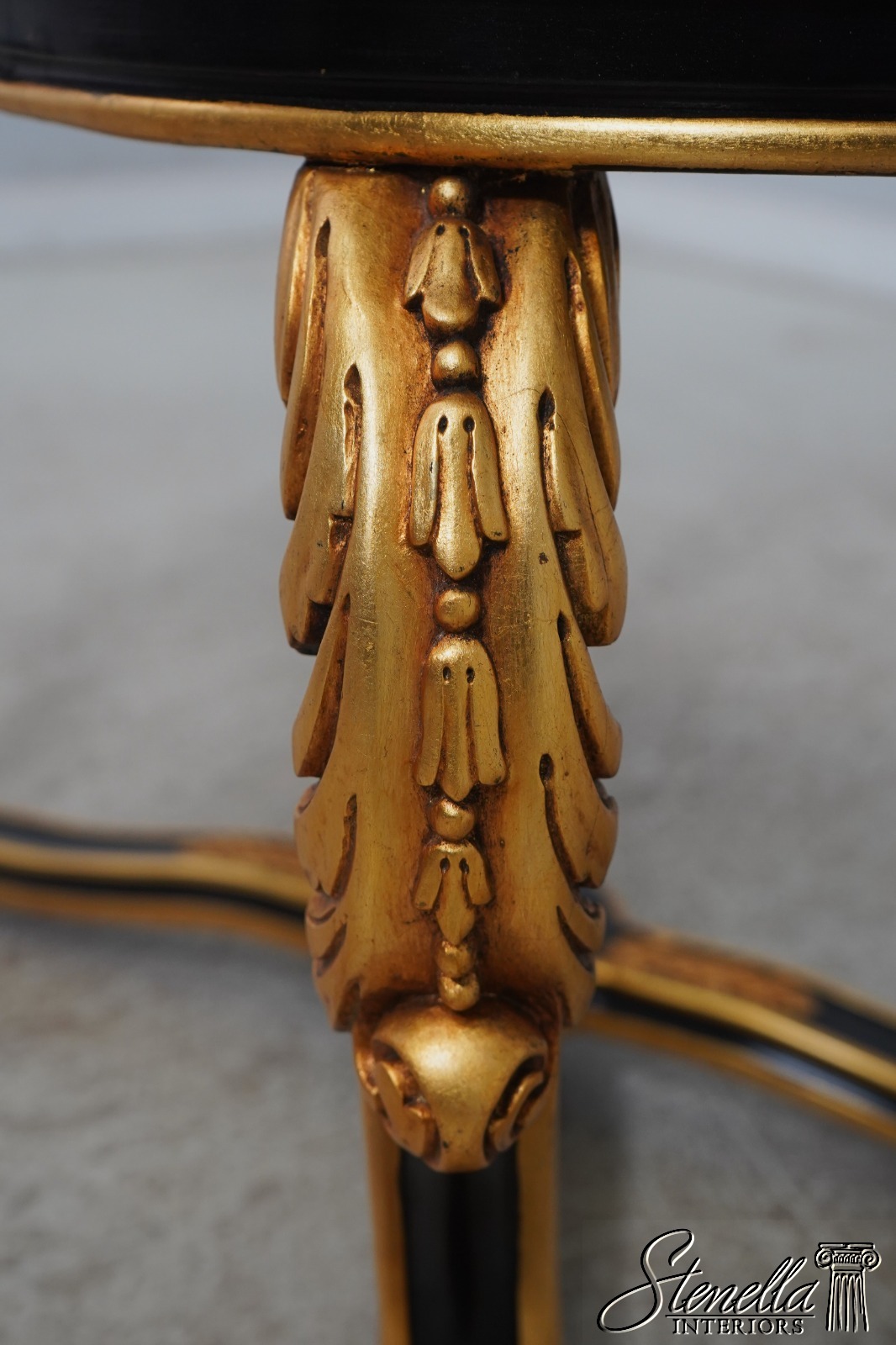 Details: Ball & Claw Feet Fine Carved Details High Quality Construction Ebony Finish Glass Insert Tops Baroque Style Neoclassical Stretcher Base Frame Carved Artichoke In Center Scrolled Legs Un-Marked As To Manufacture Offered @ Fraction Original Retail Cost