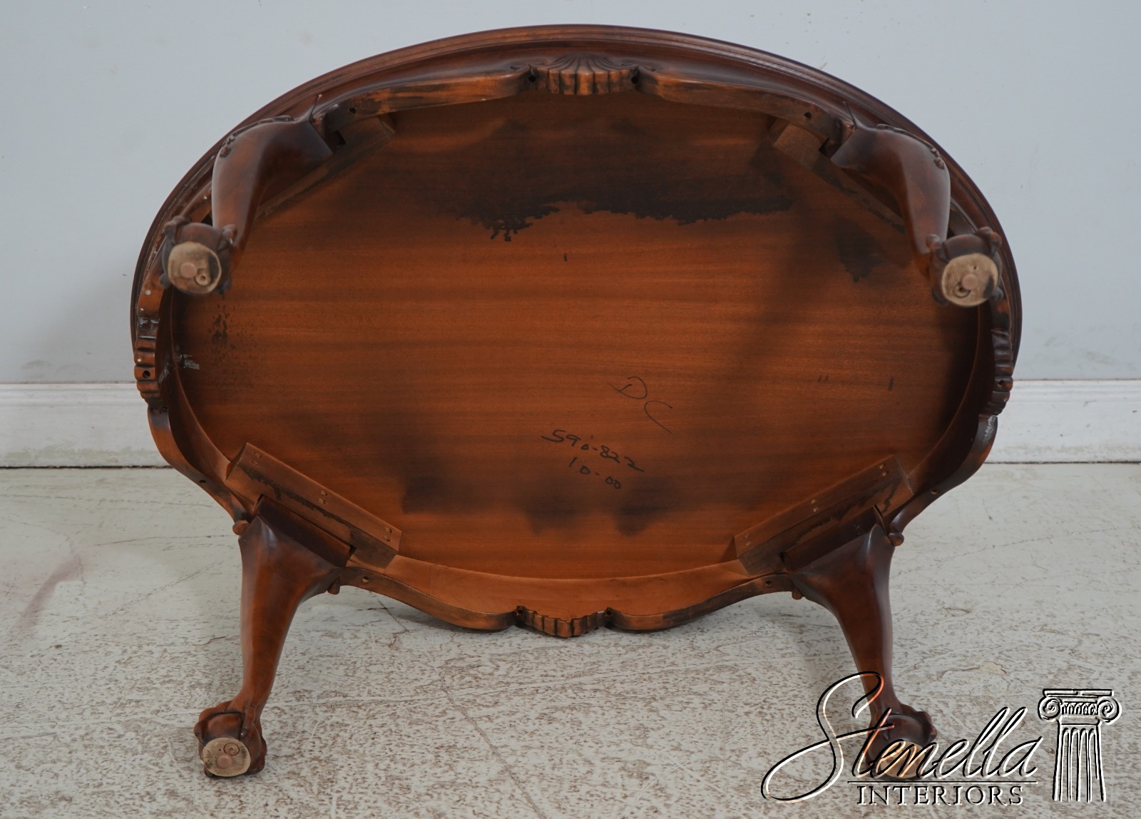 67721: Mahogany Shell Carved Ball & Claw Coffee Table