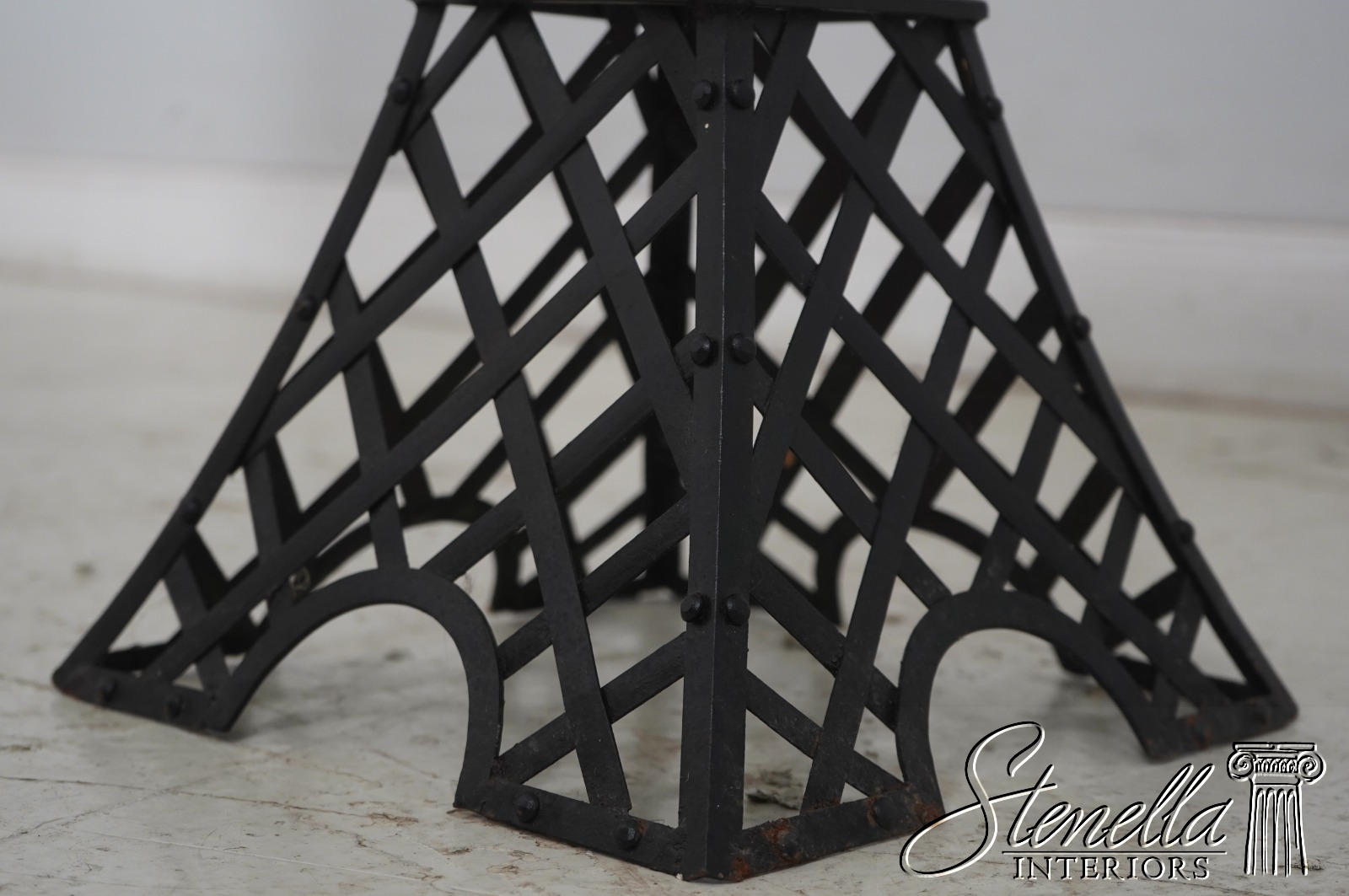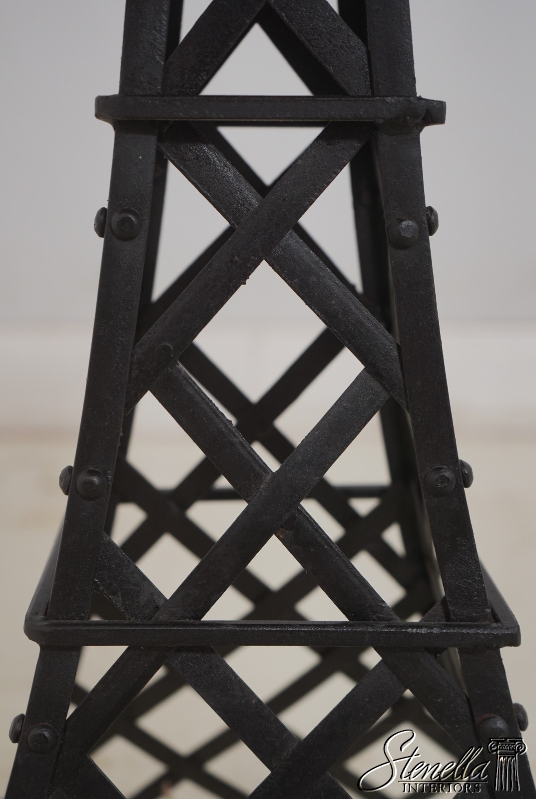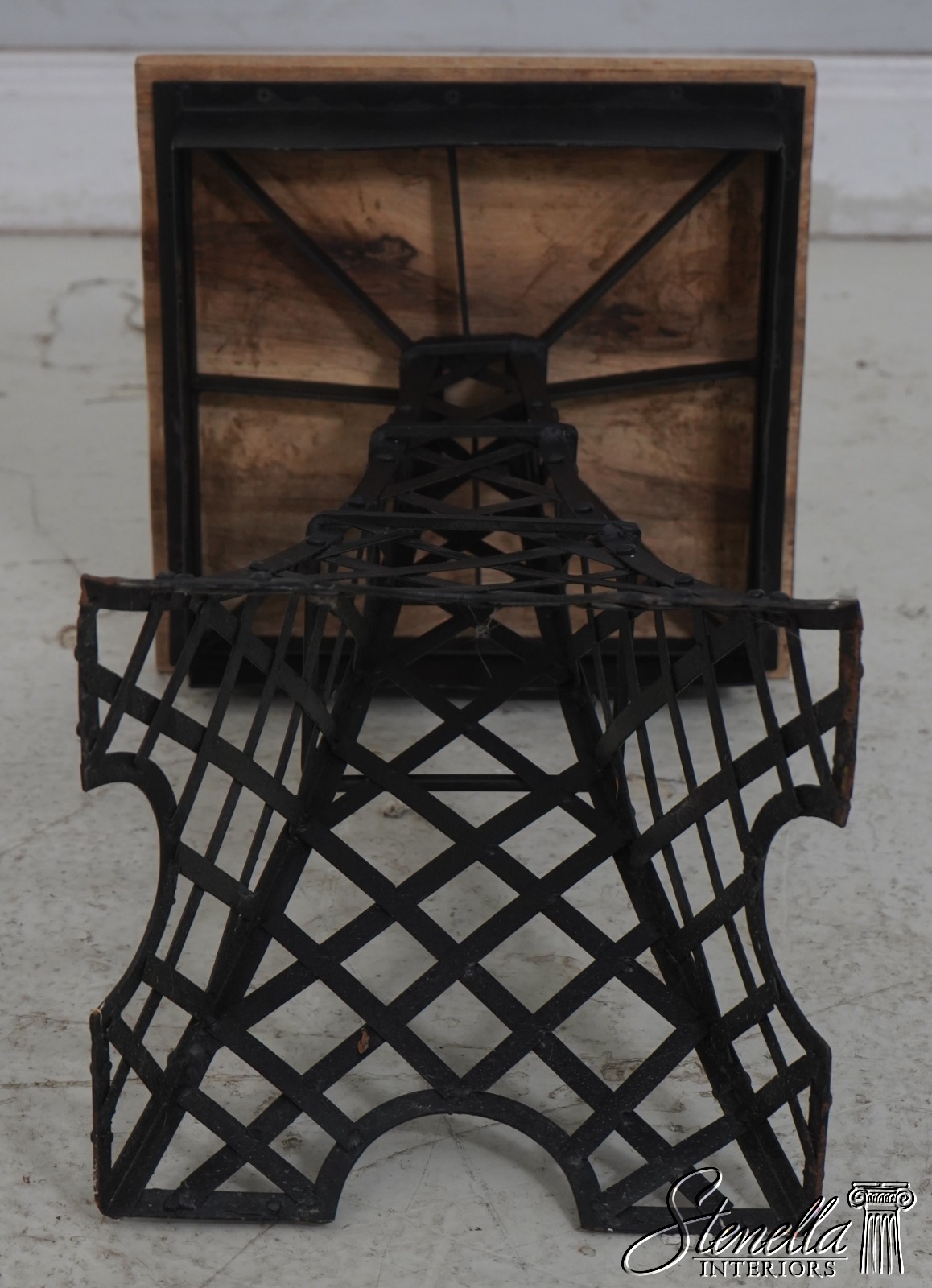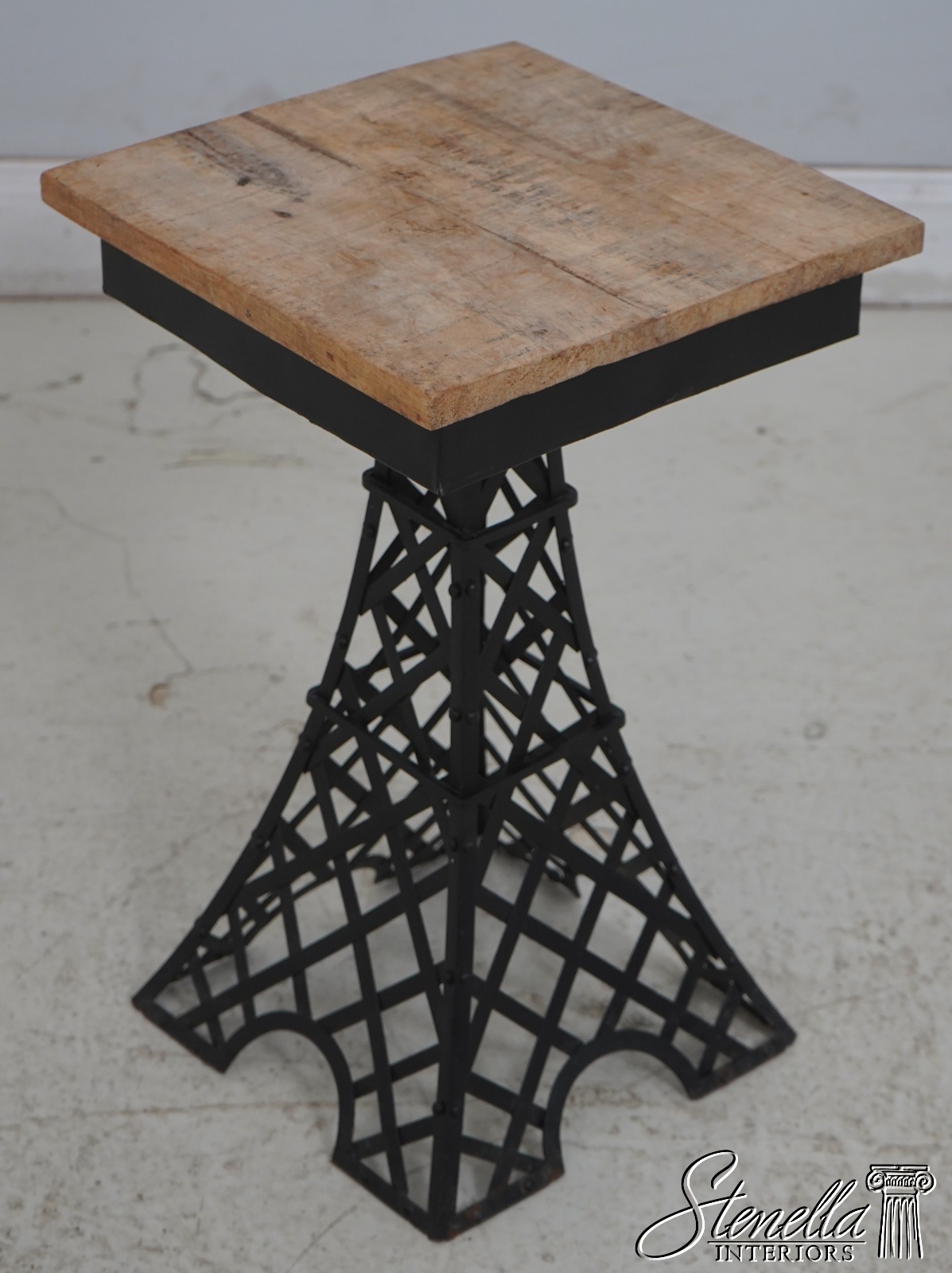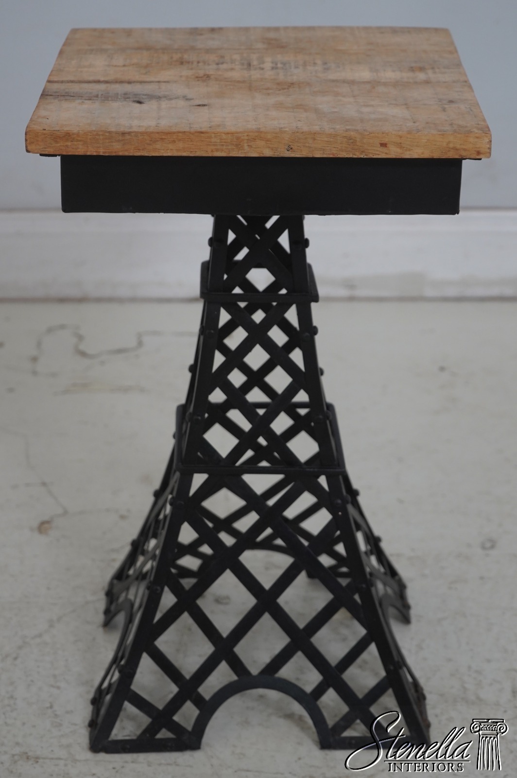 69401: Pair Metal Base Wood Top Eiffel Tower End Tables