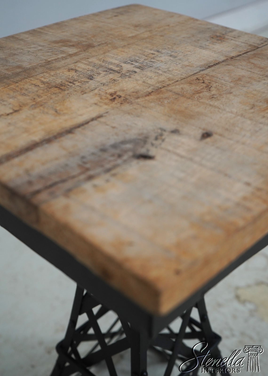 Details: Fine Carved Details High Quality Construction Industrial Crafts Design Rough Unfinished Wood Tops Iron Weave Bases Un-Marked As To Manufacture Offered @ Fraction Original Retail Cost