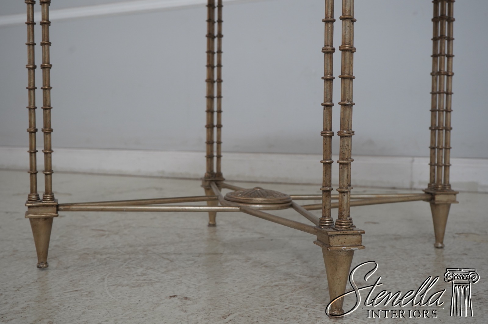 Details: Regency Style High Quality Construction Stunning Bamboo Form Wood Legs & Stretcher Base Design Metal Stretcher Base Nice Decorator Center Table Un-Marked As To Manufacture Offered @ Fraction Original Retail Cost