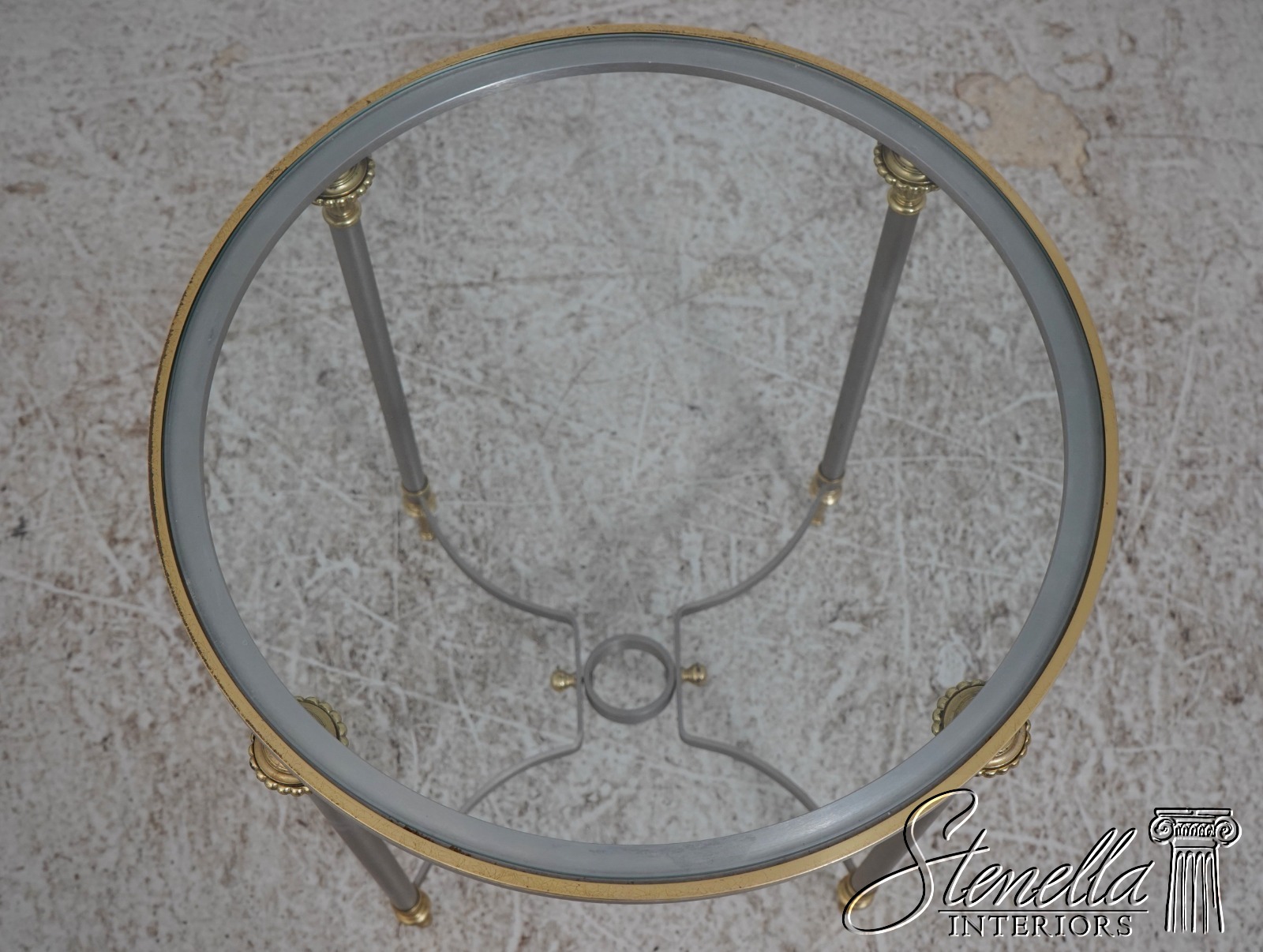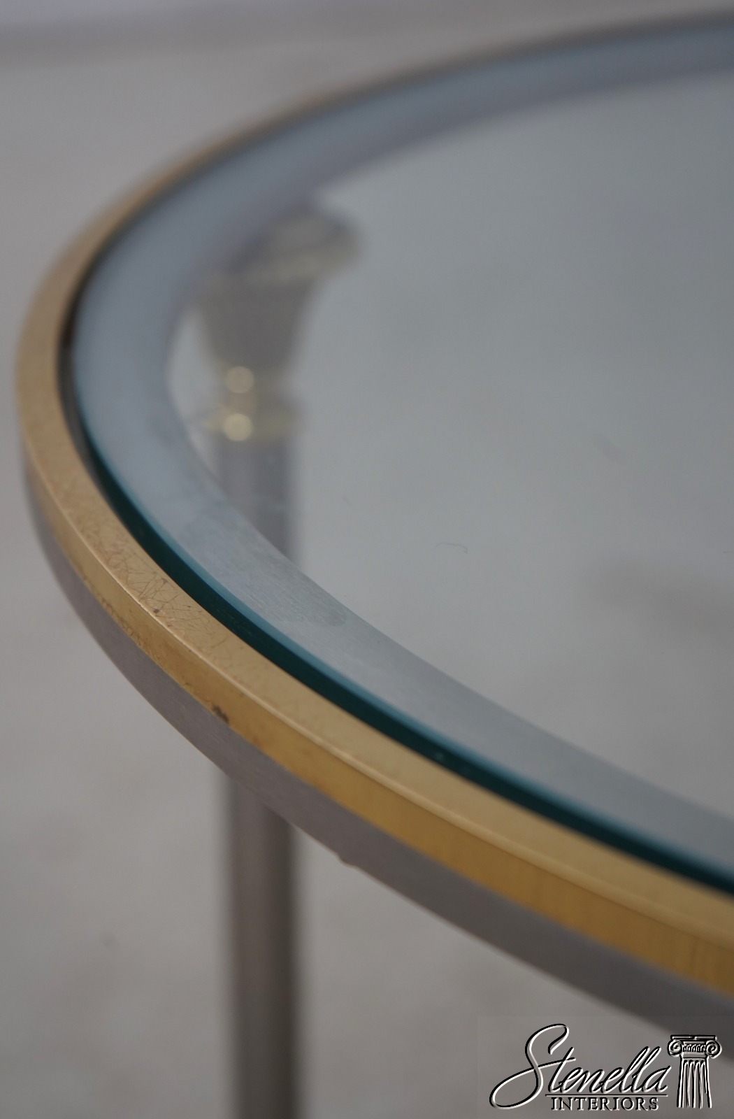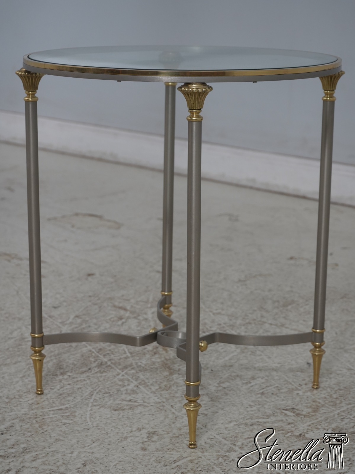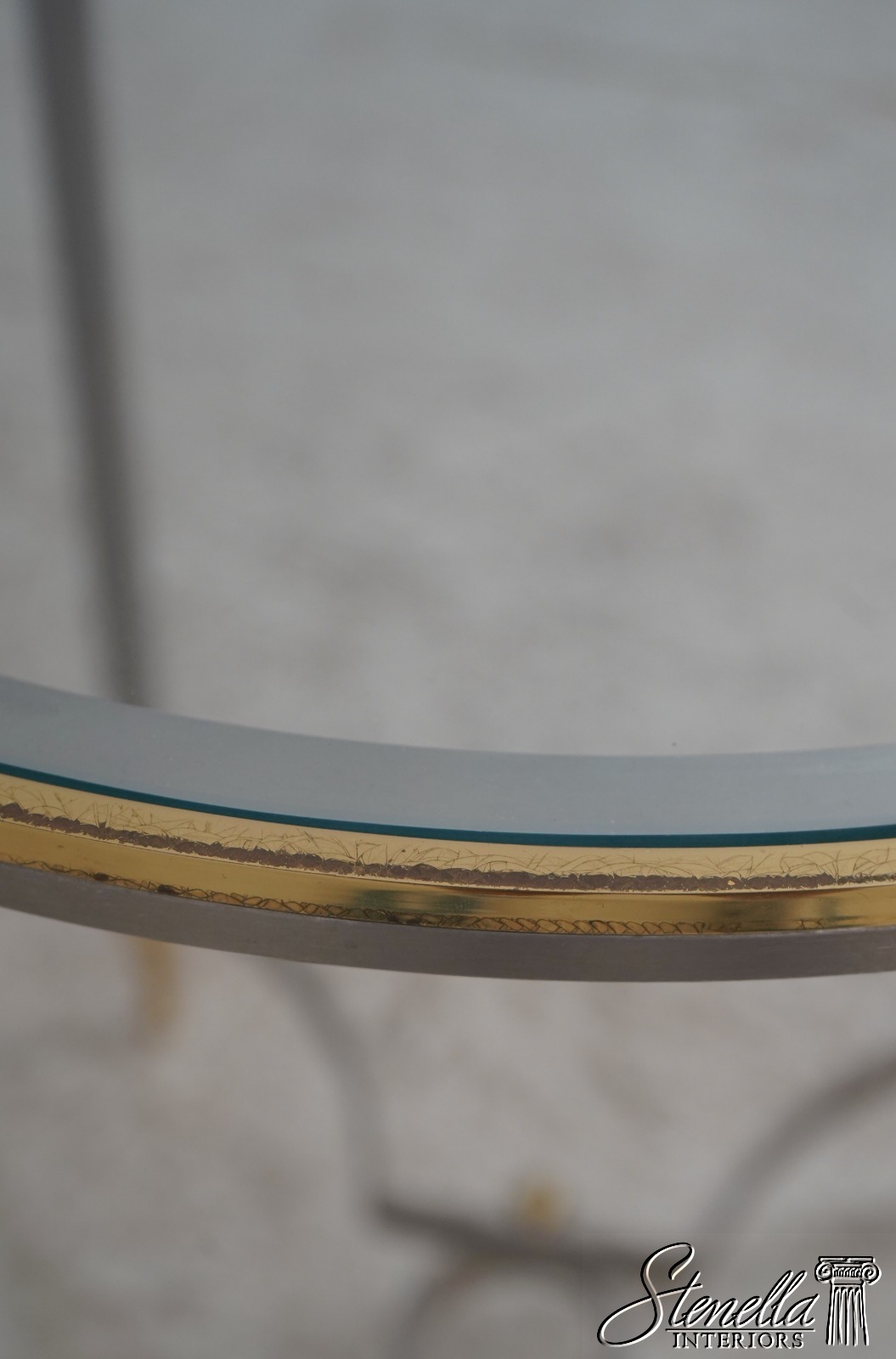 70160: Hollywood Regency Steel & Brass Glass Top Side Table