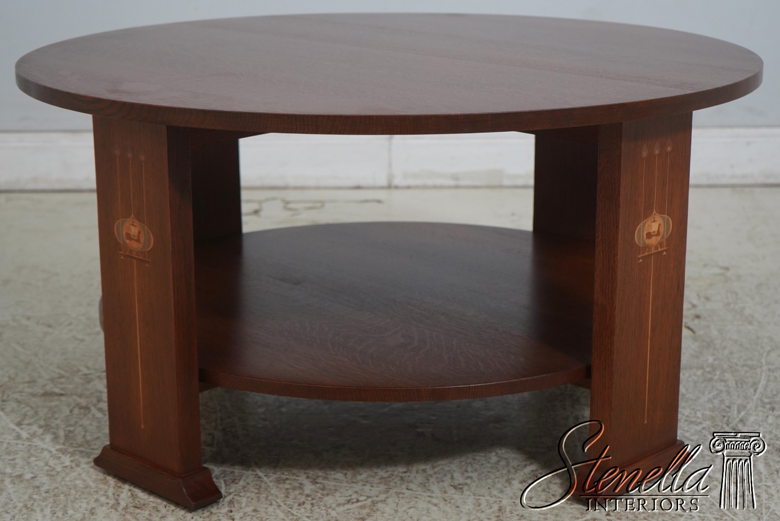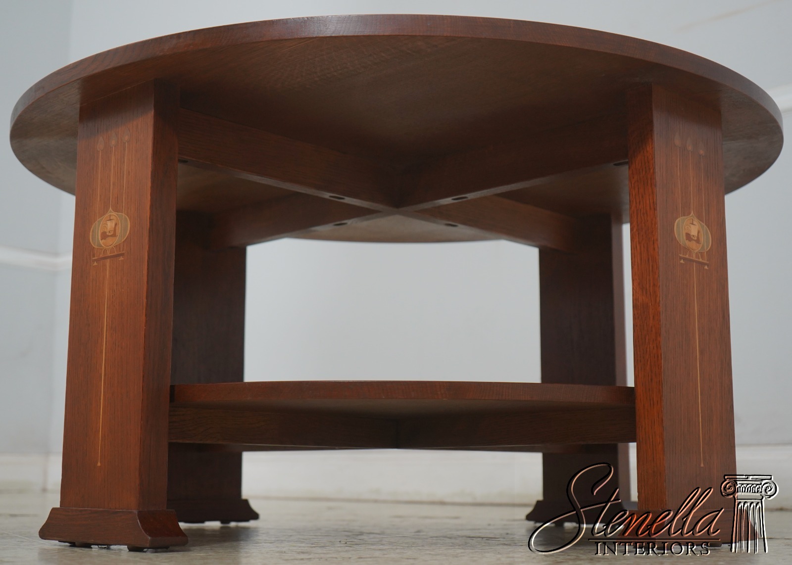 70394: STICKLEY Mission Oak Round Harvey Ellis Cocktail Coffee Table