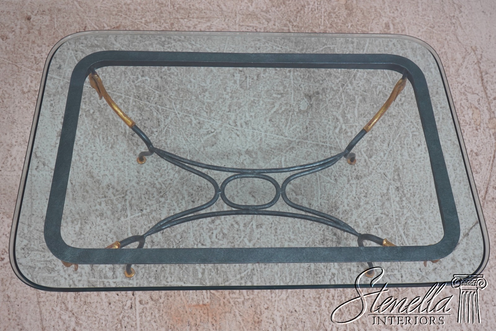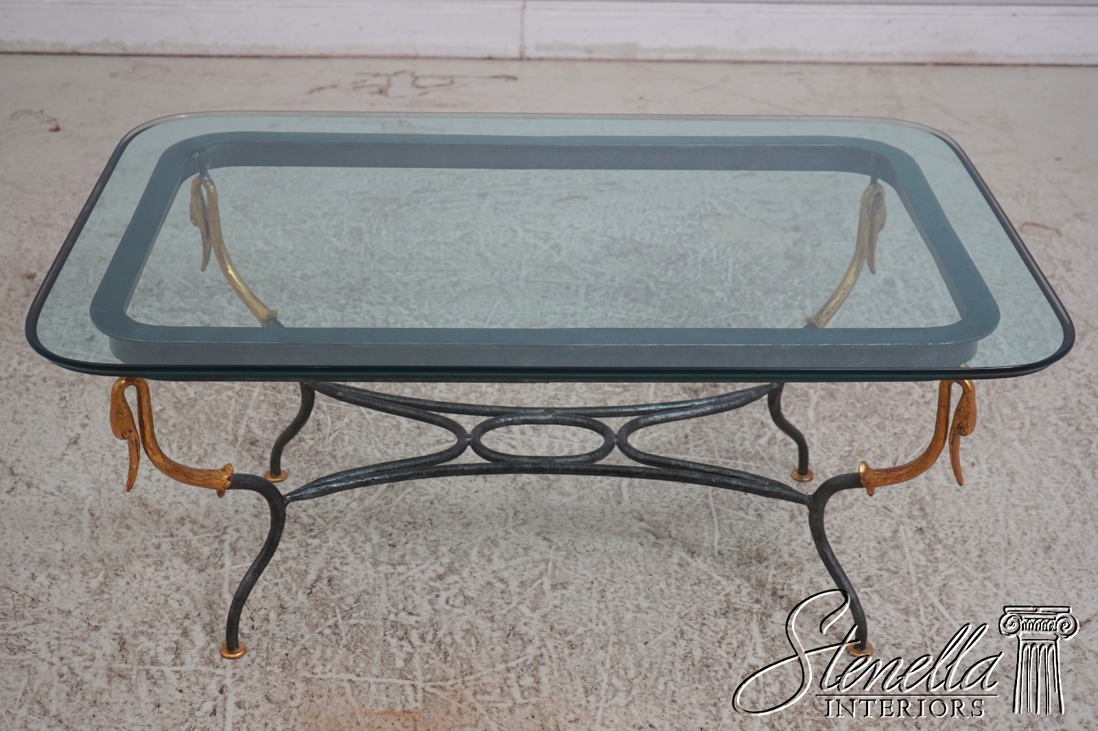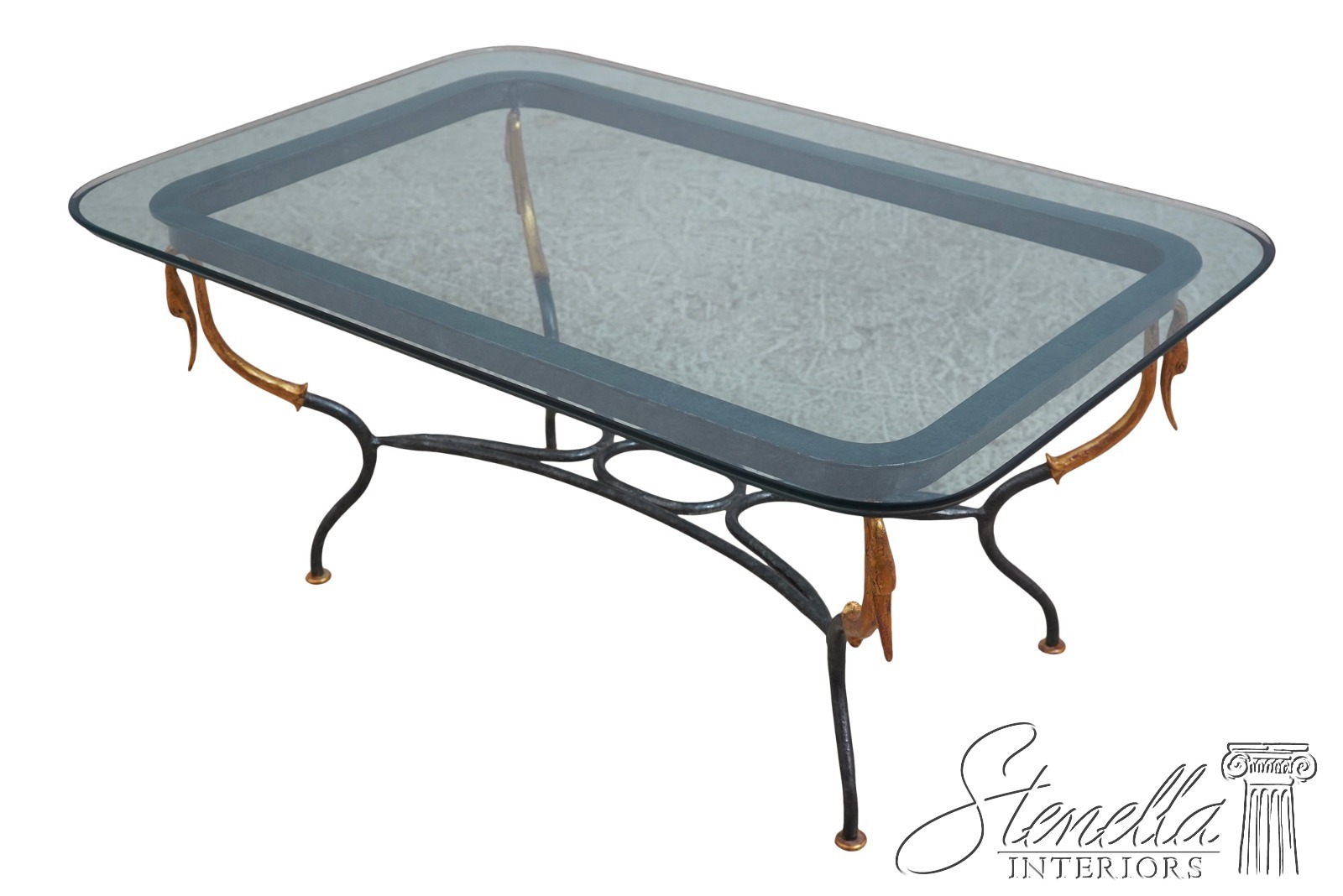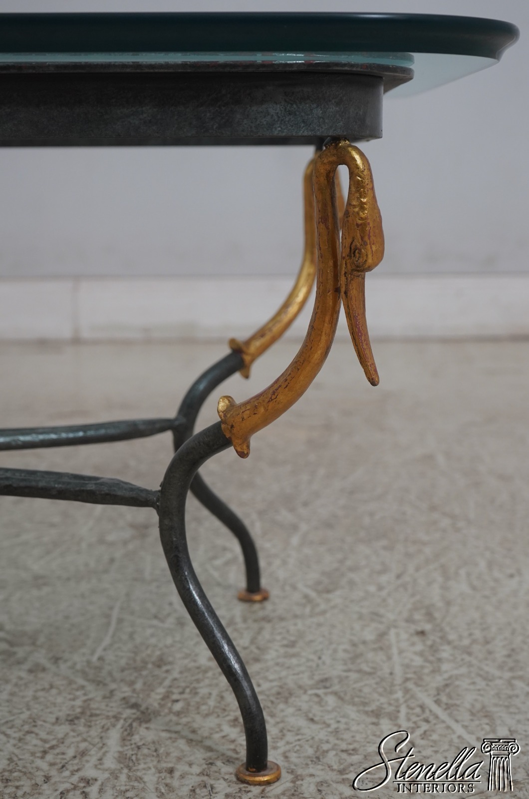 70813: Regency Iron Swan Base Glass Top Coffee Table