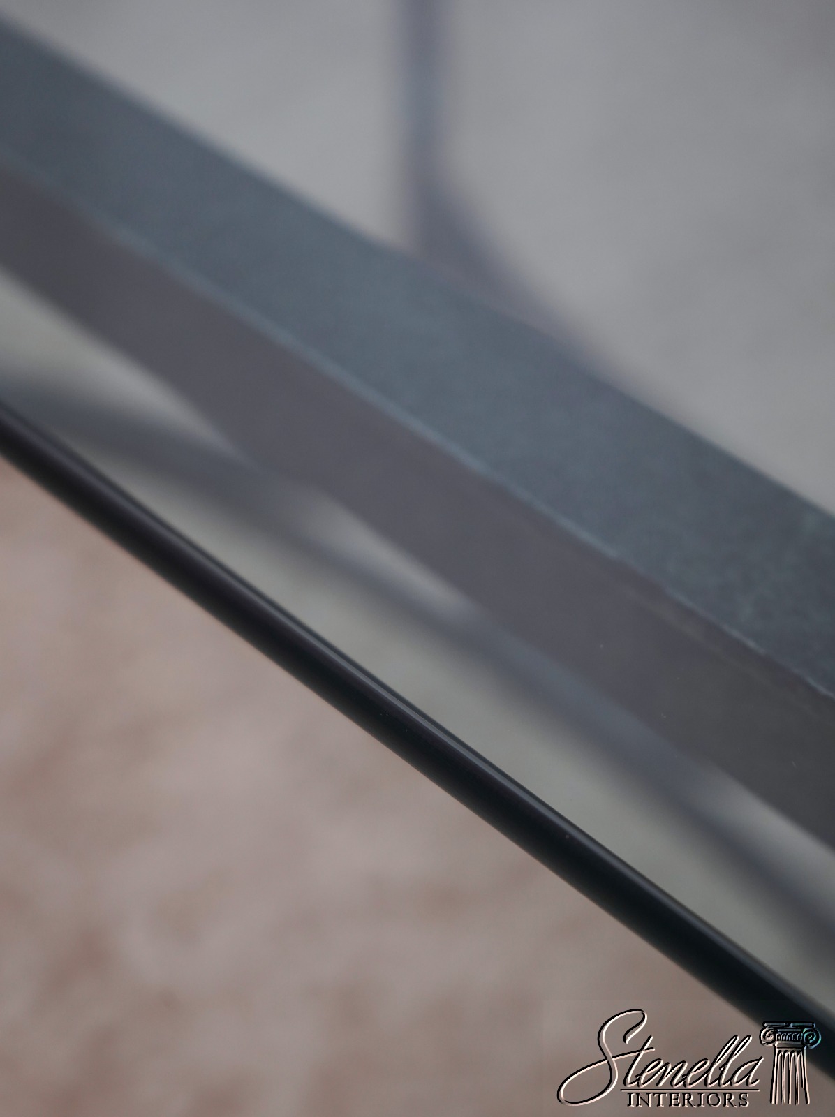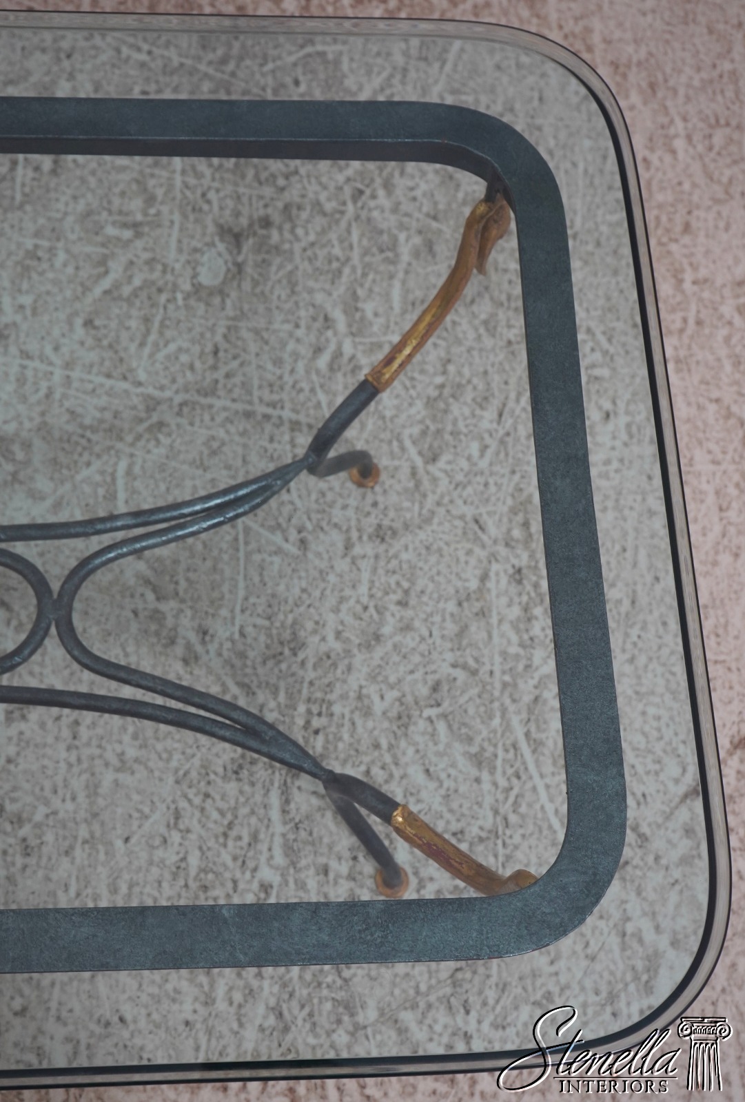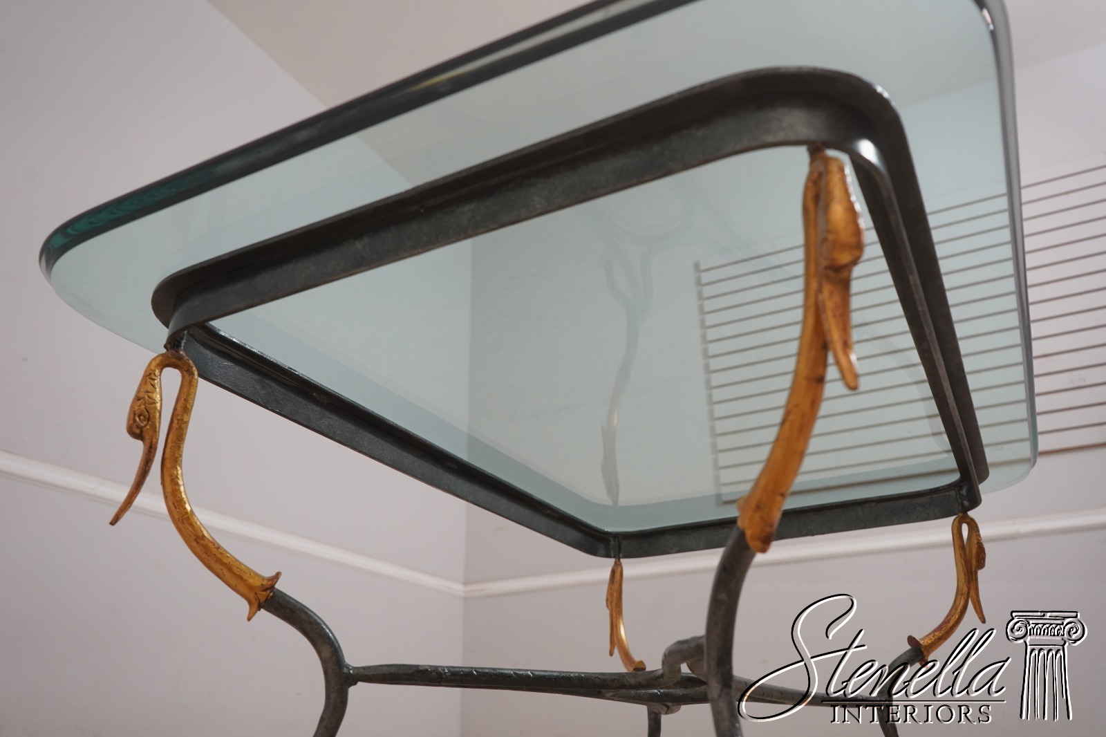 Details: Beveled Glass Top High Quality Construction Stunning Wrought Iron Base w. Swan Neck Ends & Gold Highlights Un-Marked As To Manufacture - Possibly Charleston Forge Or Similar Manufacture