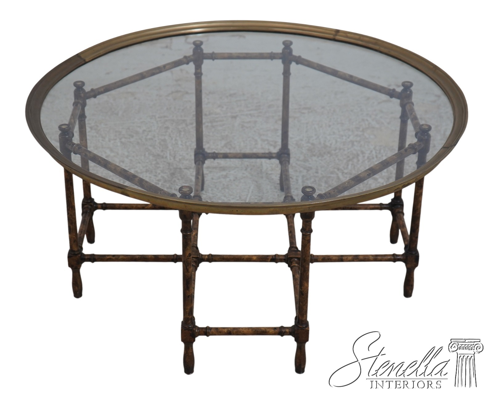 70954: BAKER Hollywood Regency Faux Bamboo Glass Top Coffee Table