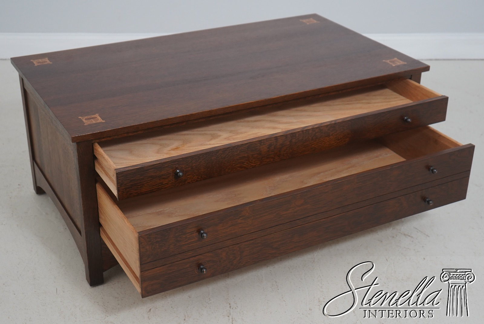 71345: STICKLEY Harvey Ellis Design Mission Oak Two-Drawer Inlay Cocktail Table